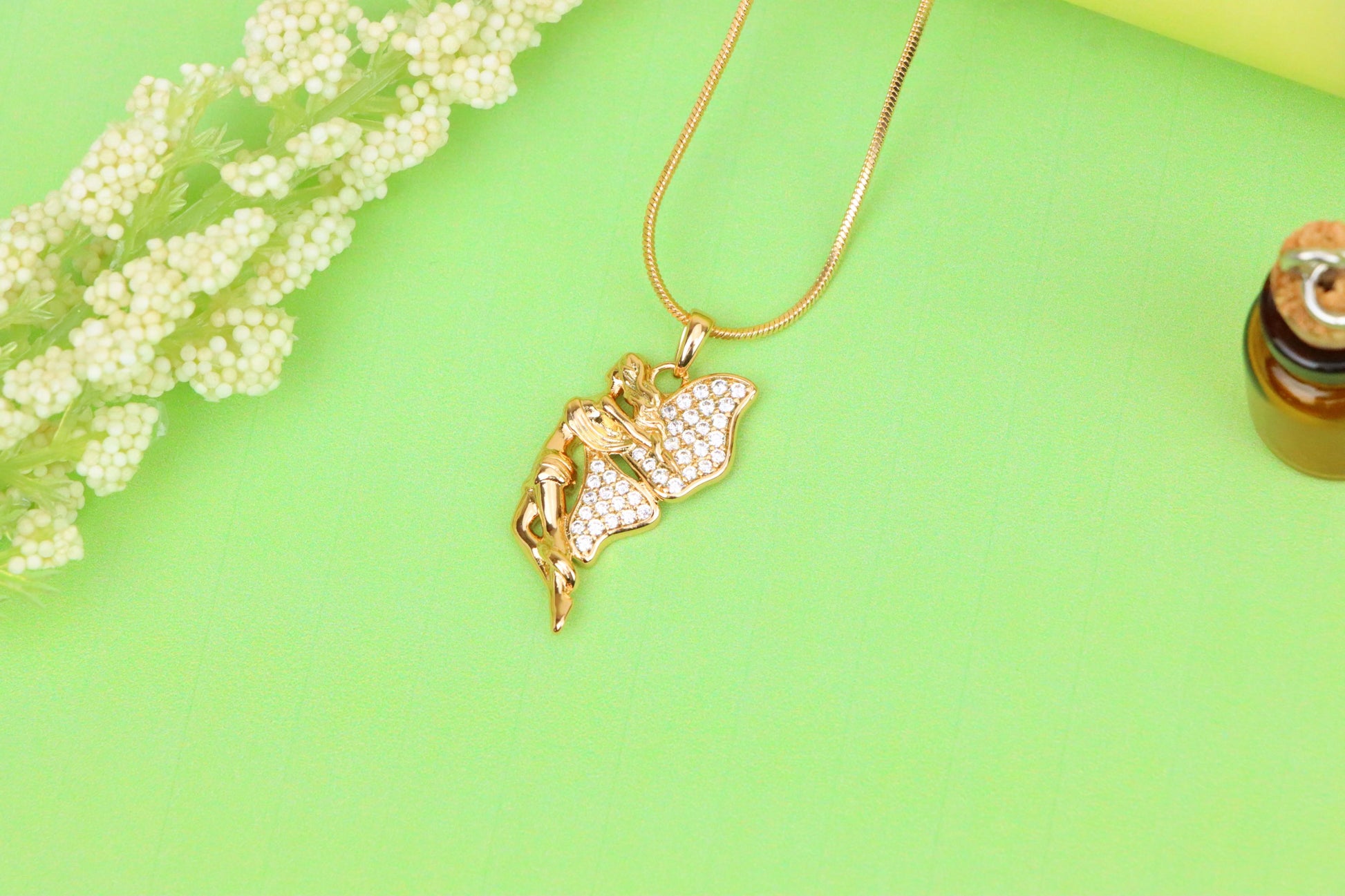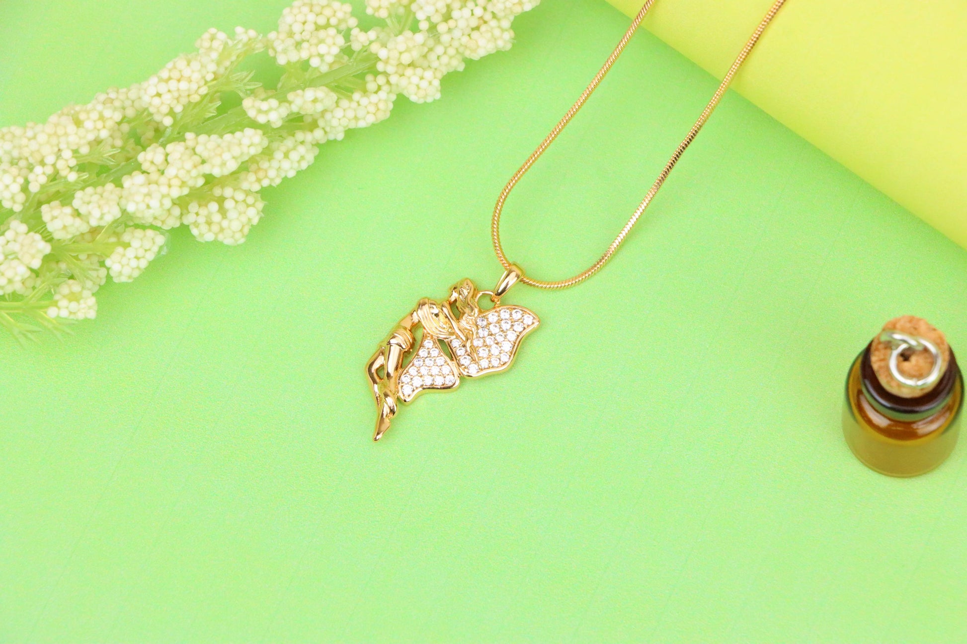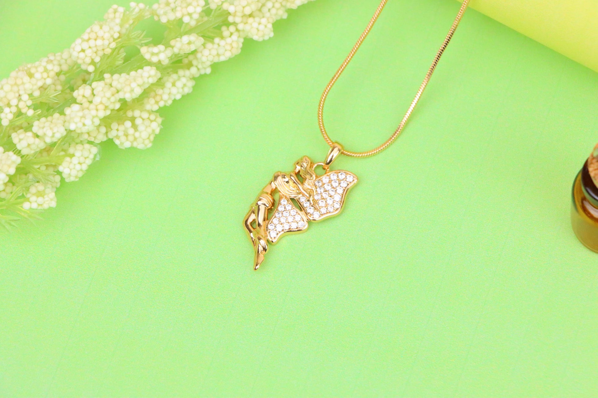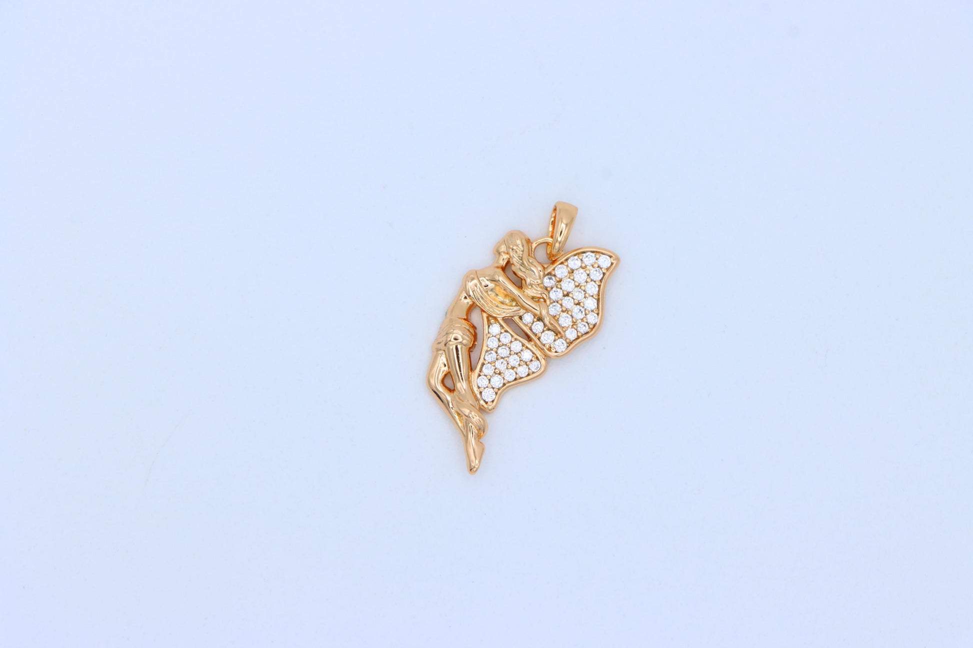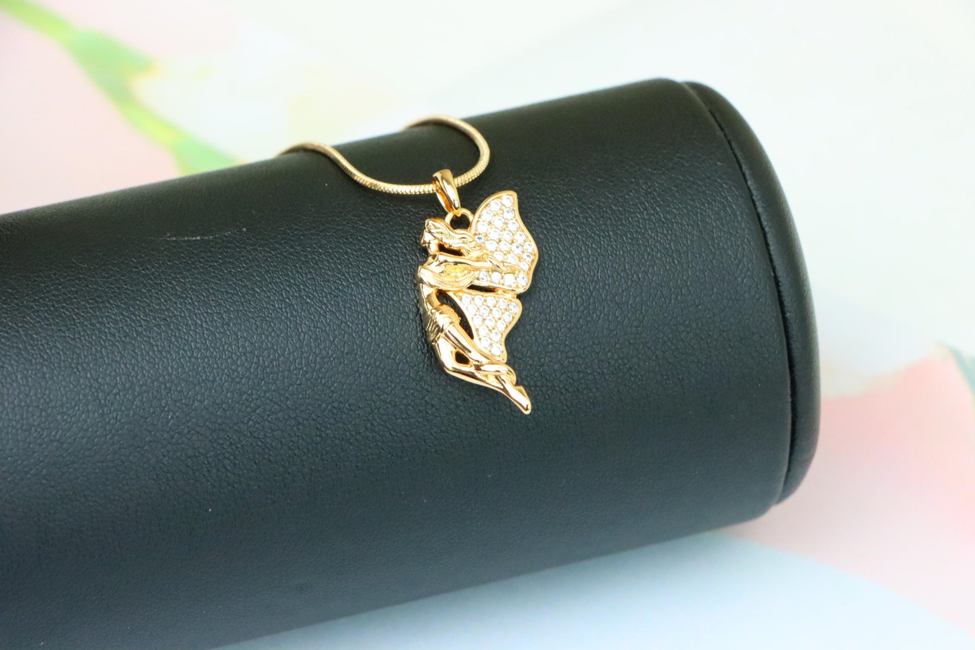 A beautifully crafted pendant featuring an angel figure with sparkling wings, perfect for adding elegance to your look.