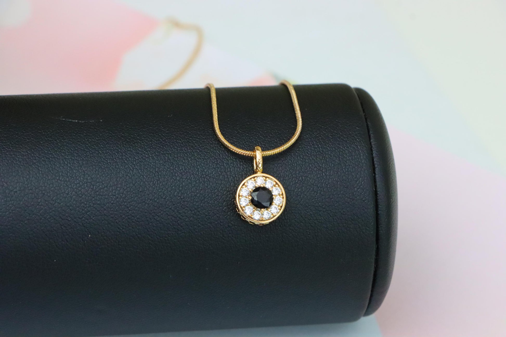 Black Center Round Pendant in Rose Gold with Crystal Halo, XPPT1595 (2146-9)
