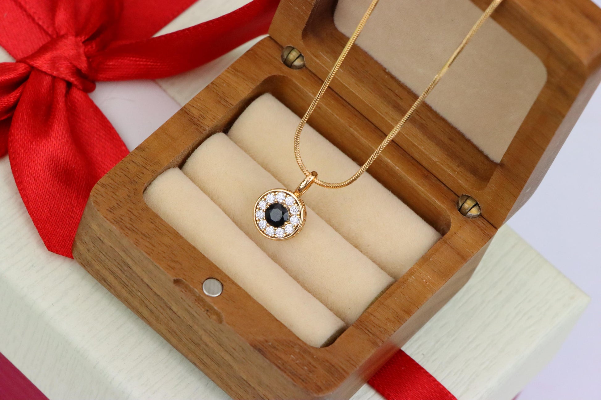 Black Center Round Pendant in Rose Gold with Crystal Halo, XPPT1595