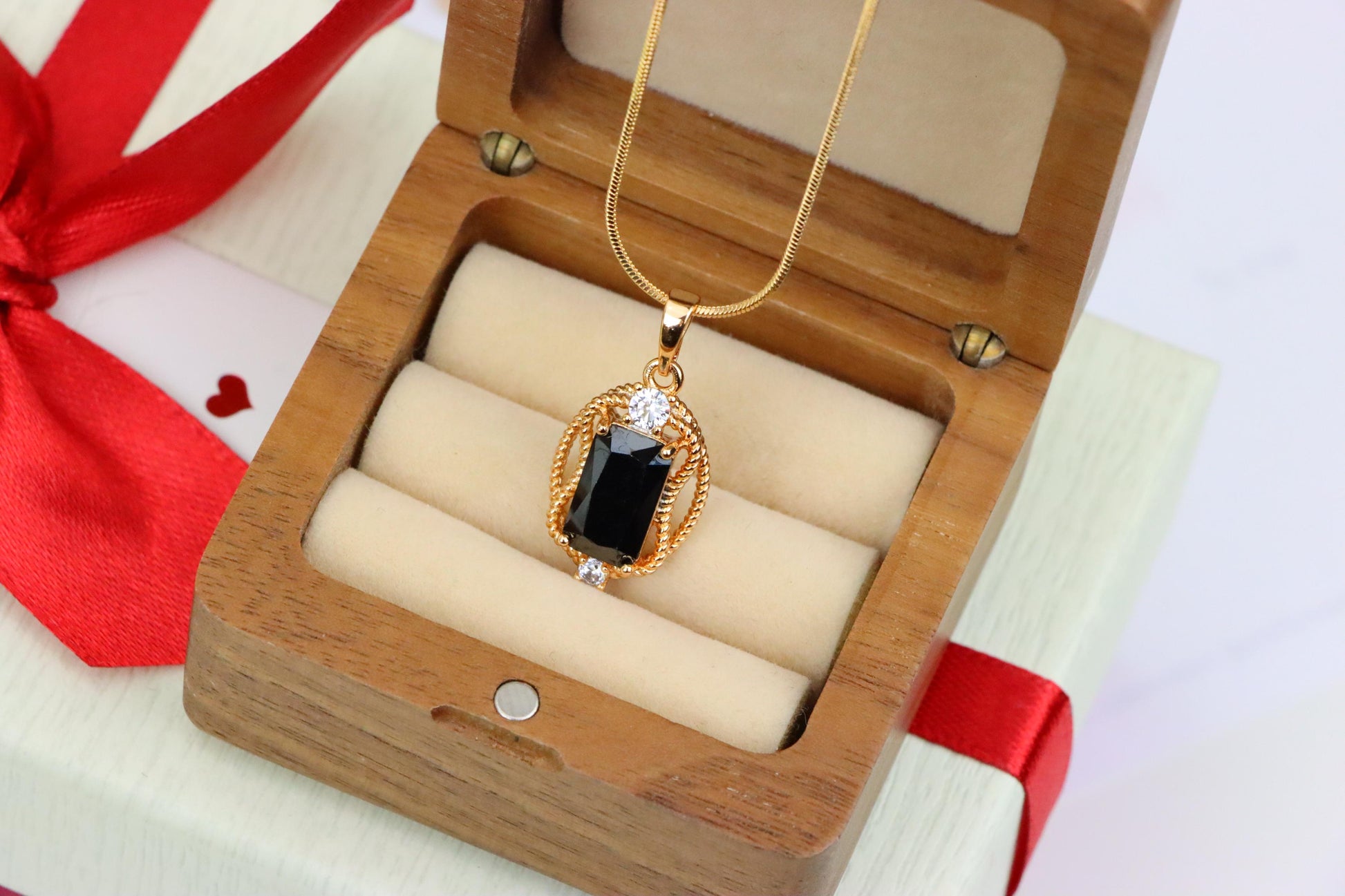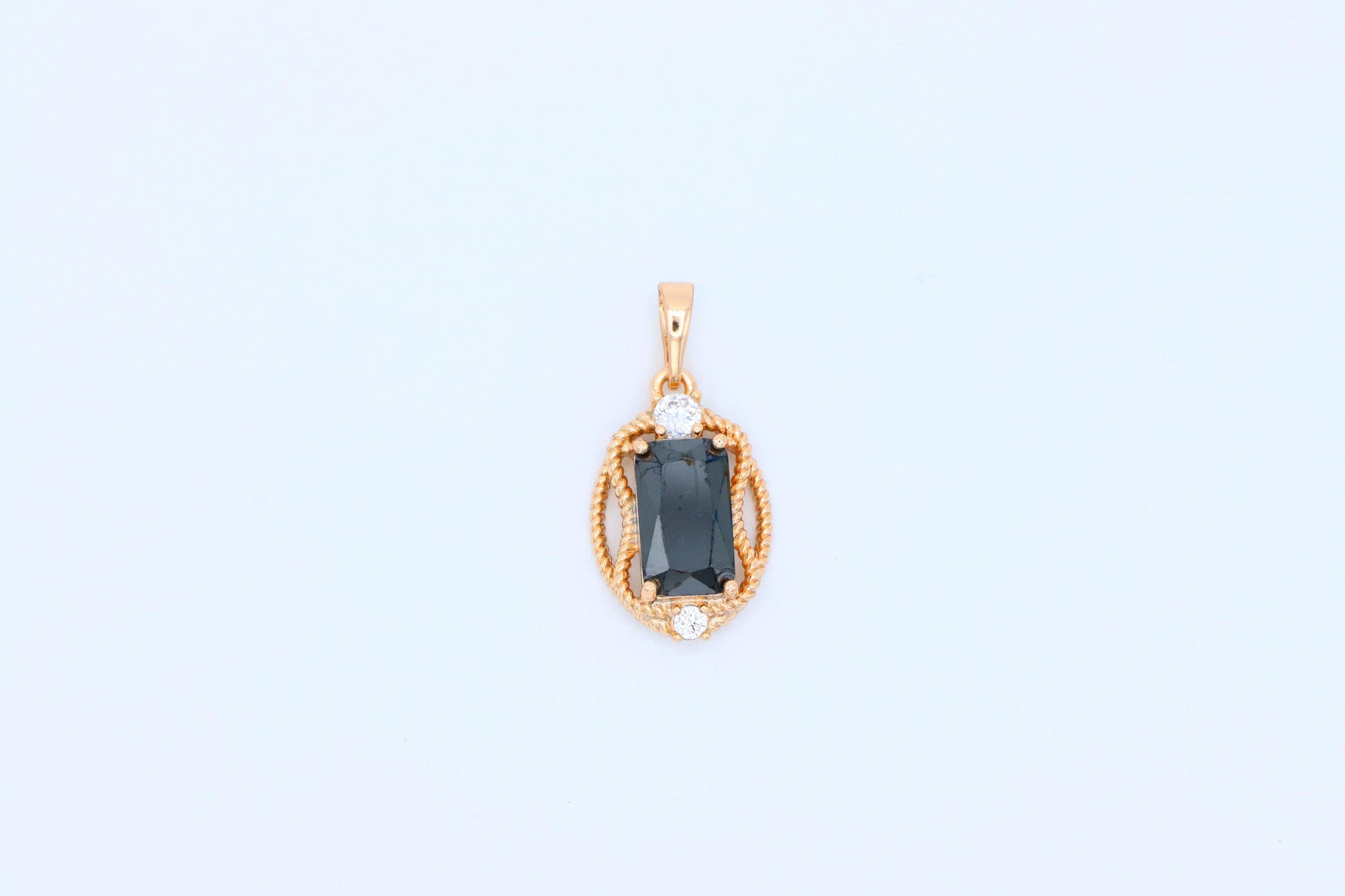 Black Rectangle Pendant with Gold Plated Brass & Crystal Accents, XPPT1682 (2164-3)