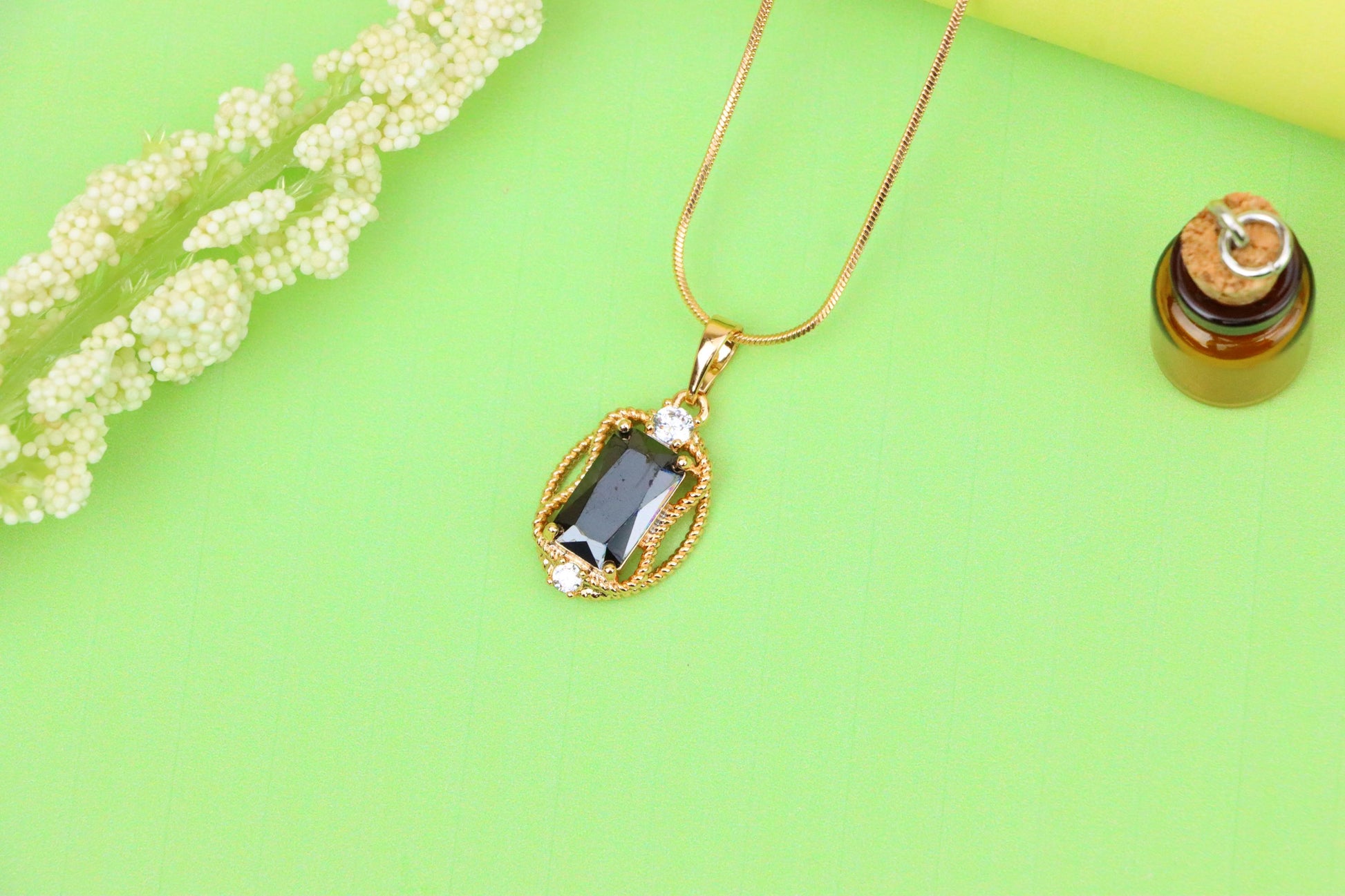 Black Rectangle Pendant with Gold Plated Brass & Crystal Accents, XPPT1682