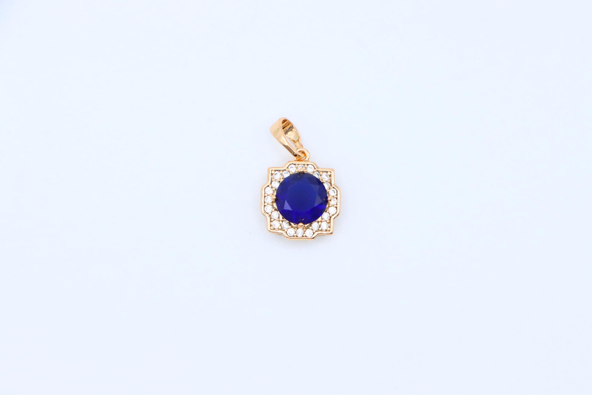 Blue Round Pendant in Gold with Crystal Halo, XPPT1638