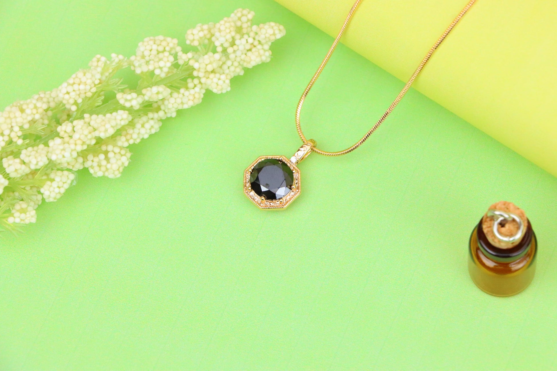 Bold Black Gem Pendant in Rose Gold Octagon Setting, XPPT1389