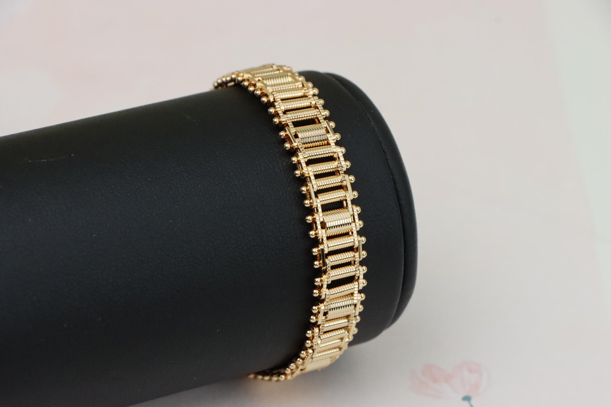 Crafted with premium gold-plated brass, this rose gold bracelet offers a bold and structured design perfect for daily wear or special occasions.