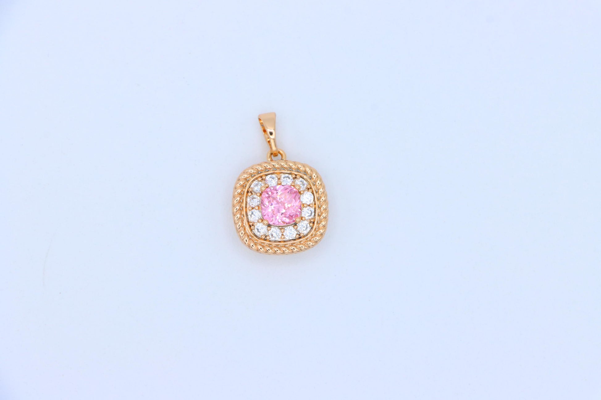 Chic Pink Cushion Pendant with Sparkling Crystal Halo Accents, XPPT1661