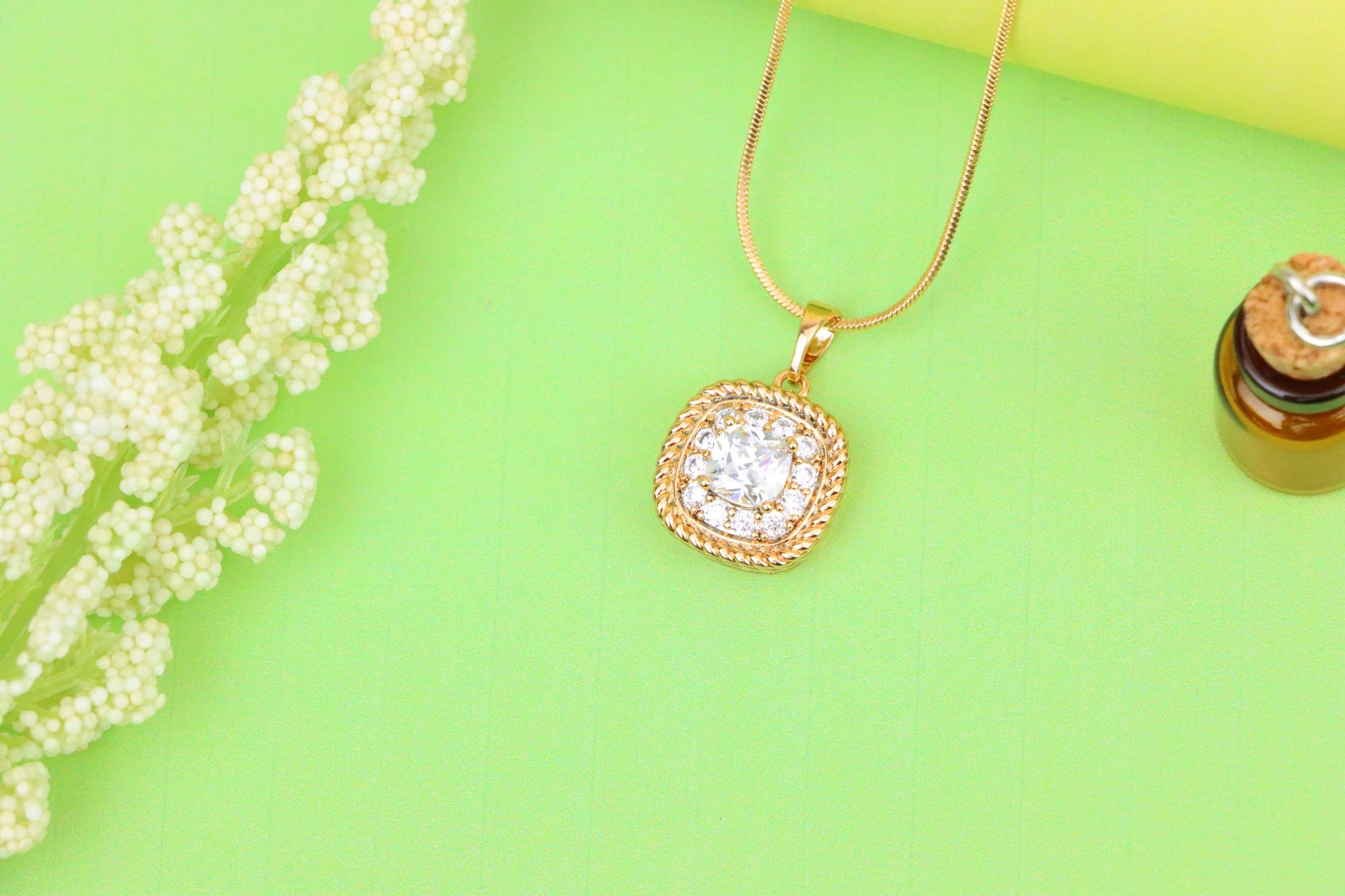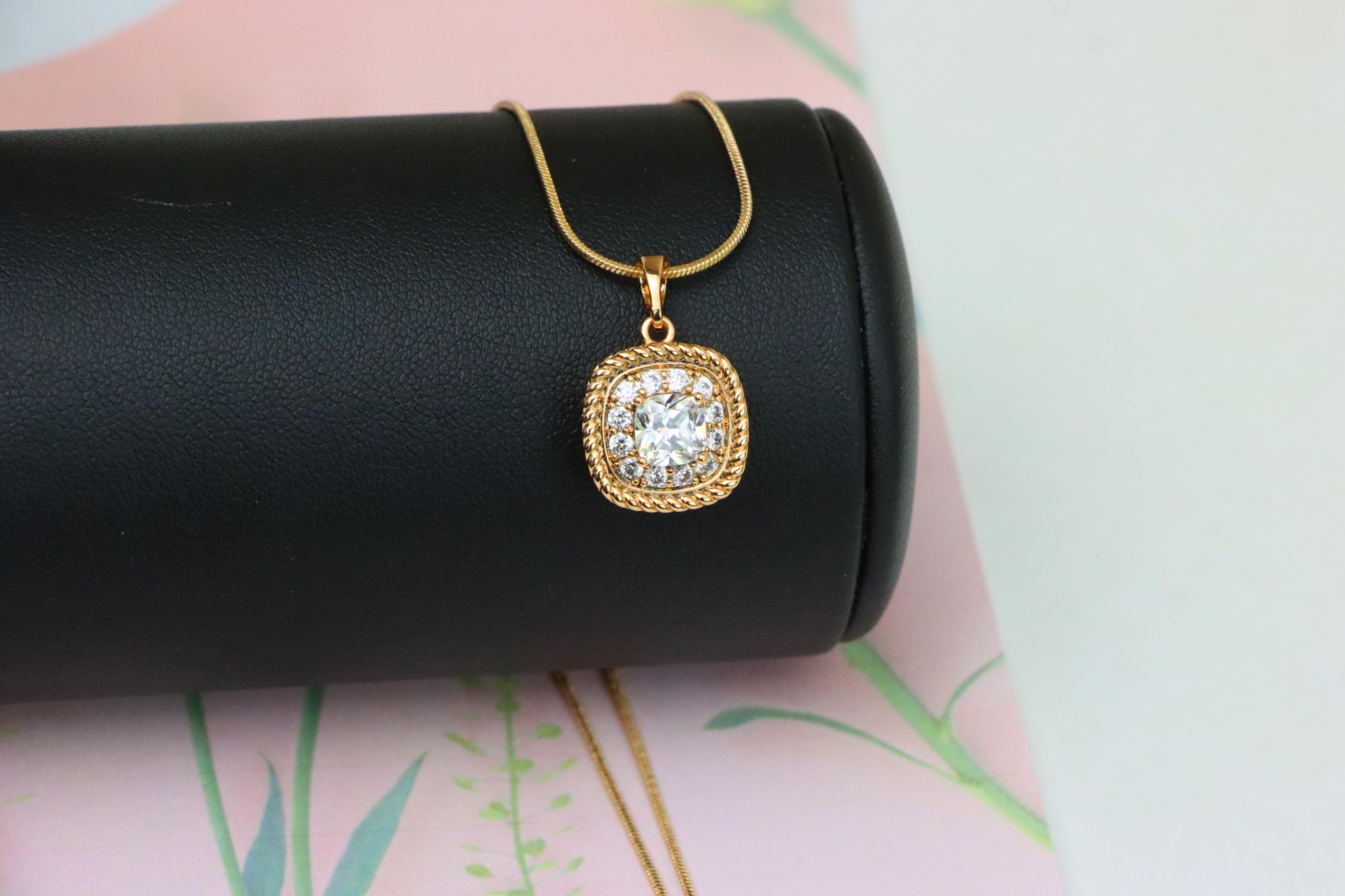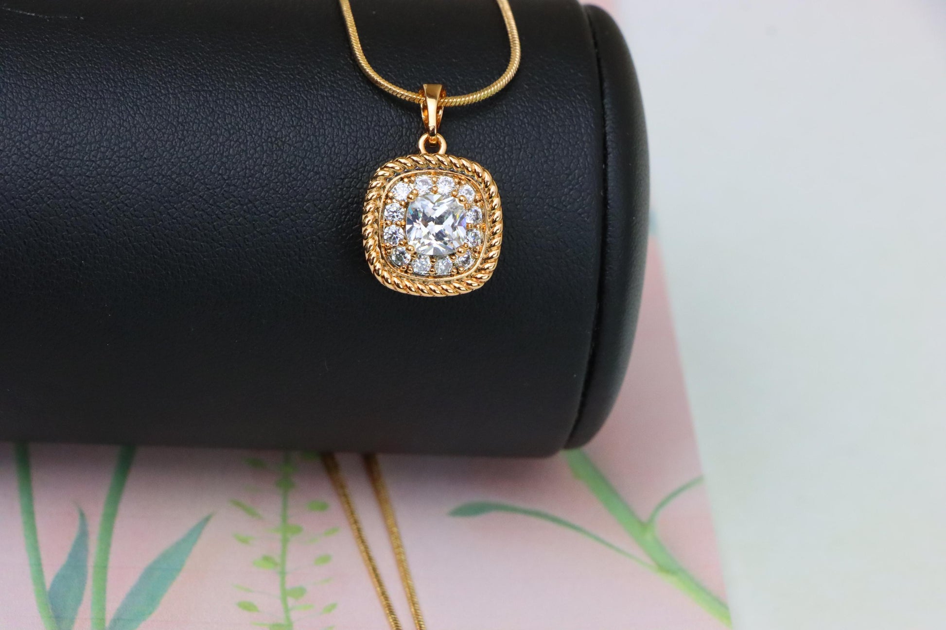 Classic White Cushion Pendant with Gold Textured Frame and Sparkle, XPPT1659 (2163-1)