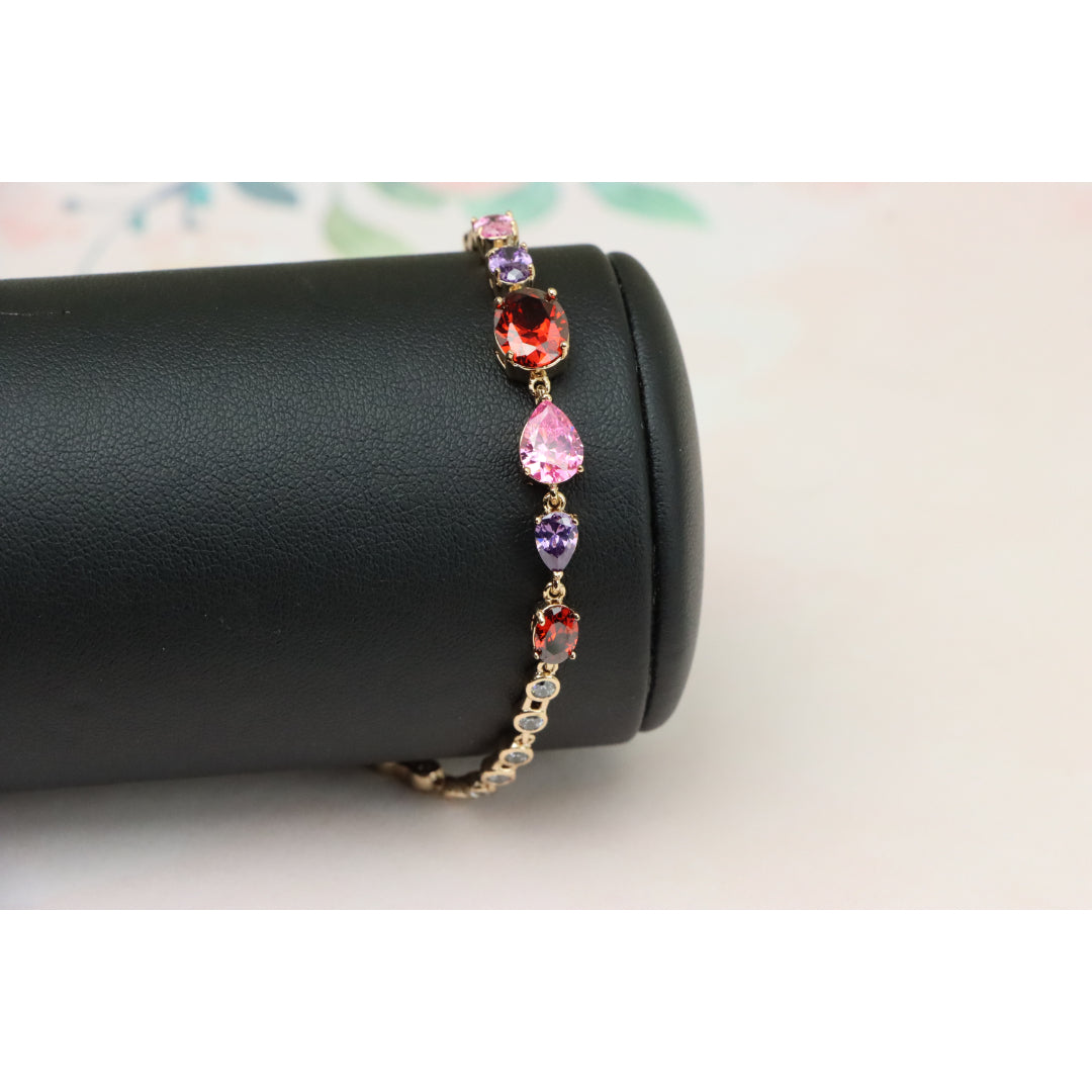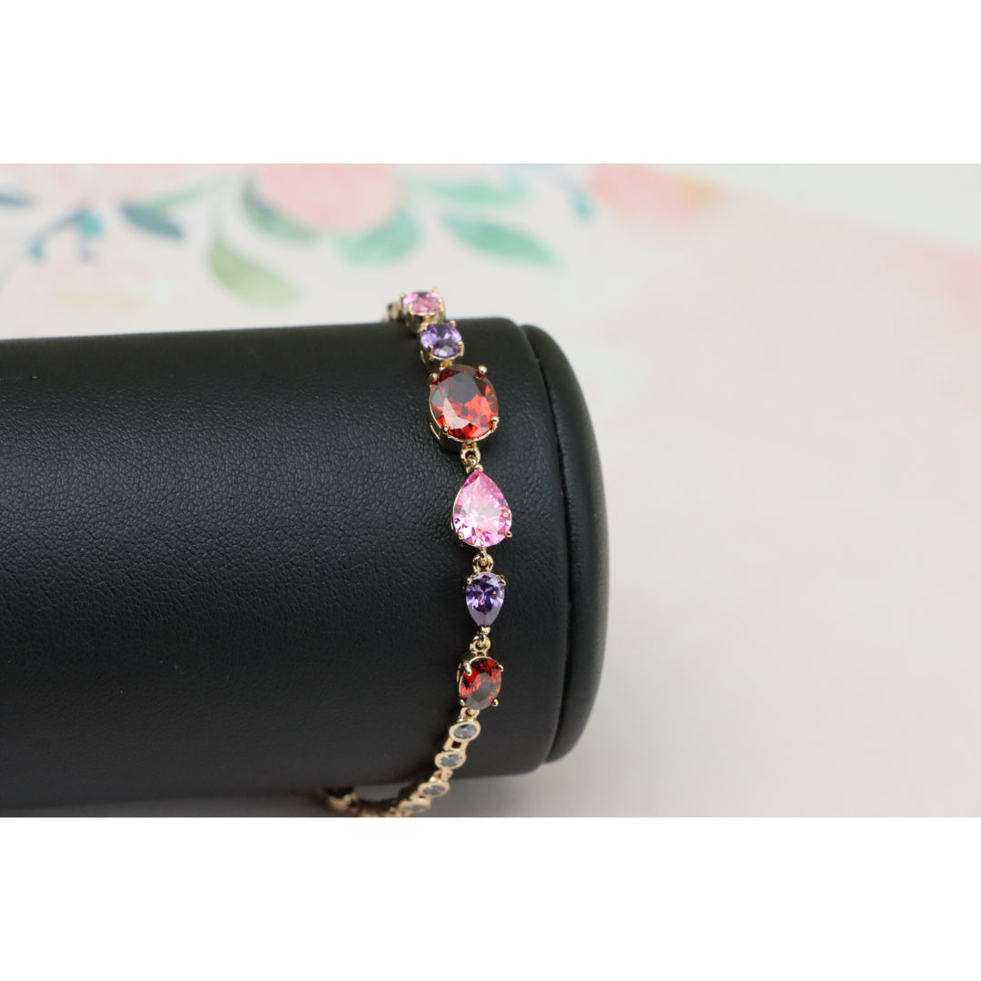 ✓ Adorned with pink, red, and purple teardrop and oval-cut stones