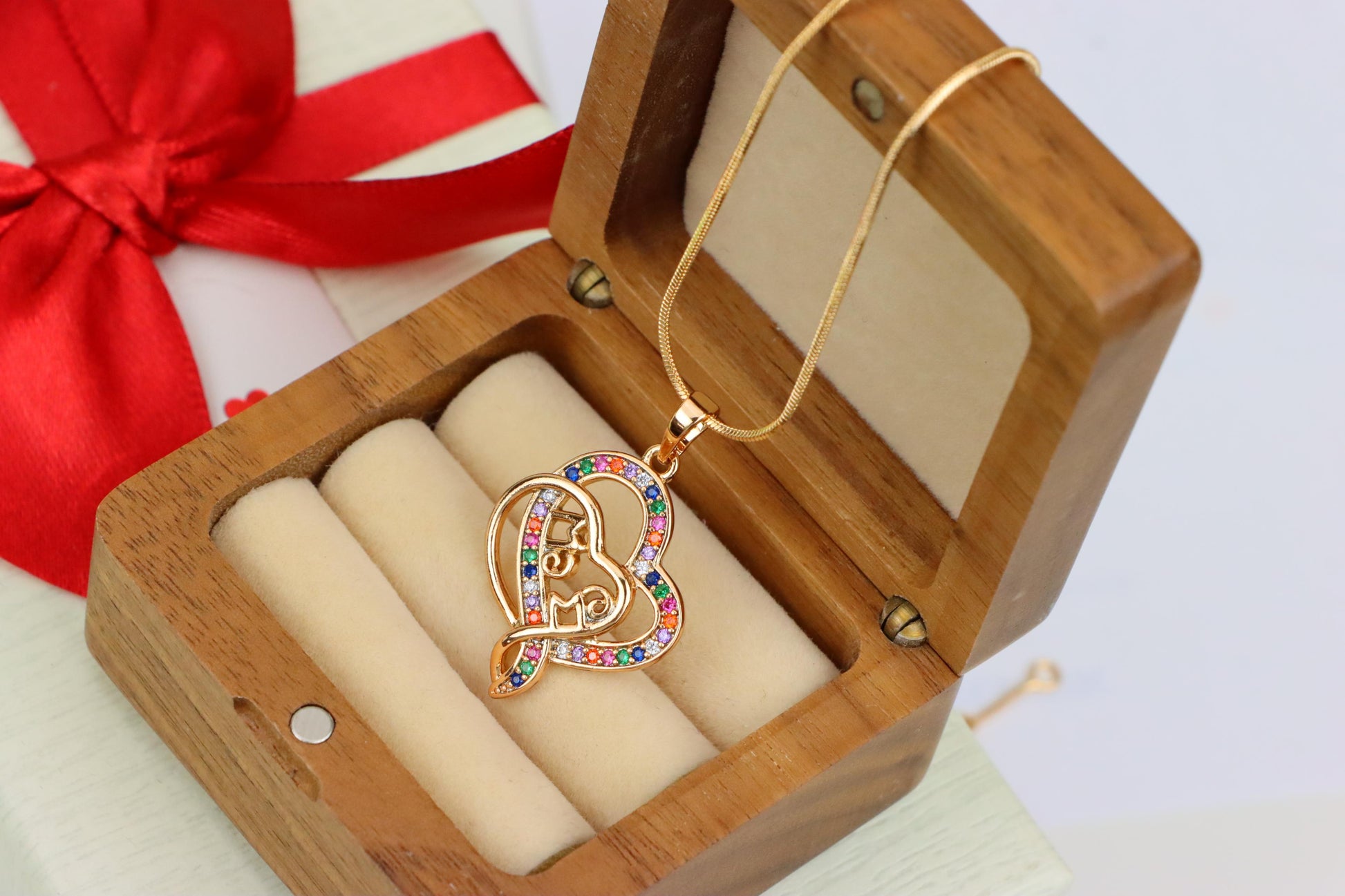 Colorful Mom Heart Pendant in Rose Gold with Rainbow CZ, XPPT1287