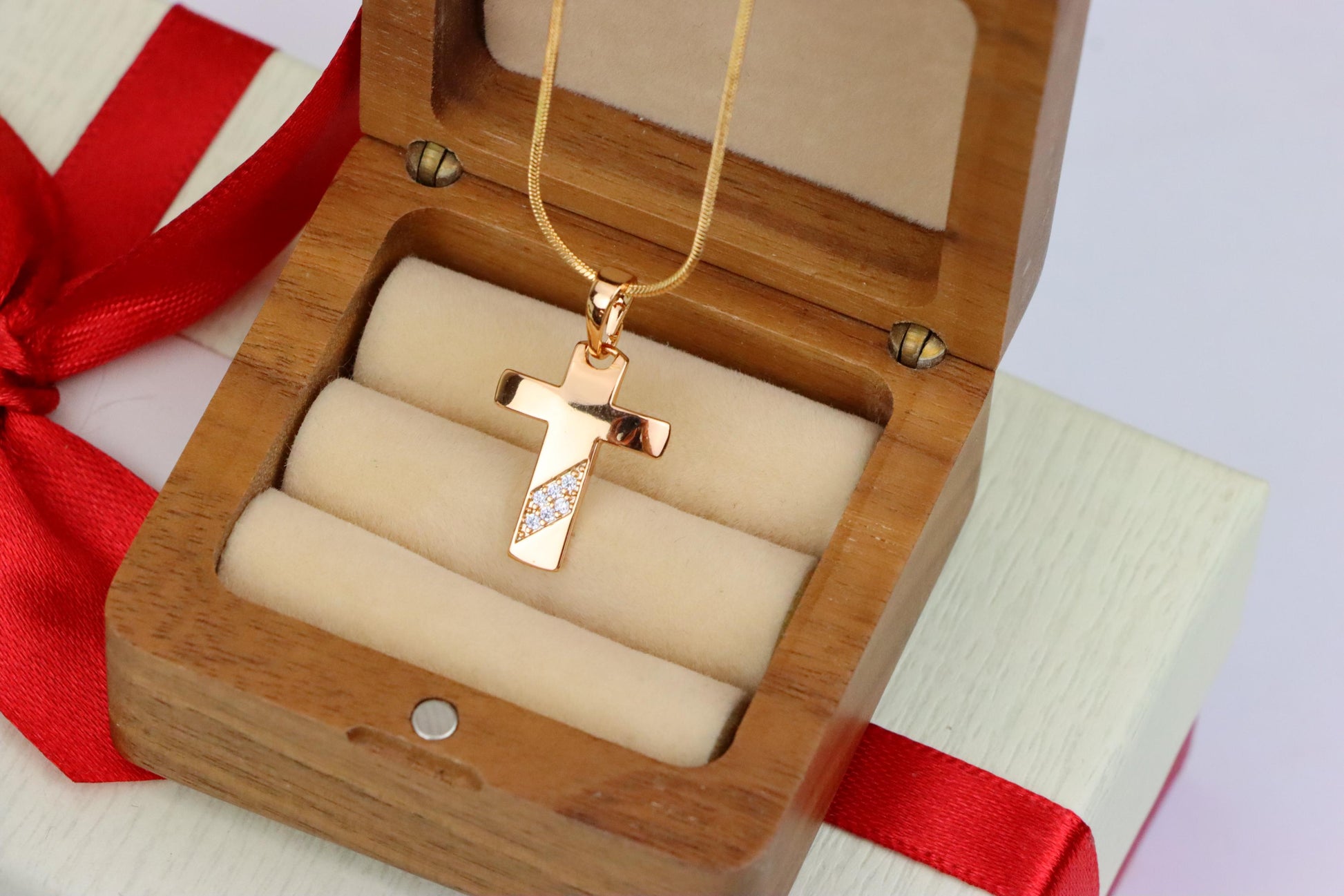 ✔️ Sleek, modern cross with a diagonal crystal accent