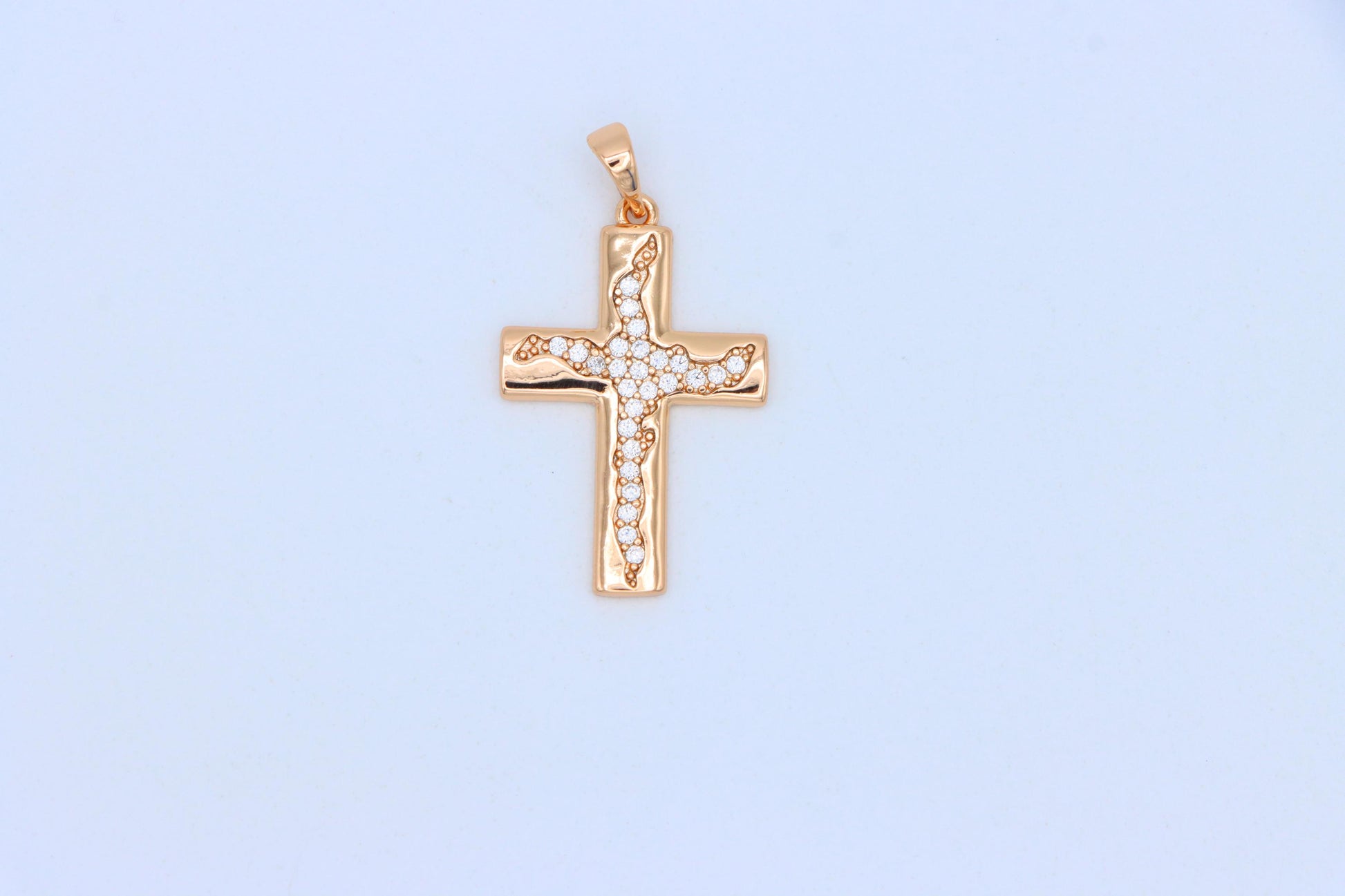 Cross Shaped Rose Gold Pendant with Textured Stone Inlay, XPPT1852 (2156-7)
