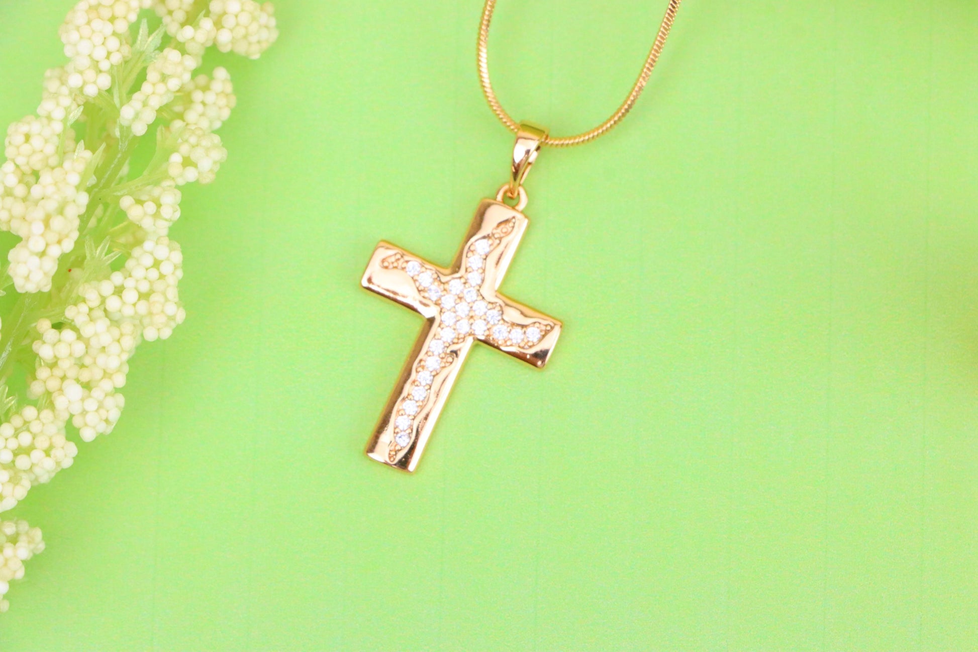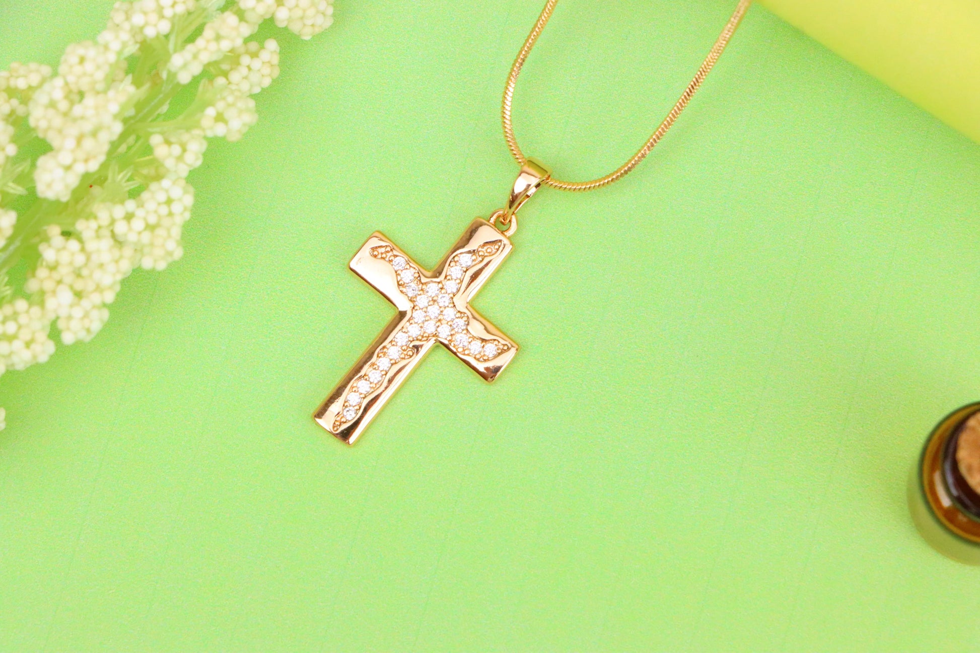 Cross Shaped Rose Gold Pendant with Textured Stone Inlay, XPPT1852
