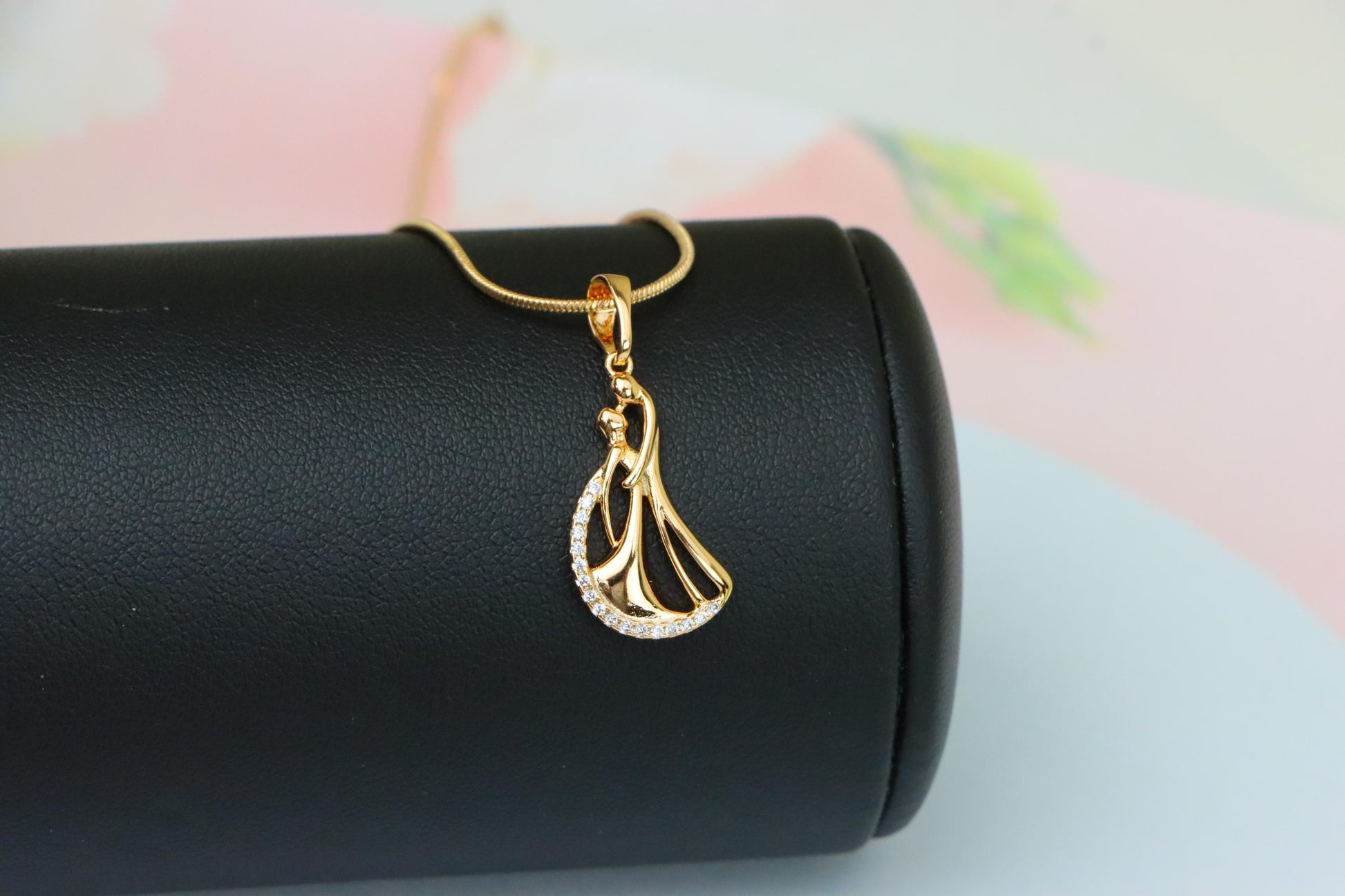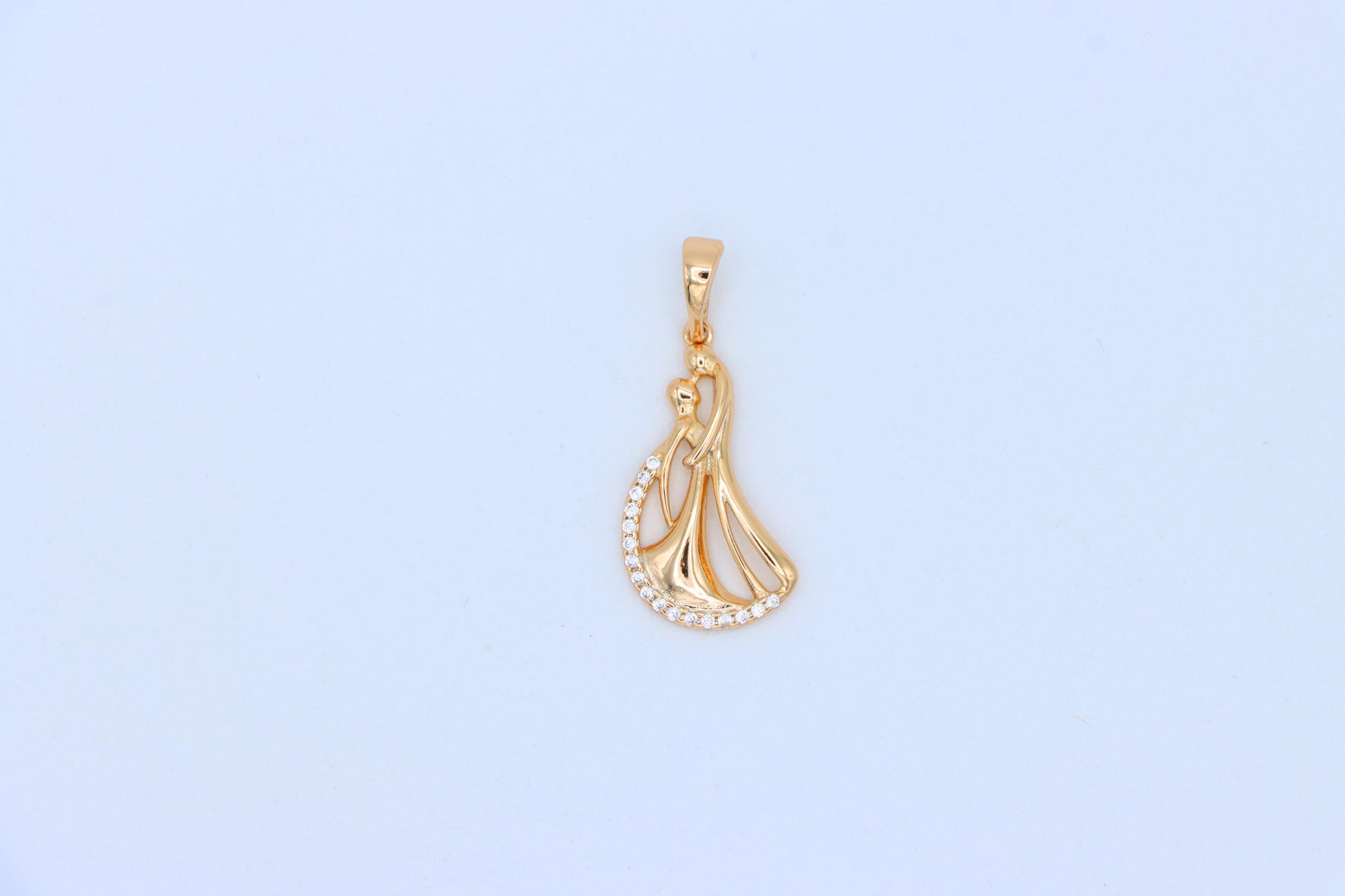 This graceful pendant showcases a romantic dancing couple, with delicate curves and crystal accents that highlight elegance and emotion in a rose gold finish.