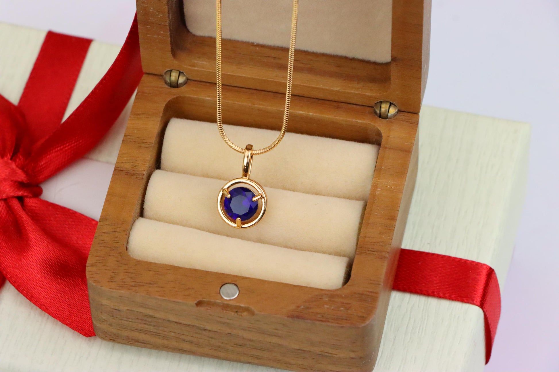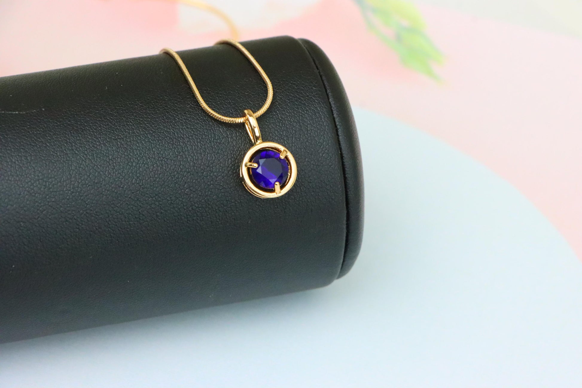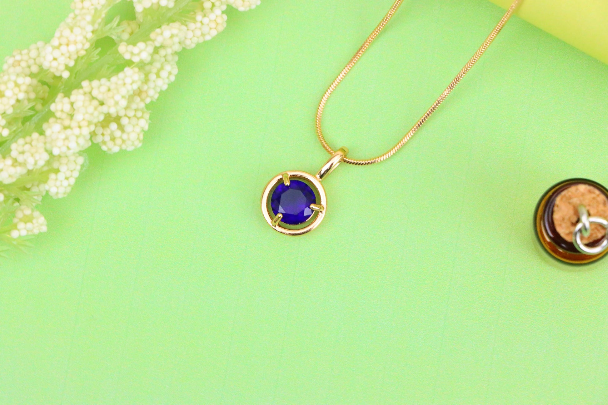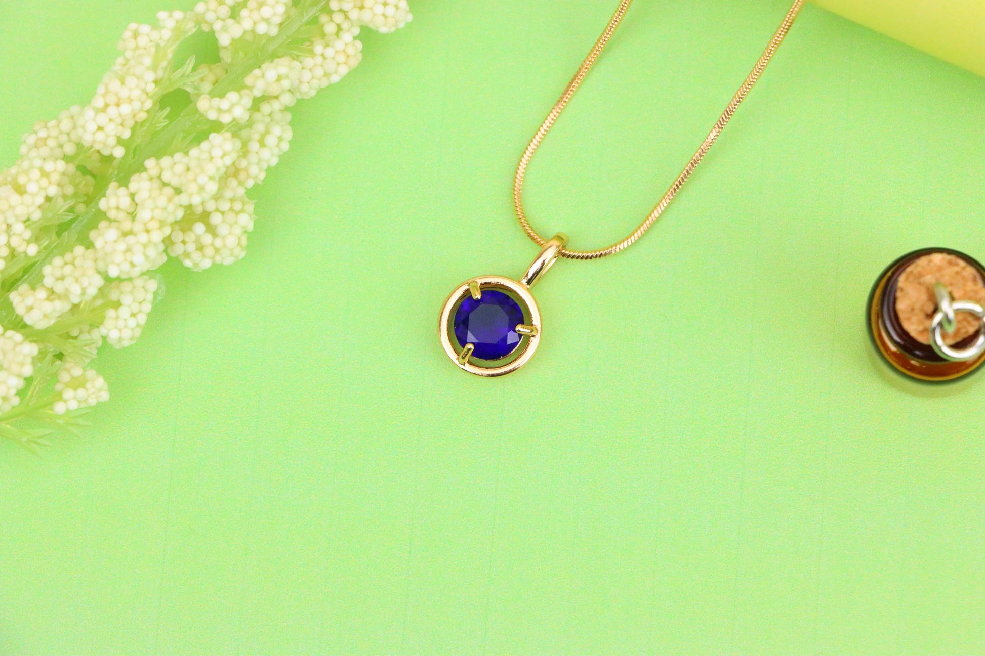 Deep Blue Round Pendant in Gold Plated Brass – Timeless Elegance, XPPT1703 (2150-6)