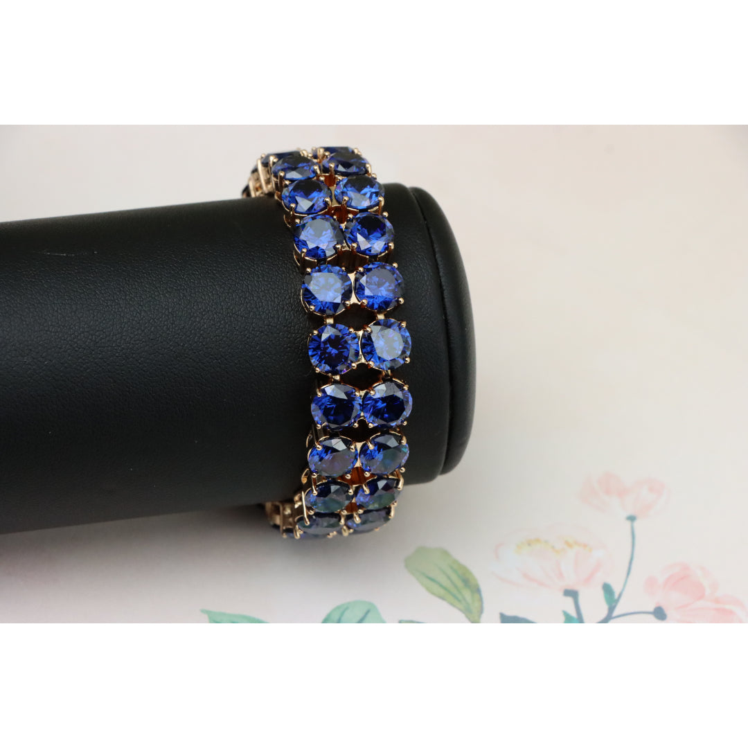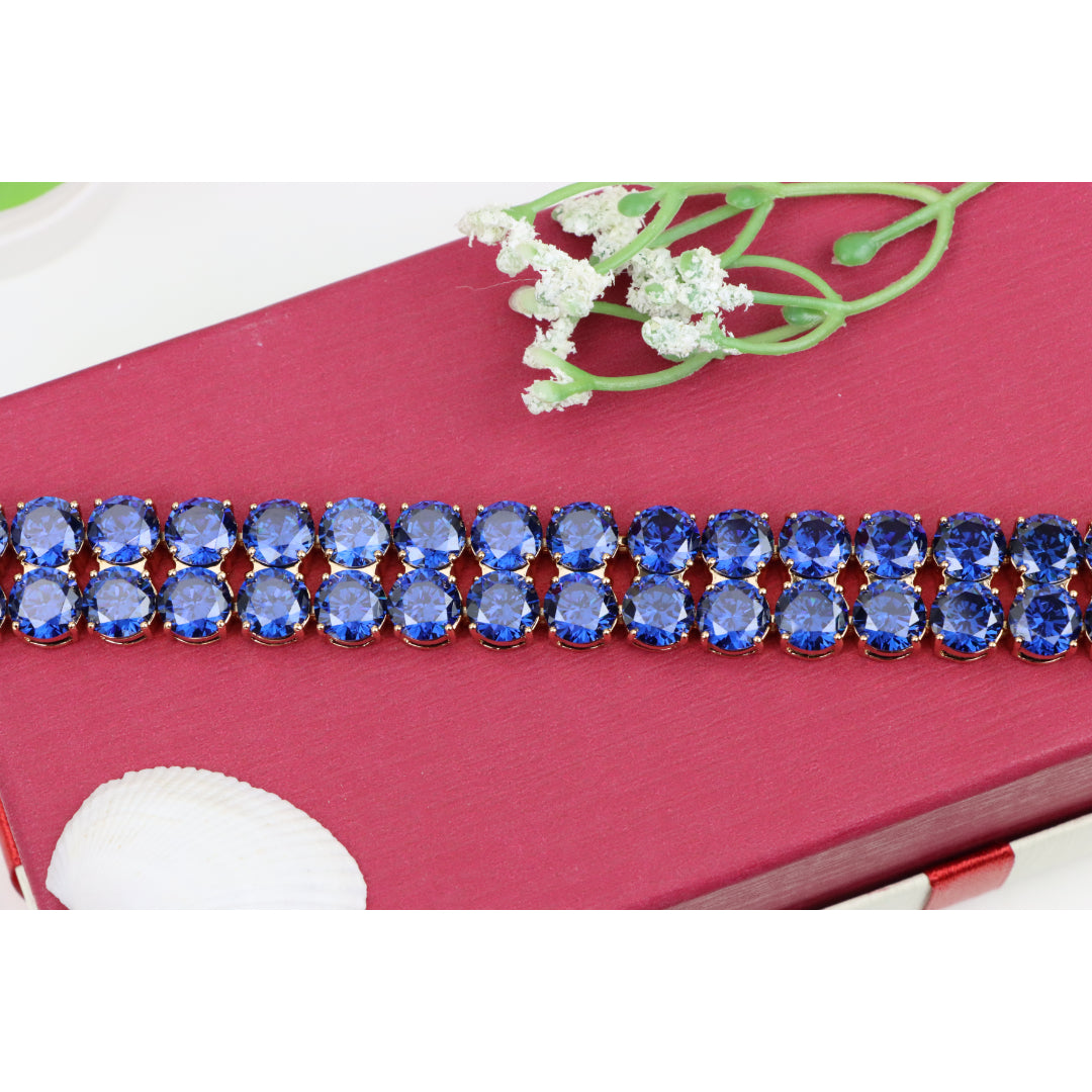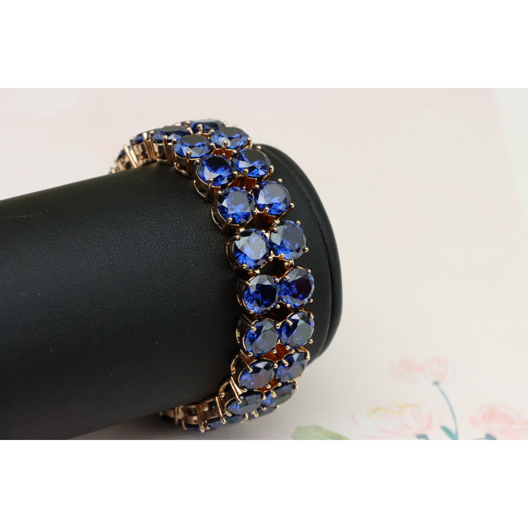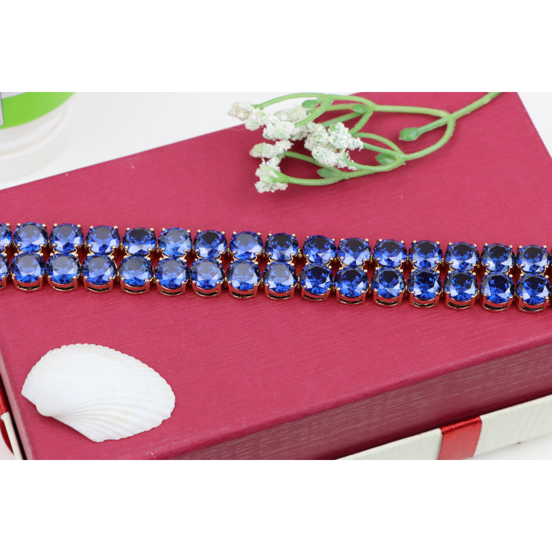 Elegant and eye-catching bracelet featuring twin rows of brilliant blue stones, set in a rose gold finish.