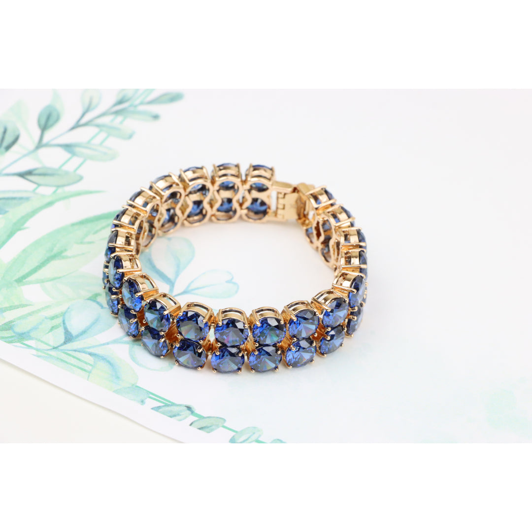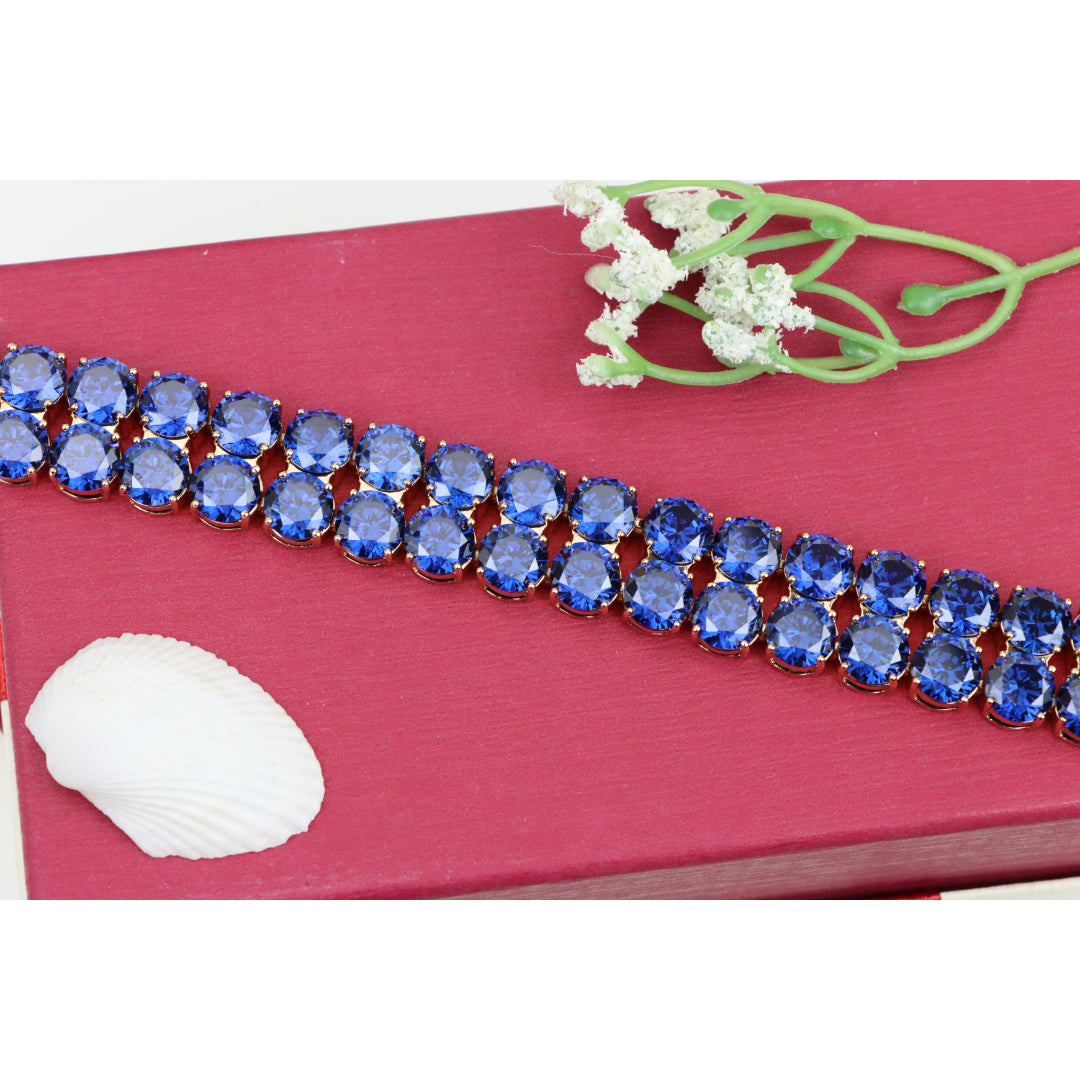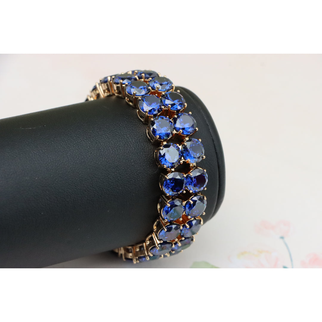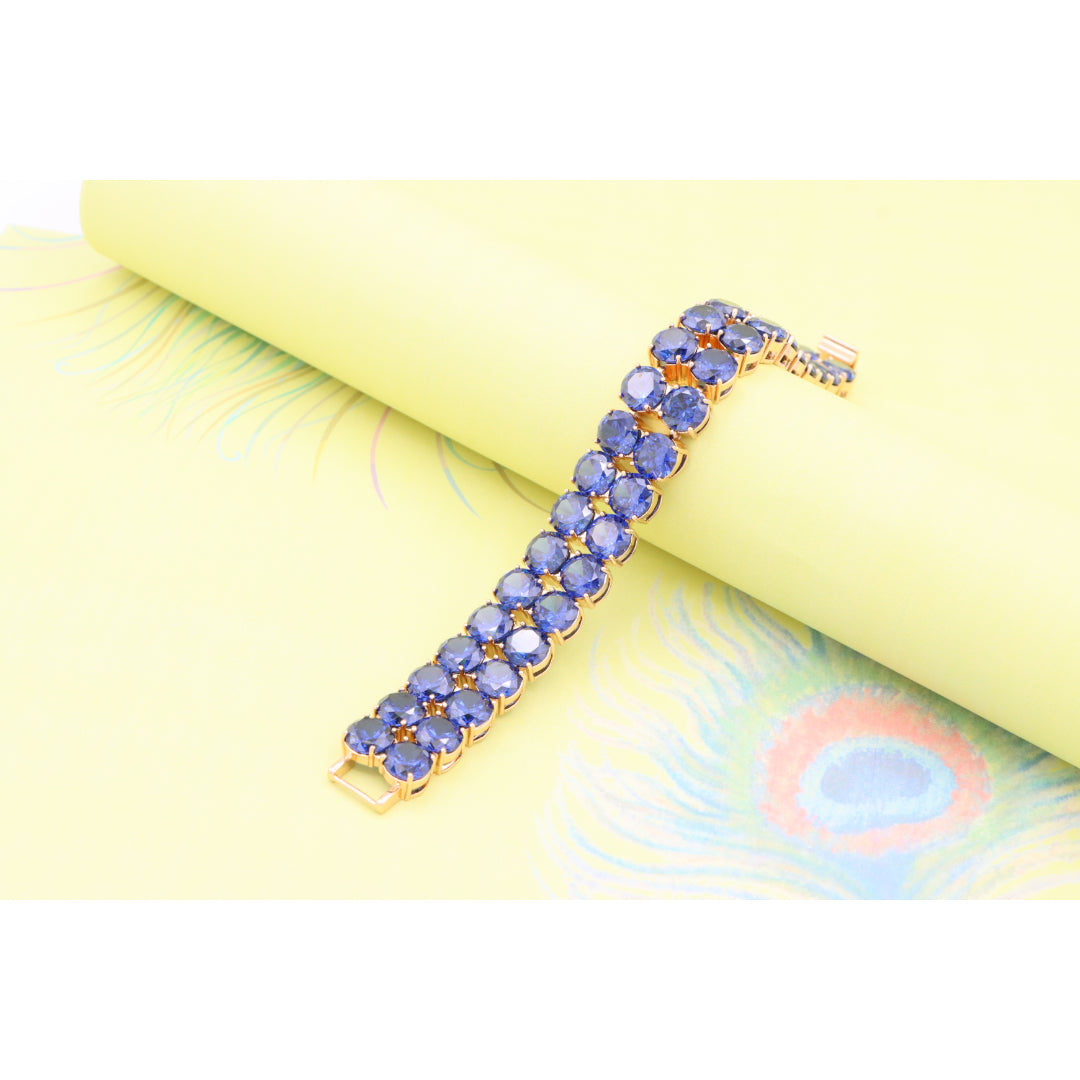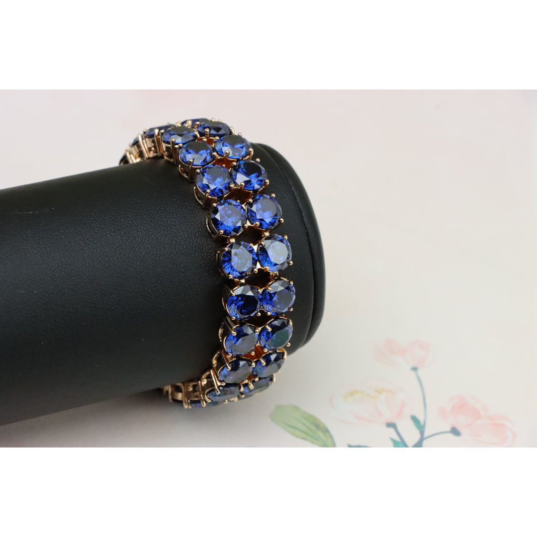 Elegant and eye-catching bracelet featuring twin rows of brilliant blue stones, set in a rose gold finish.
