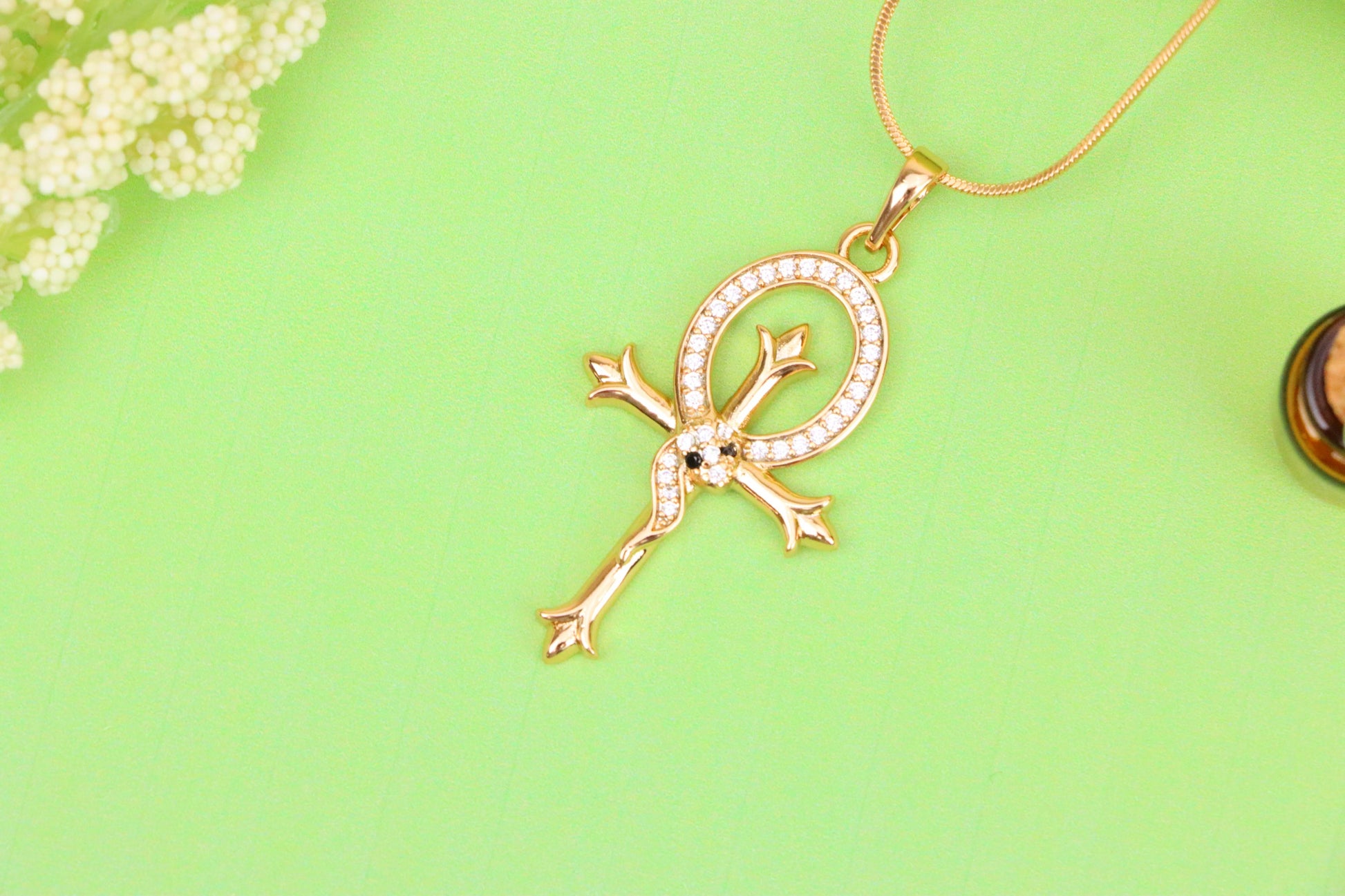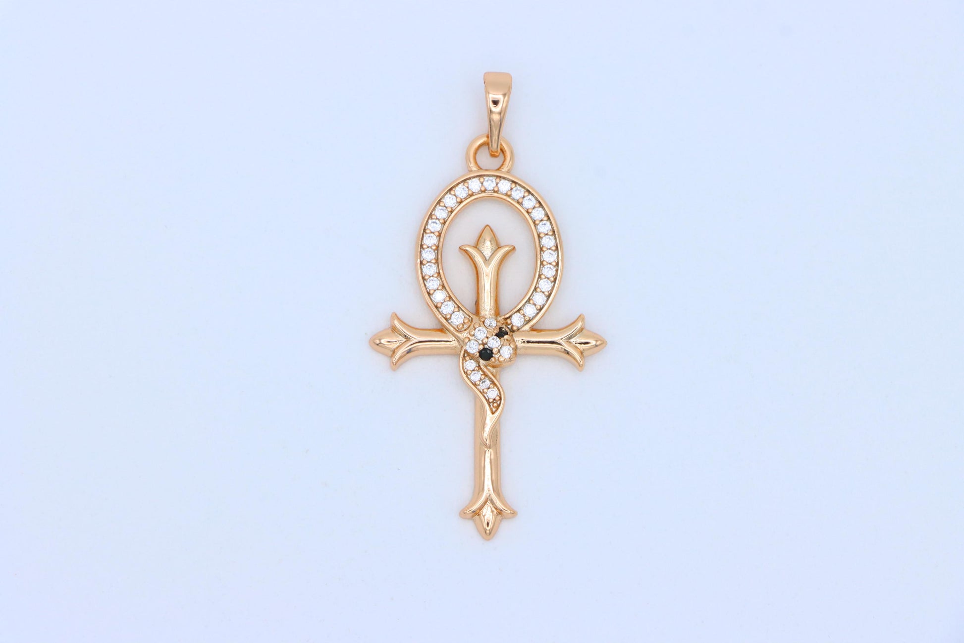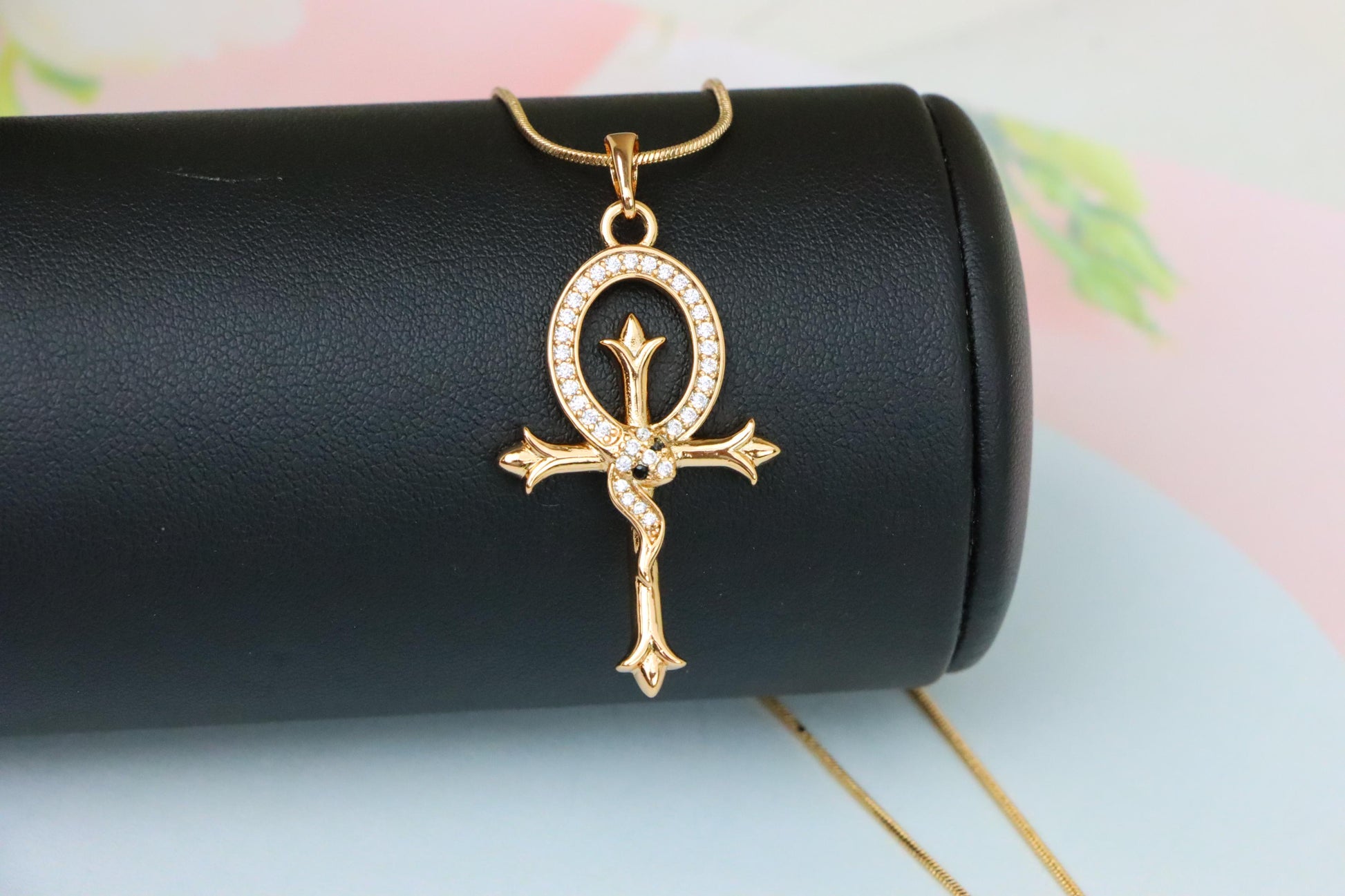 Egyptian Ankh Cross Rose Gold Pendant with Serpent Detailing, XPPT1631