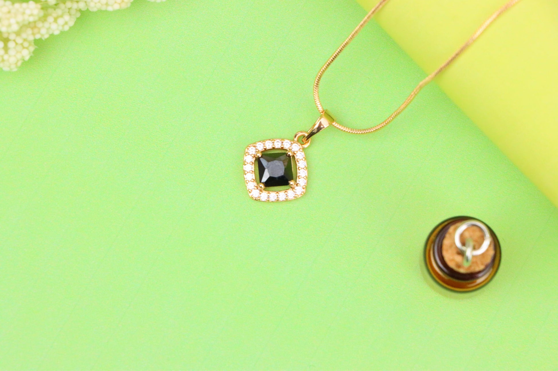 Elegant Black Square Pendant with Gold Plated Halo Design – Classy Look, XPPT1795 (2153-1)