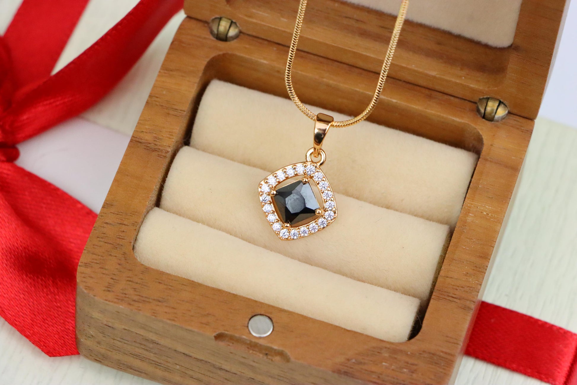 Elegant Black Square Pendant with Gold Plated Halo Design – Classy Look, XPPT1795