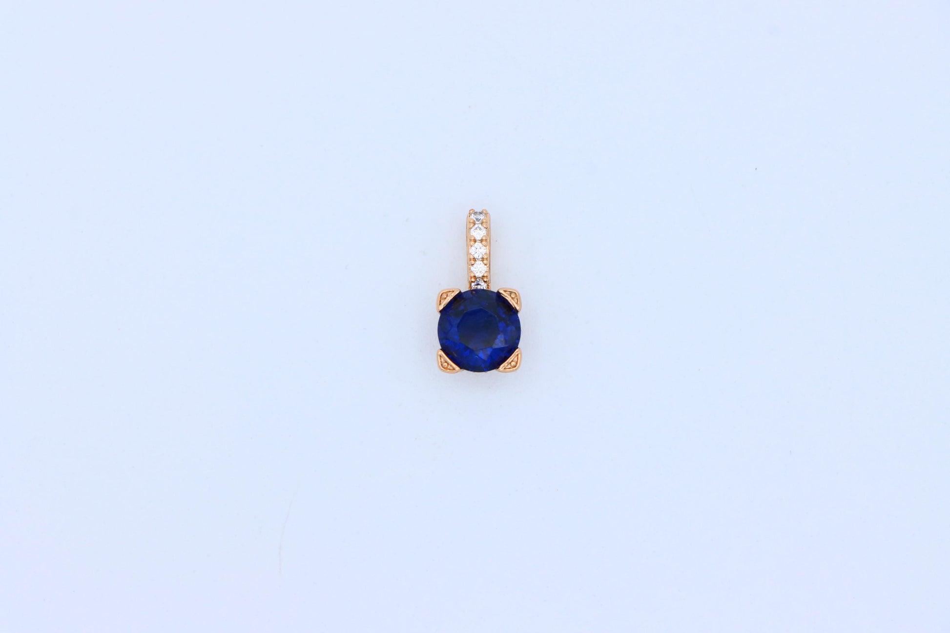 Elegant Blue Round Pendant with Gold Plated Embellished Bail, XPPT1717 (2150-8)