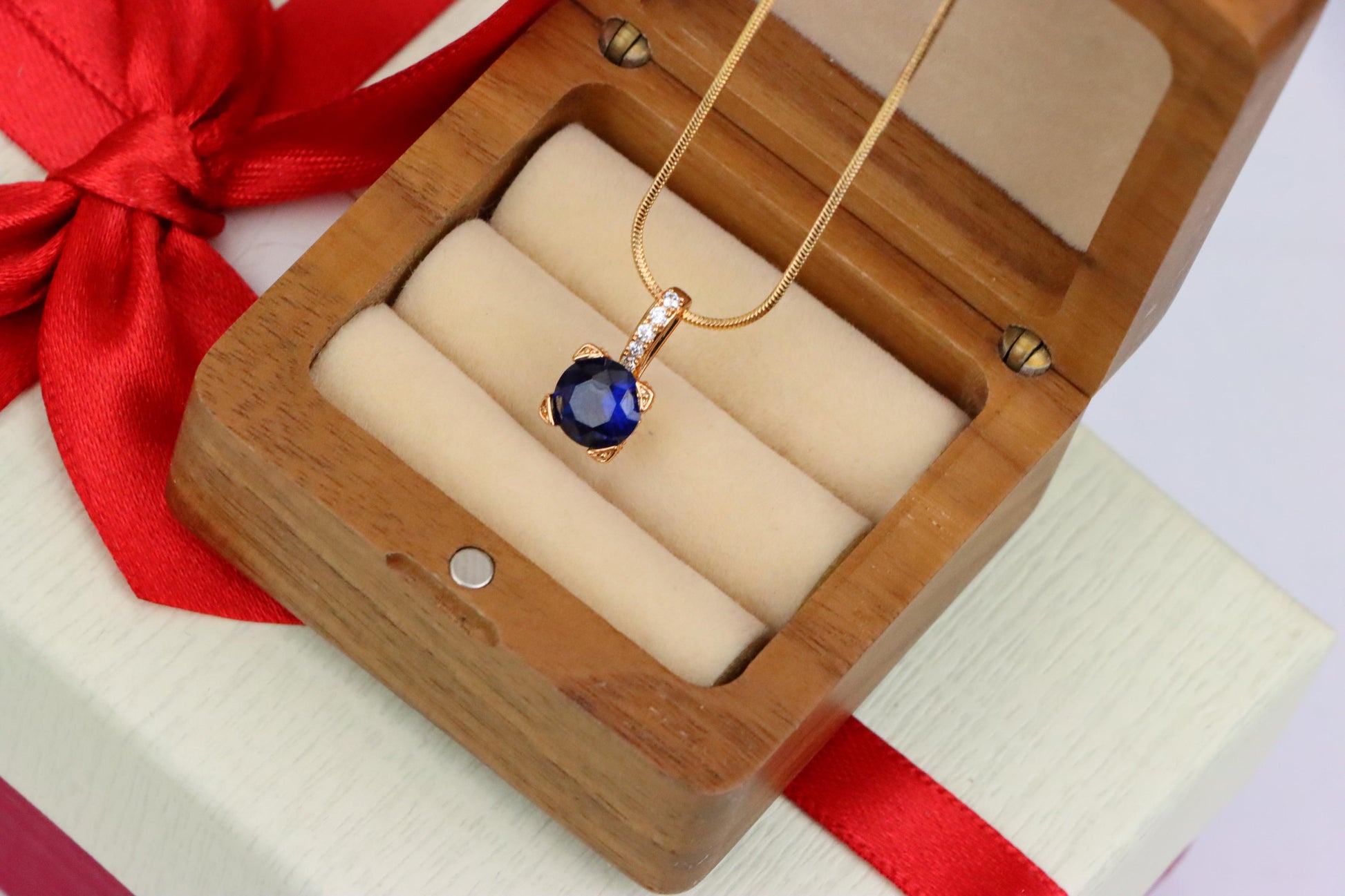✔️ Deep blue round stone for a timeless, luxurious appeal