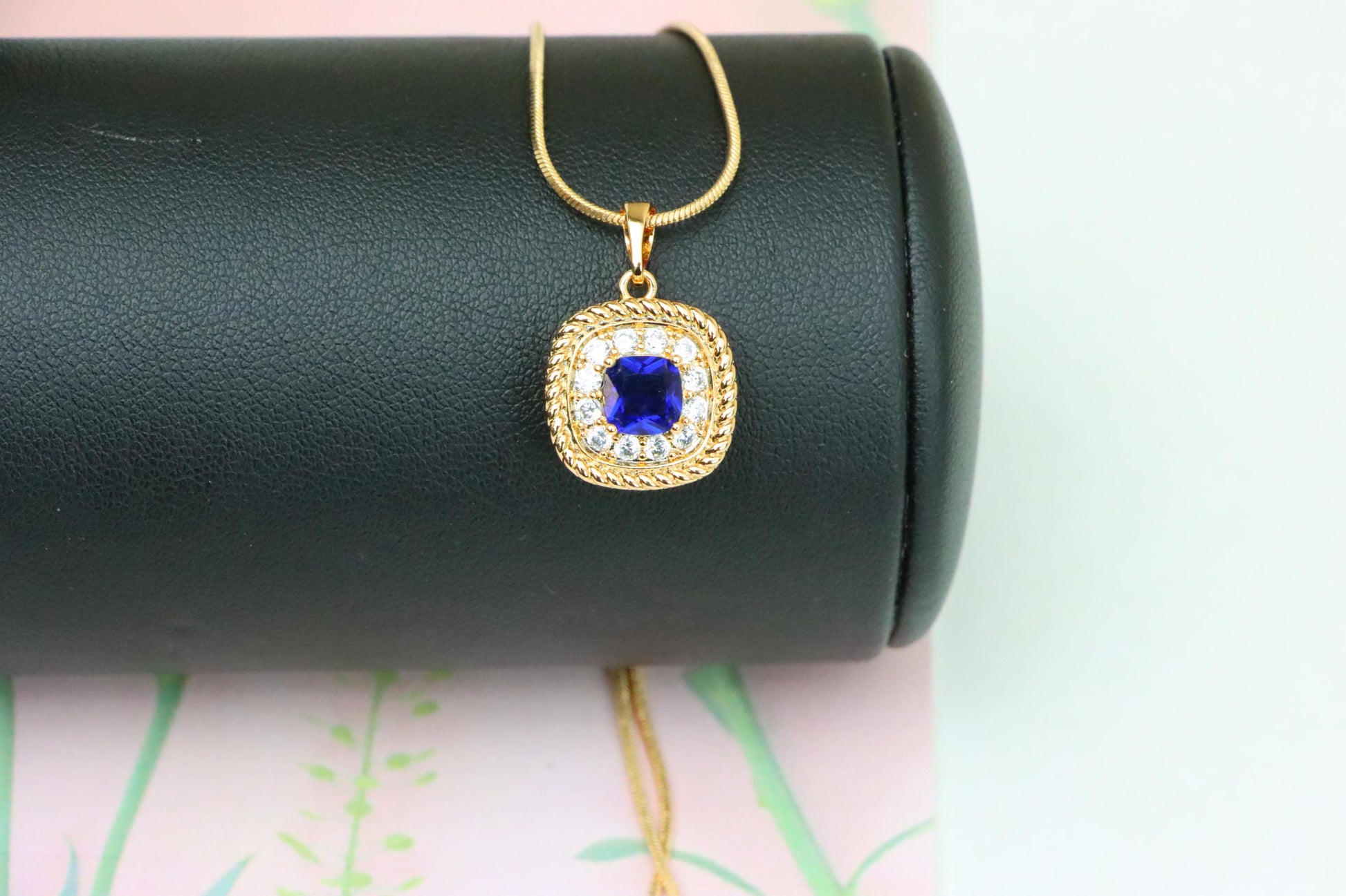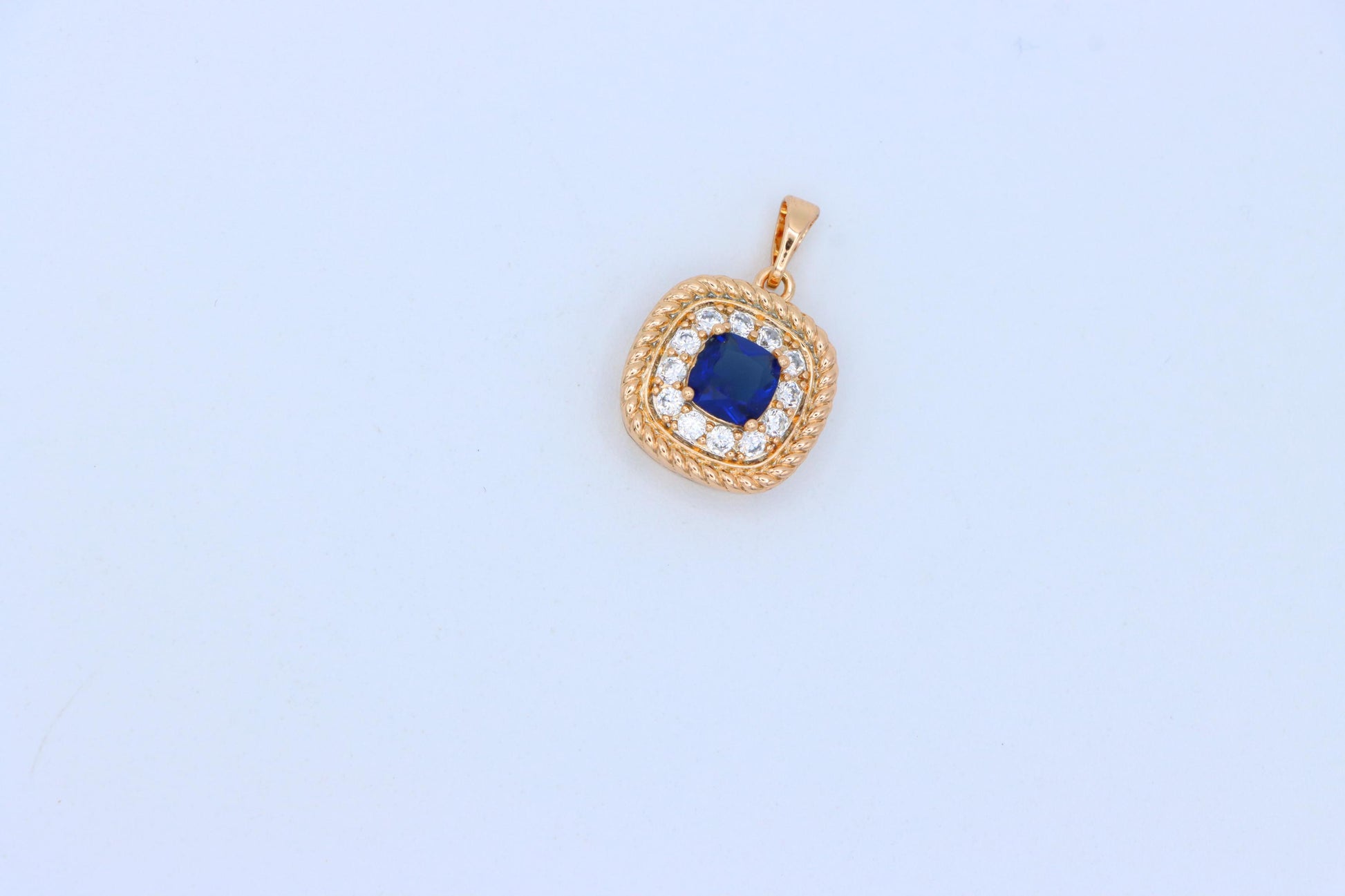 Elegant Blue Square Pendant with Sparkling Crystal Border, XPPT1664 (2163-1)