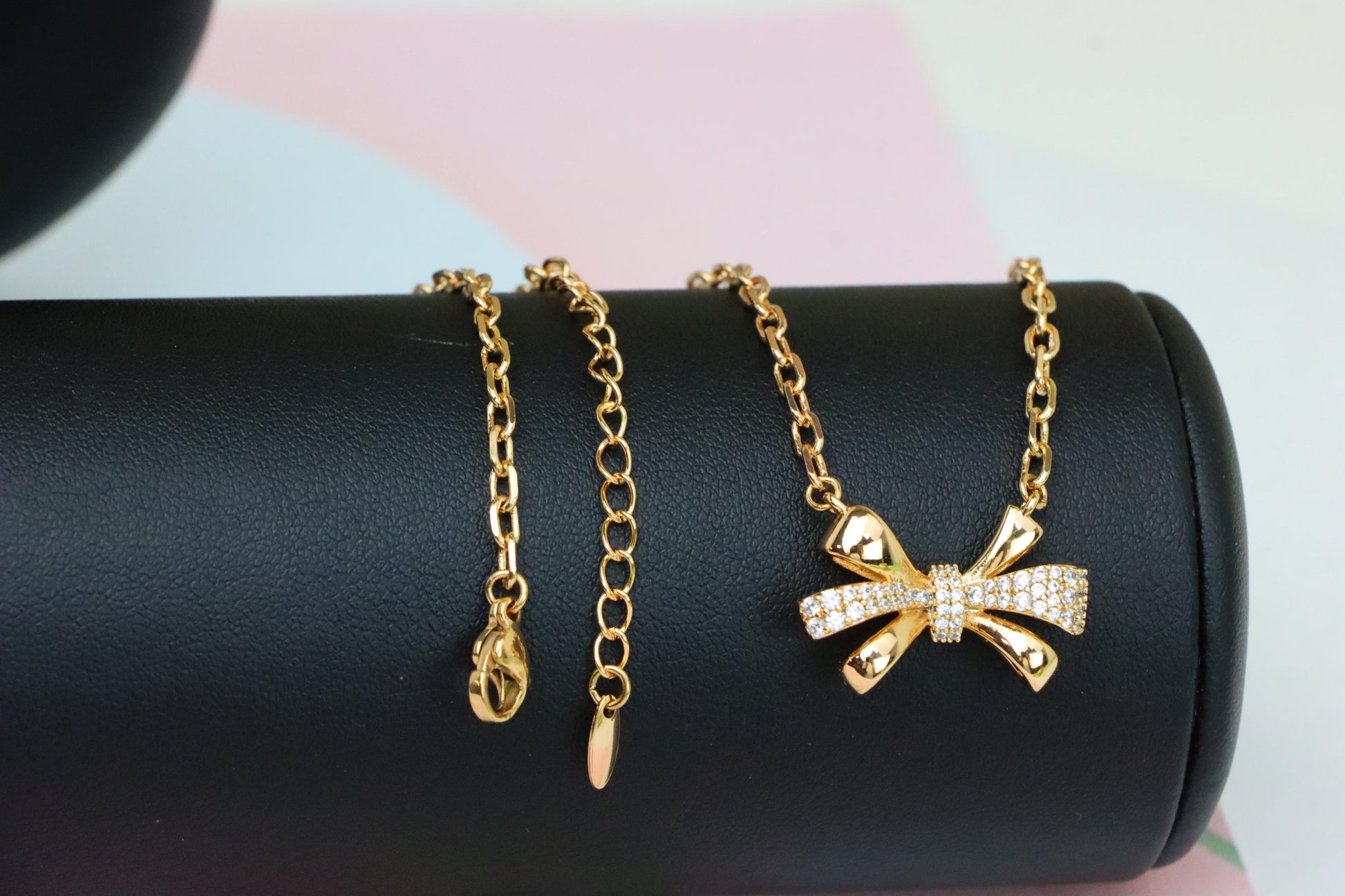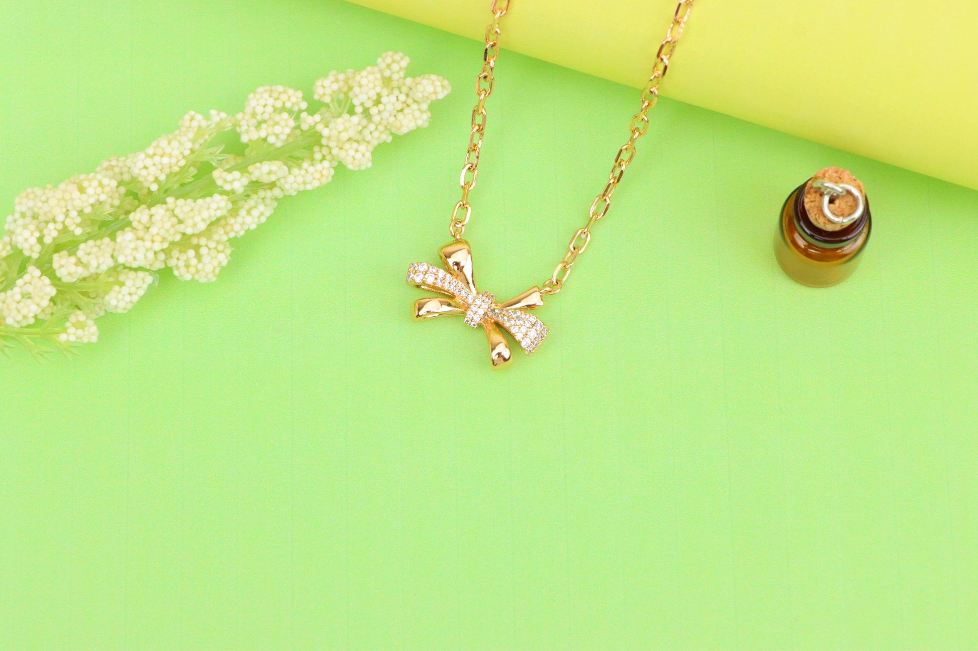 Elegant Bow Rose Gold Necklace with Sparkling Crystal Detailing, XPNL1876