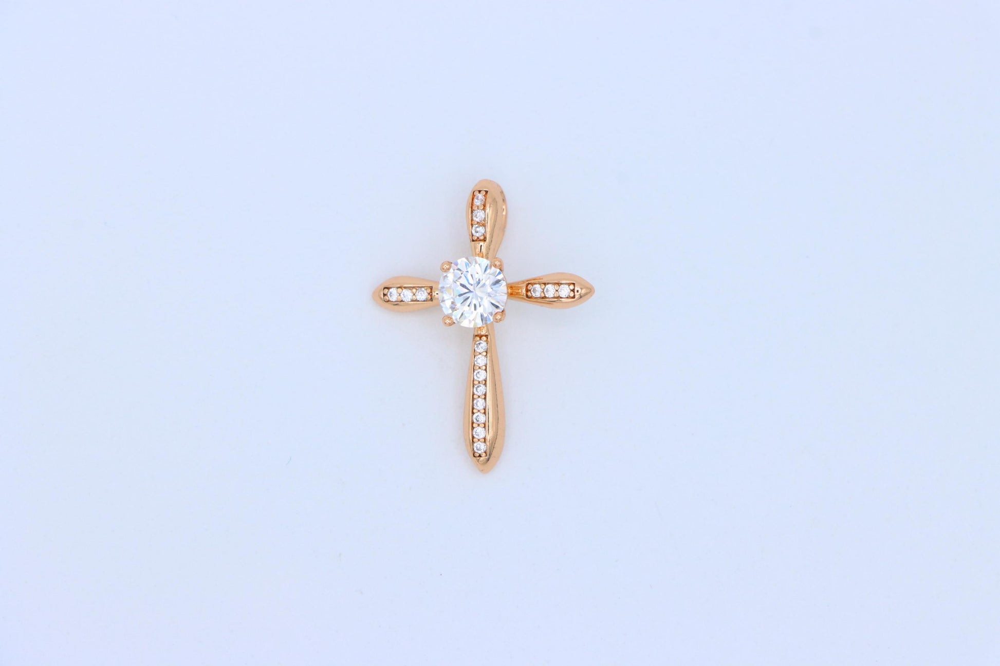 Elegant Cross Pendant with Center Solitaire in Rose Gold Finish, XPPT1828