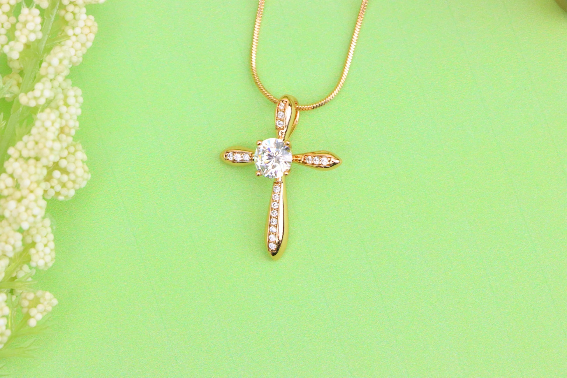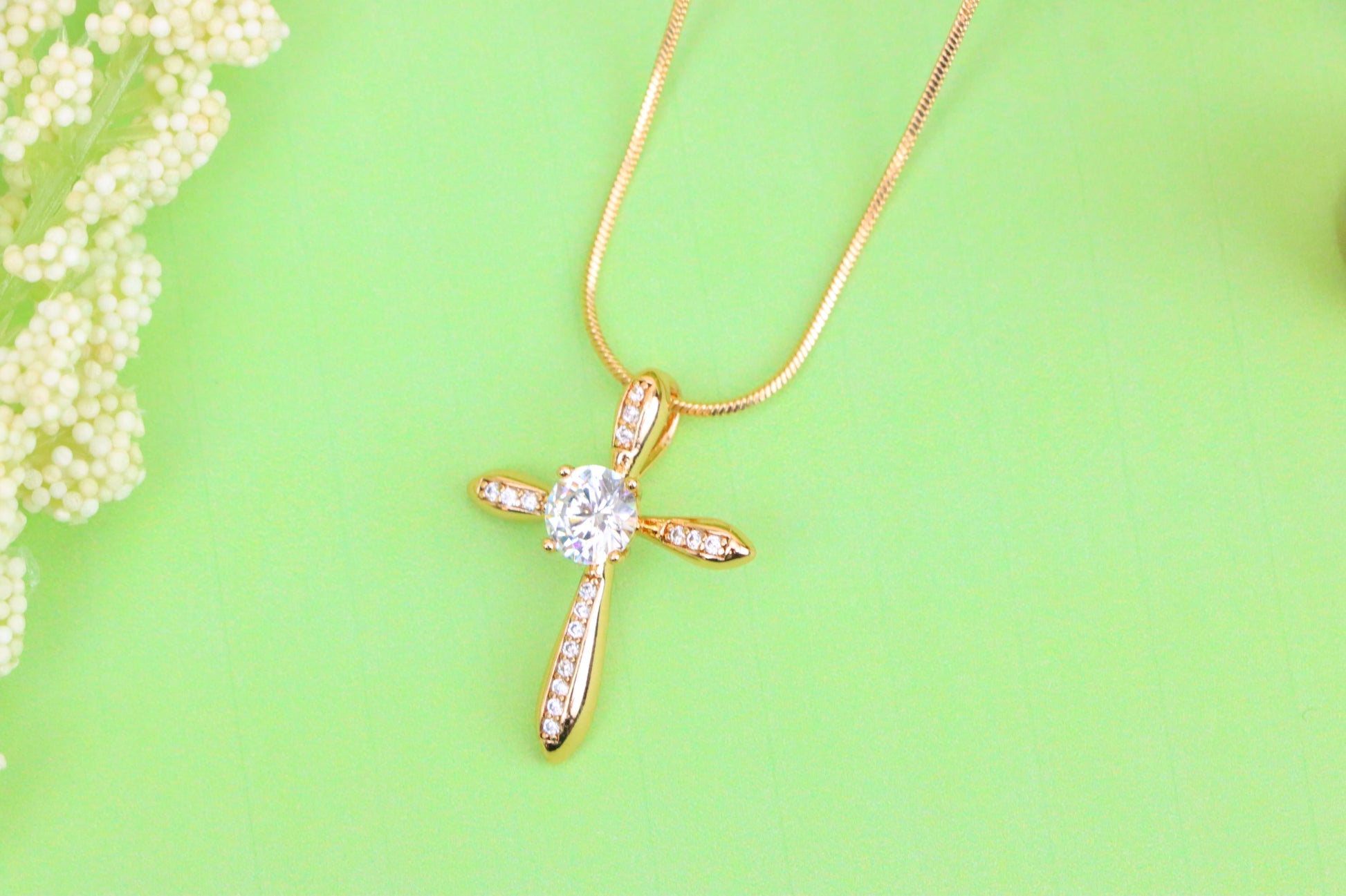 ✔️ Delicate cubic zirconia stones on each arm of the cross