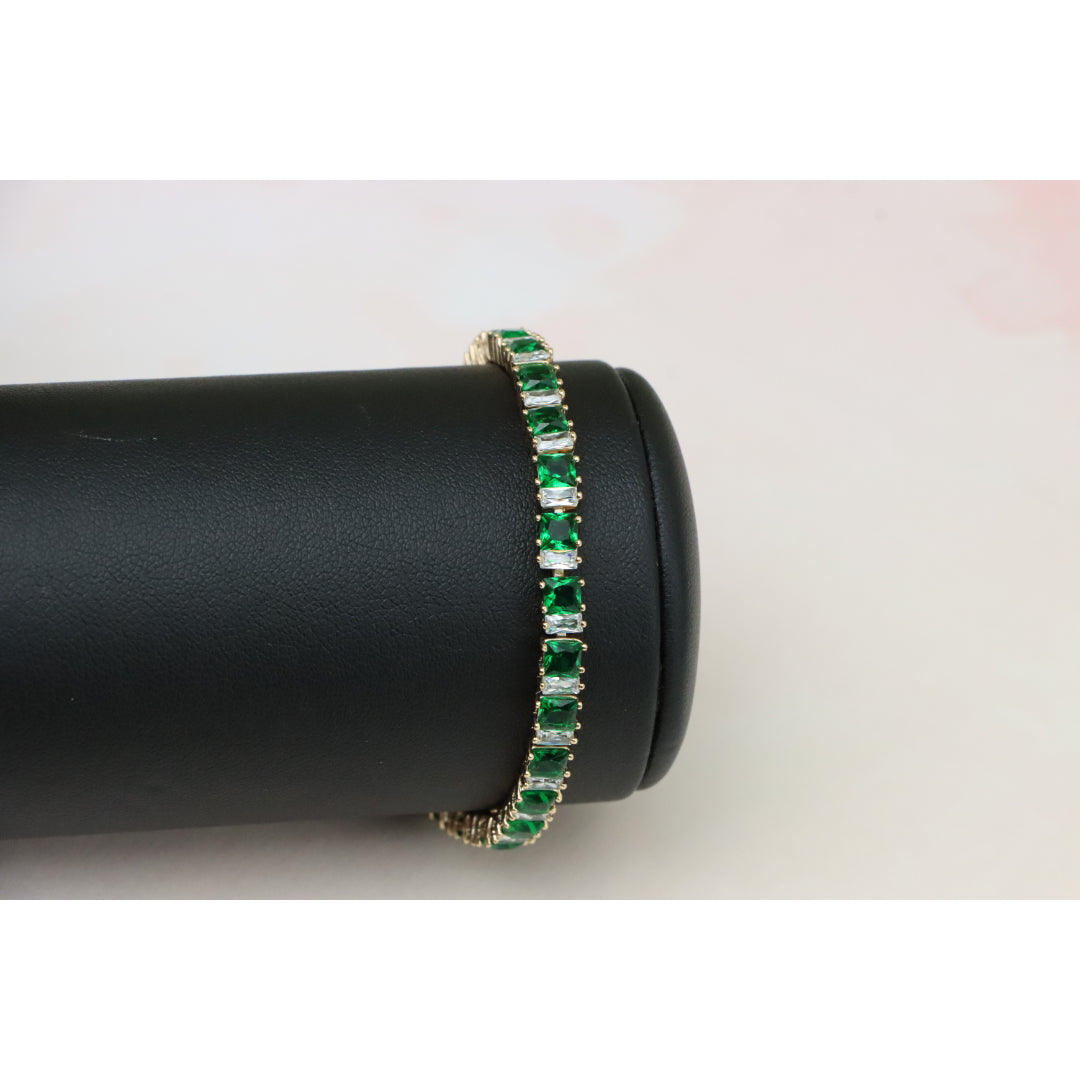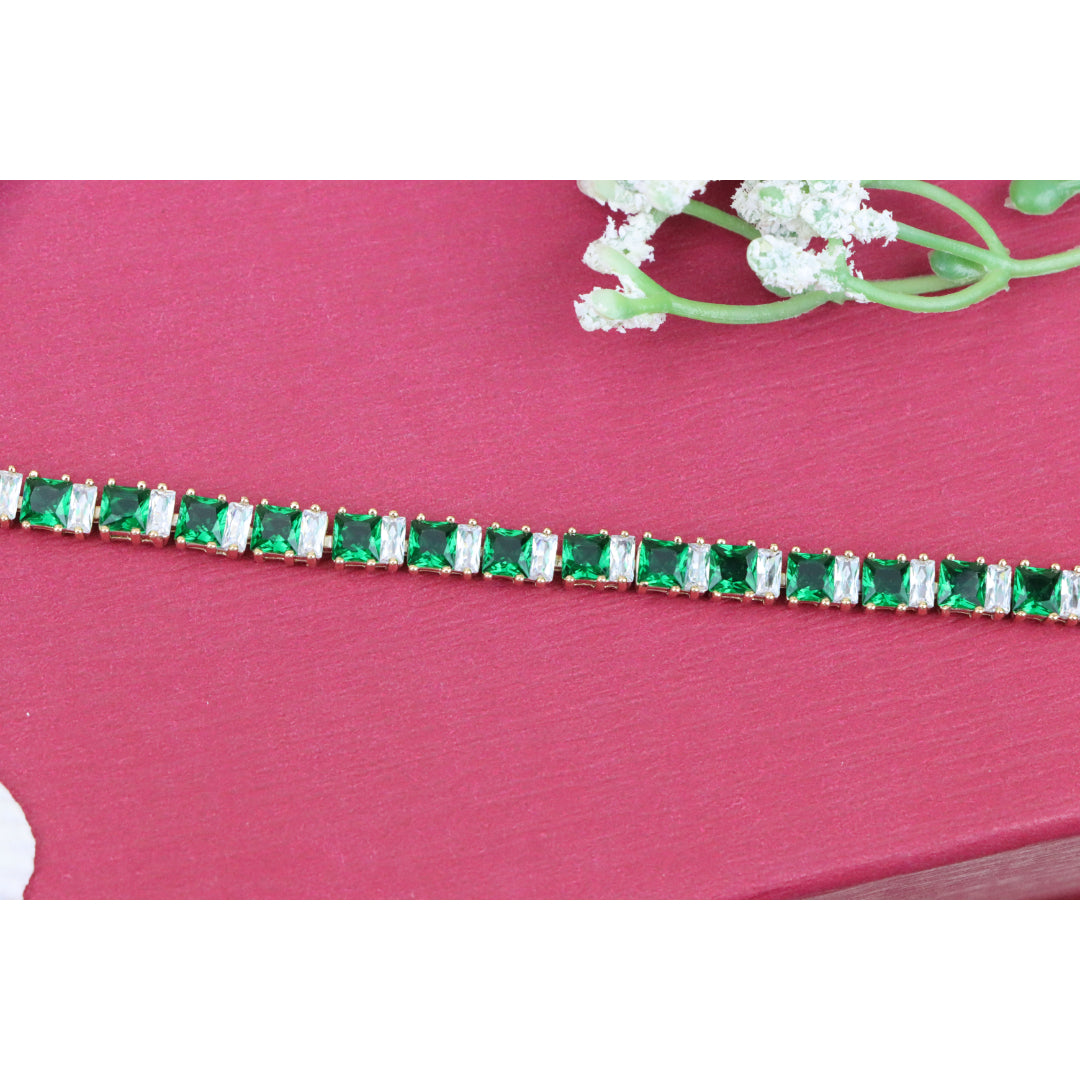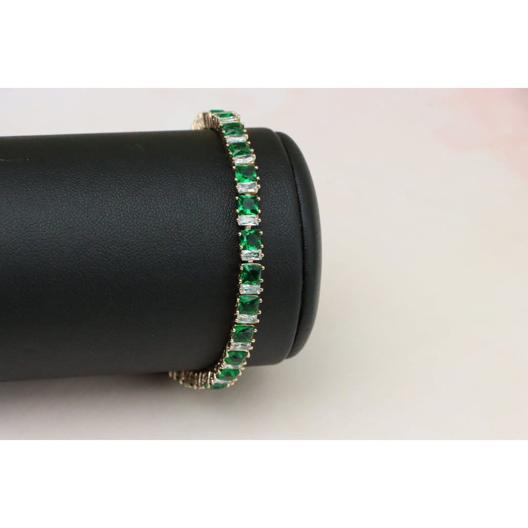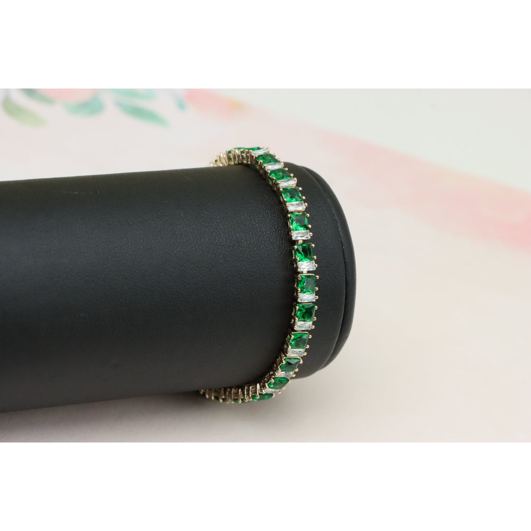 Sophisticated bracelet featuring alternating emerald green and white stones, offering a timeless and luxurious look.