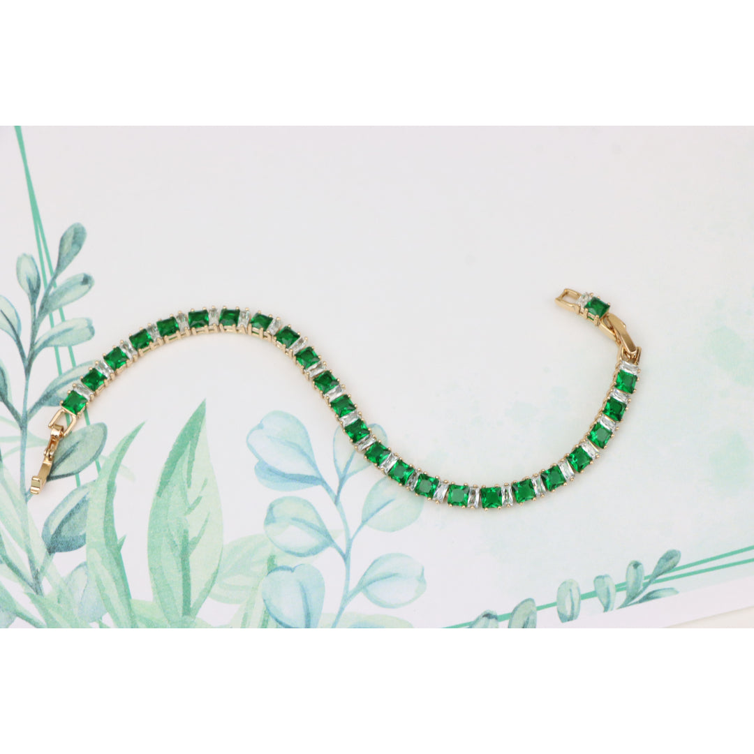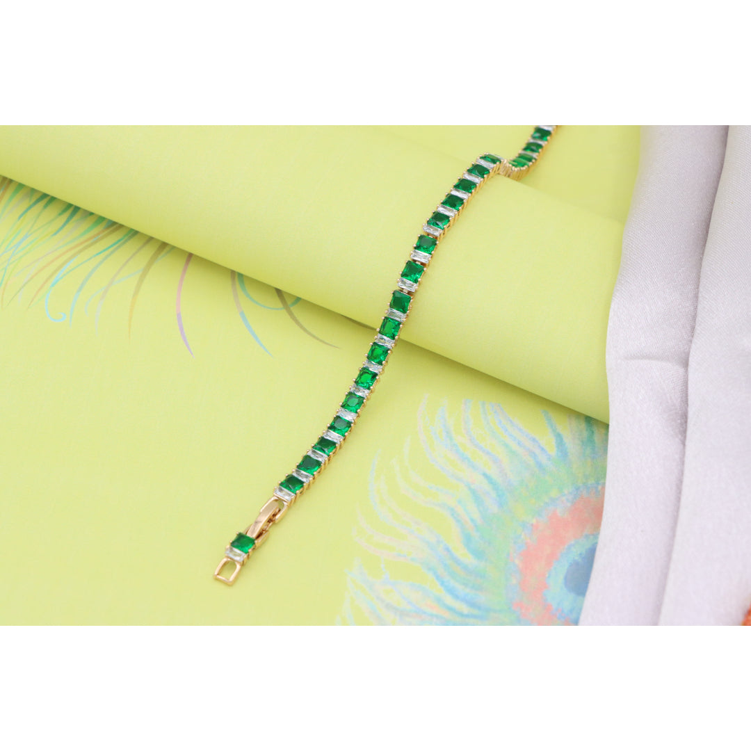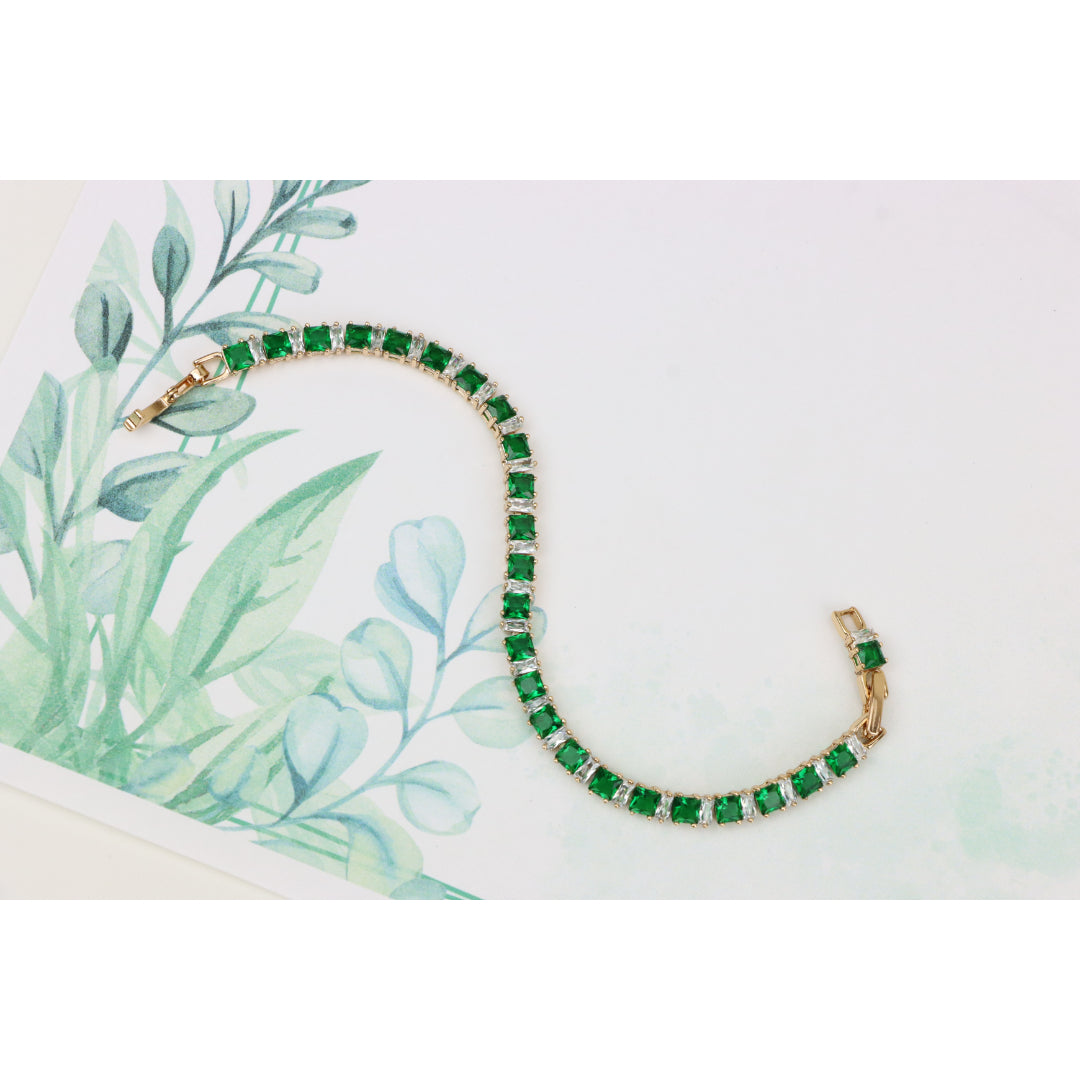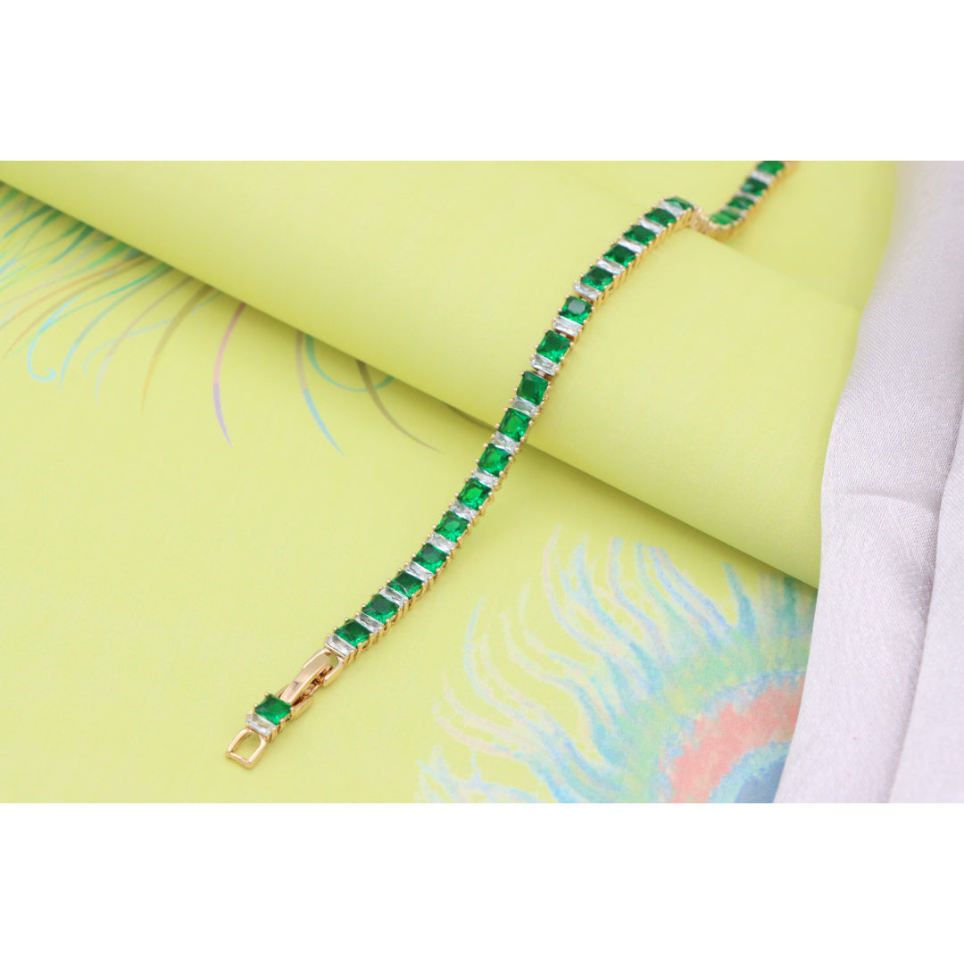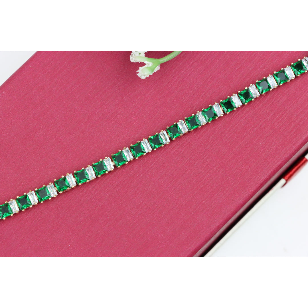 Sophisticated bracelet featuring alternating emerald green and white stones, offering a timeless and luxurious look.