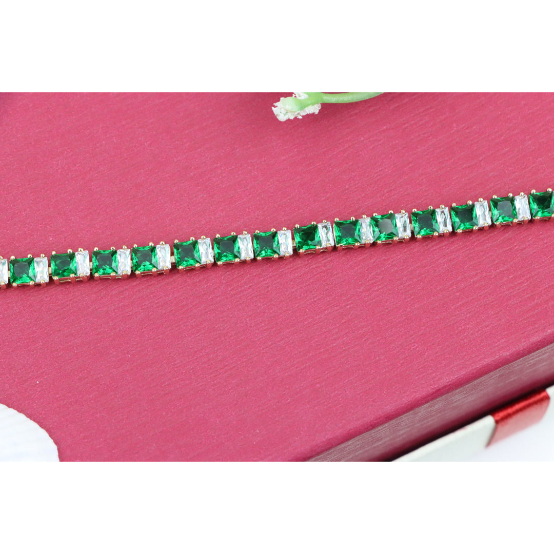 Elegant Emerald Green & White Stone Rose Gold Bracelet, XPBL0763