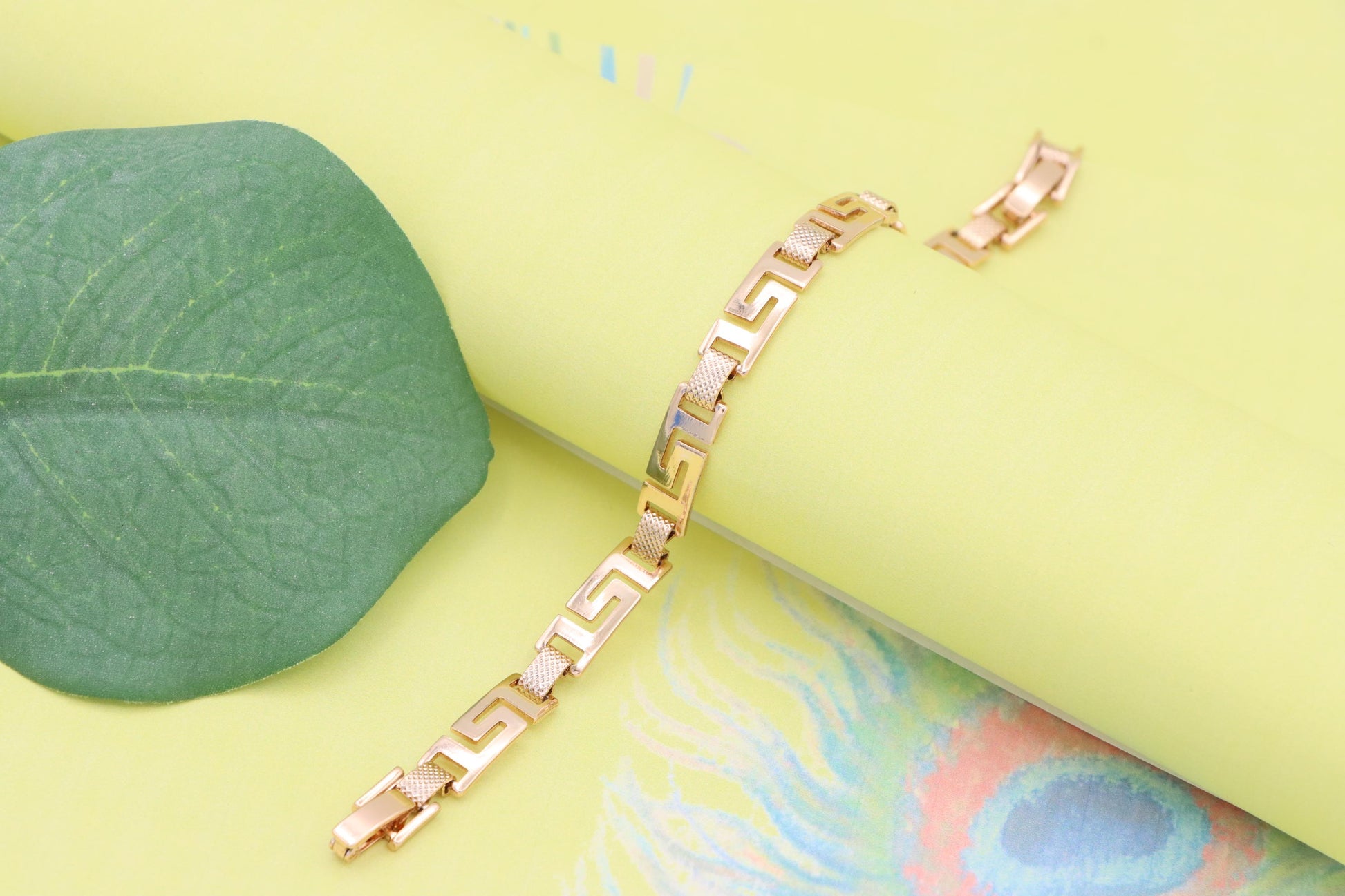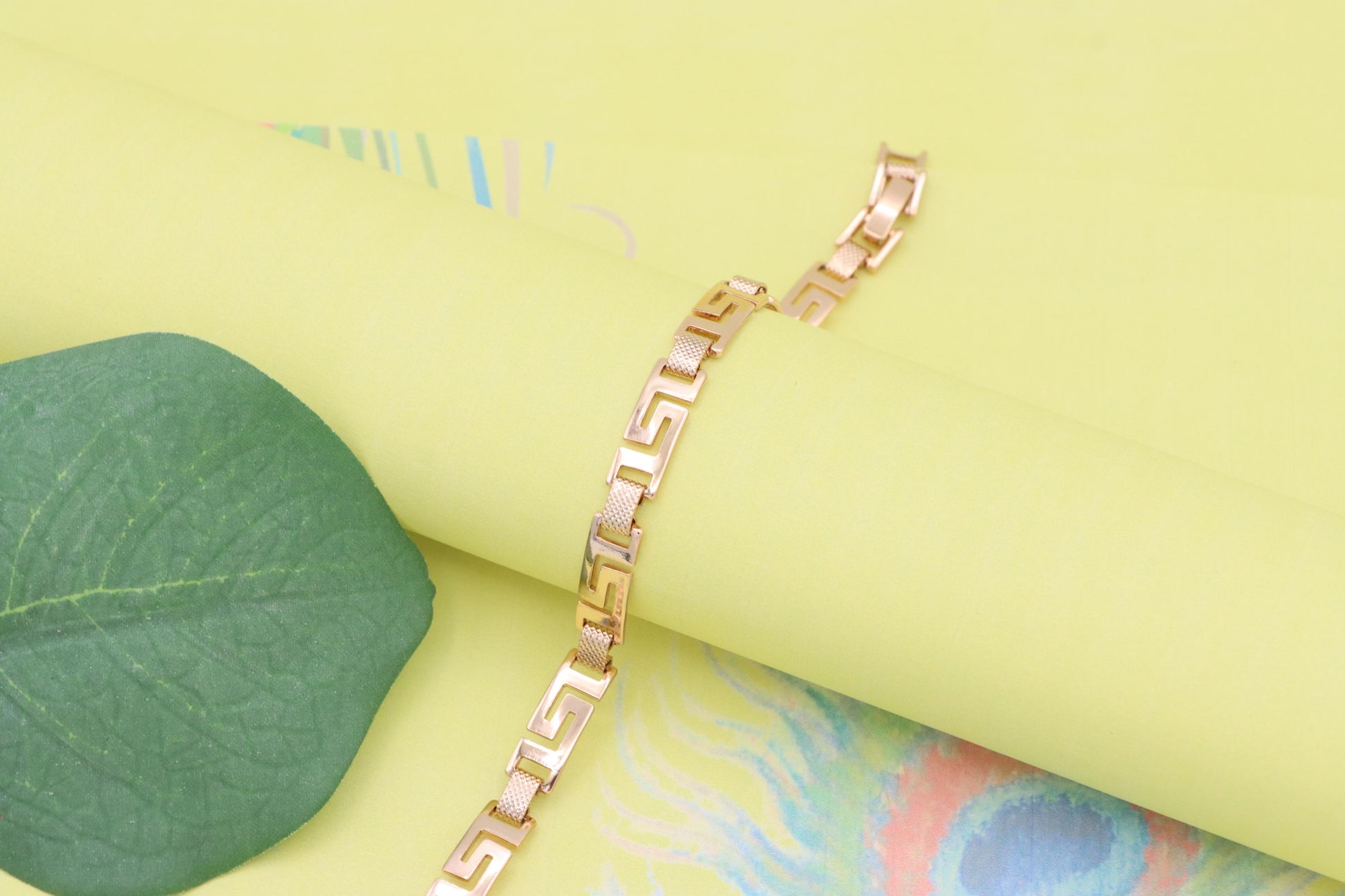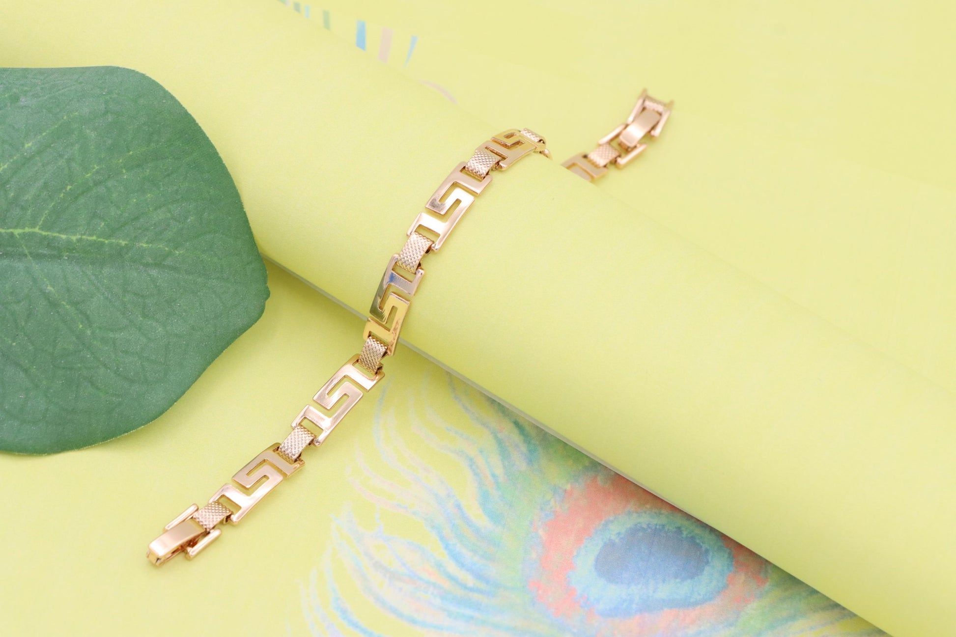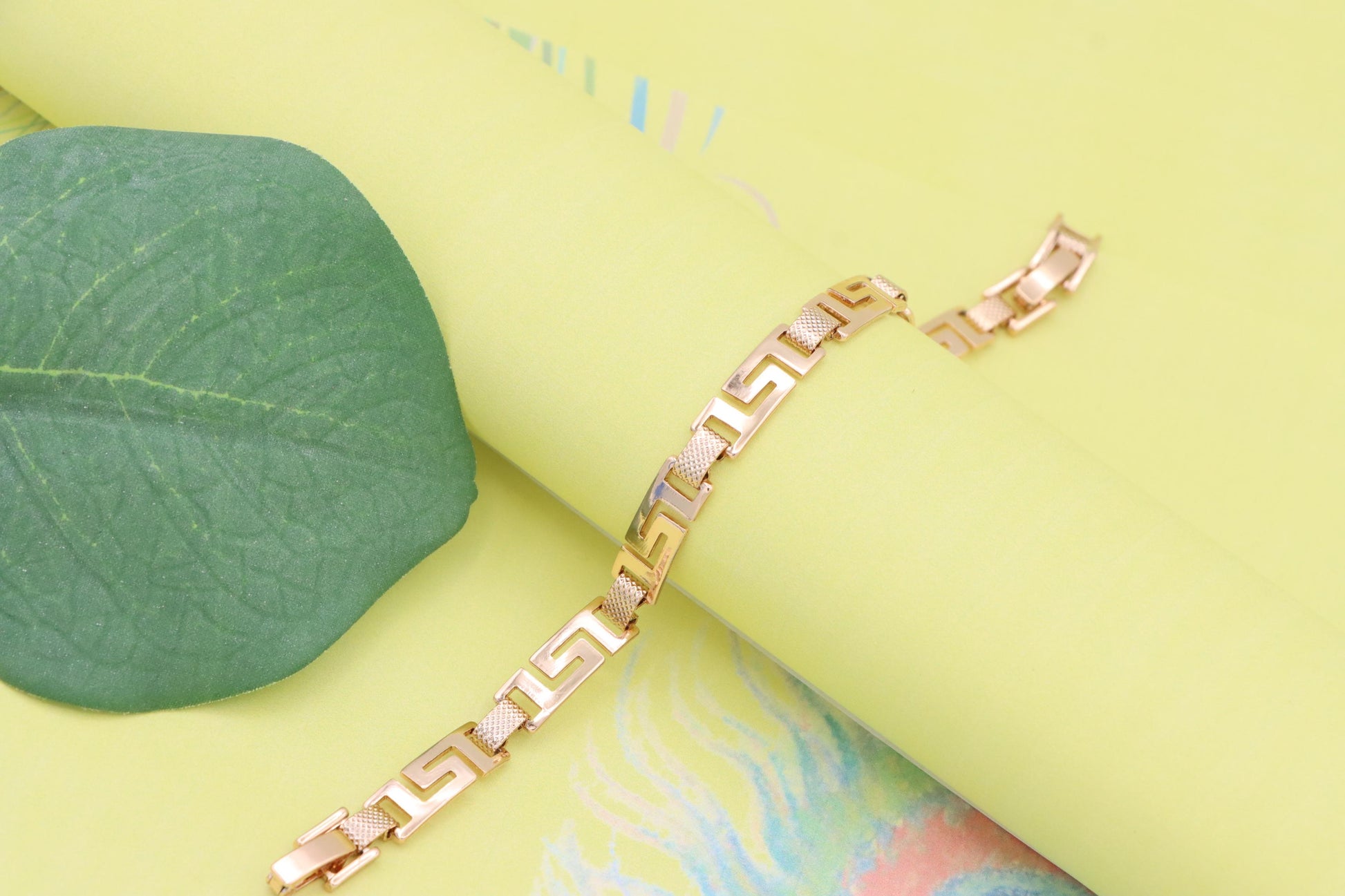 Grace your wrist with this bold yet refined rose gold bracelet, featuring a striking Greek key design that blends classic elegance with modern appeal.