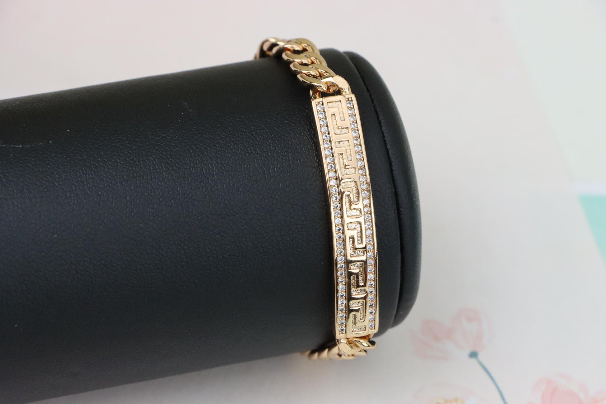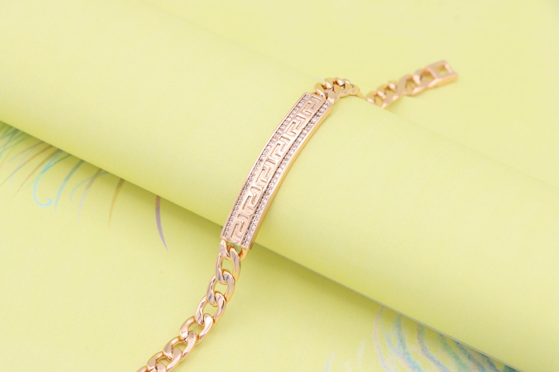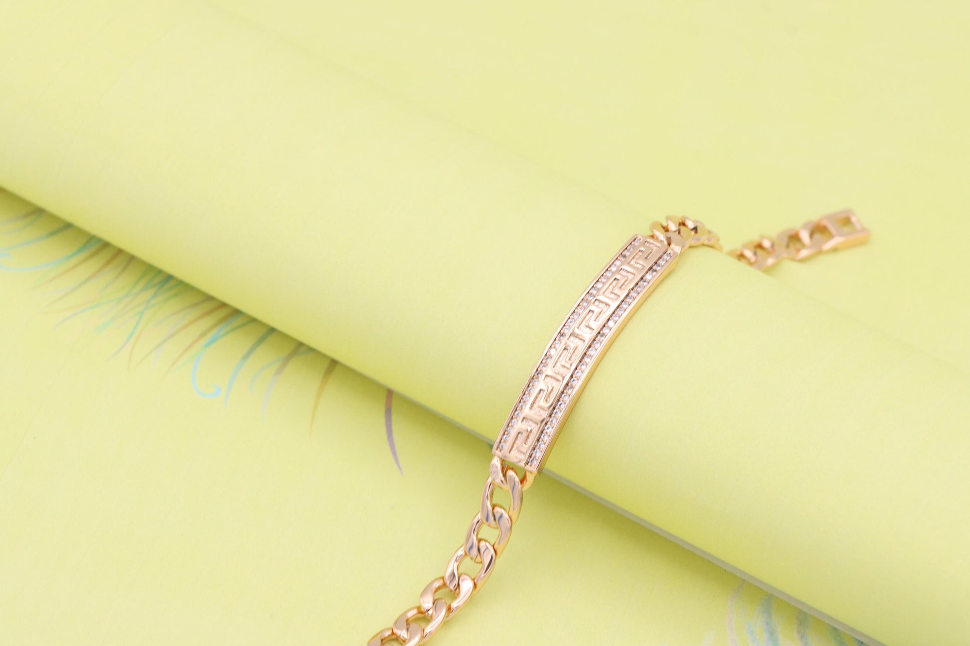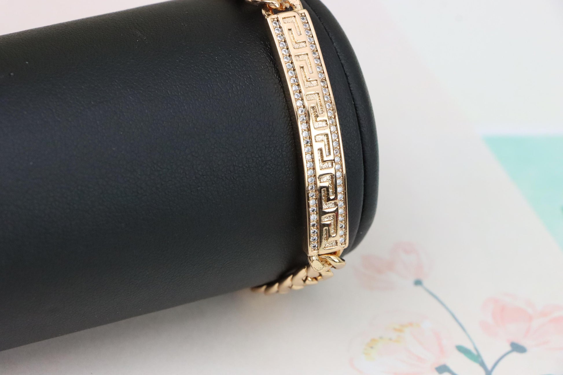 Elegant Greek Key Rose Gold Bracelet with Sparkling CZ Accents, XPBL0964