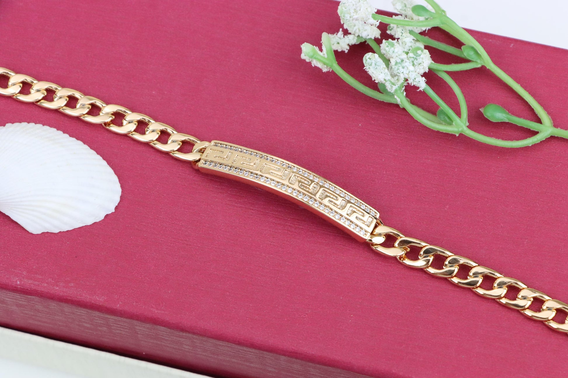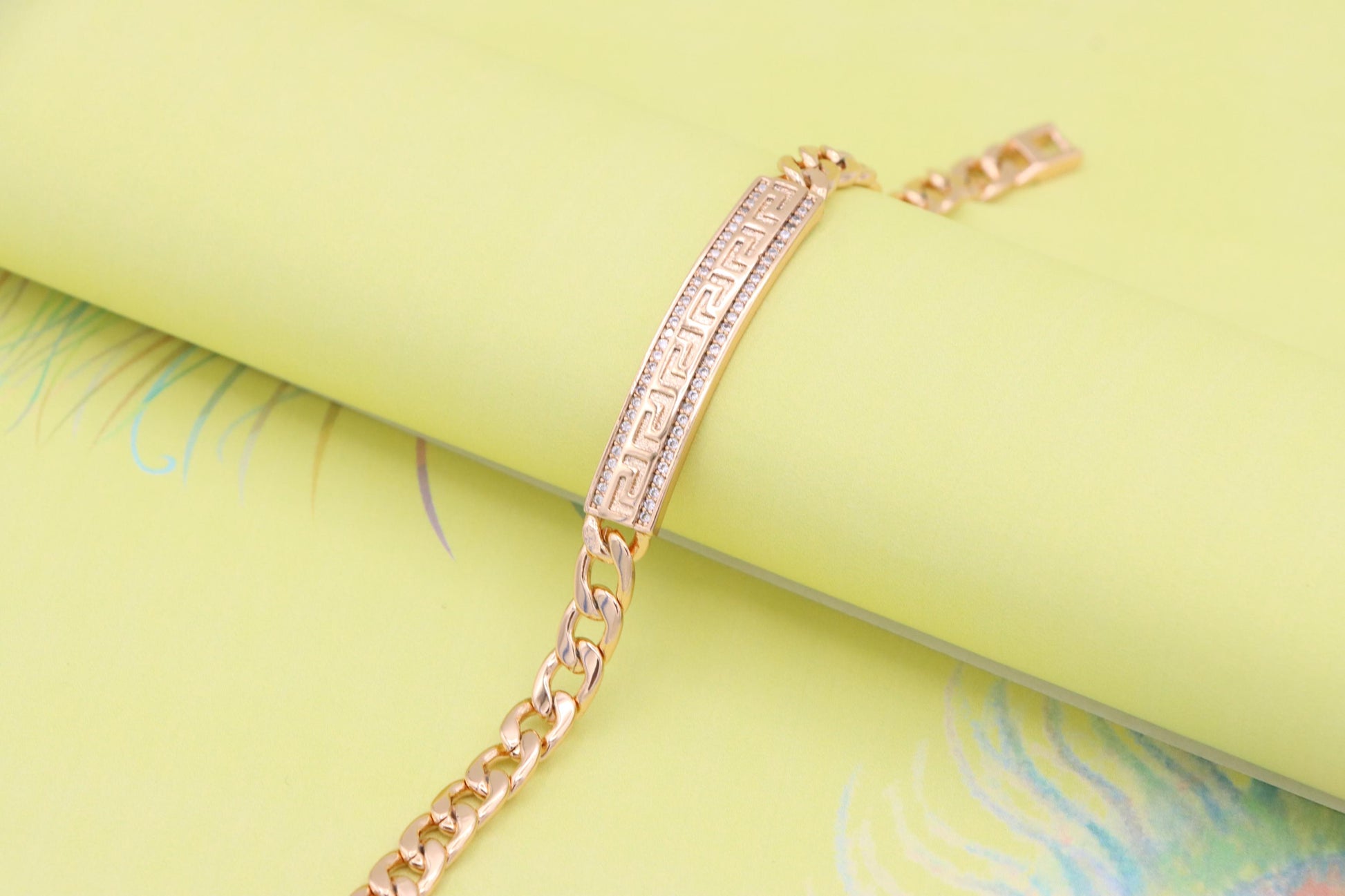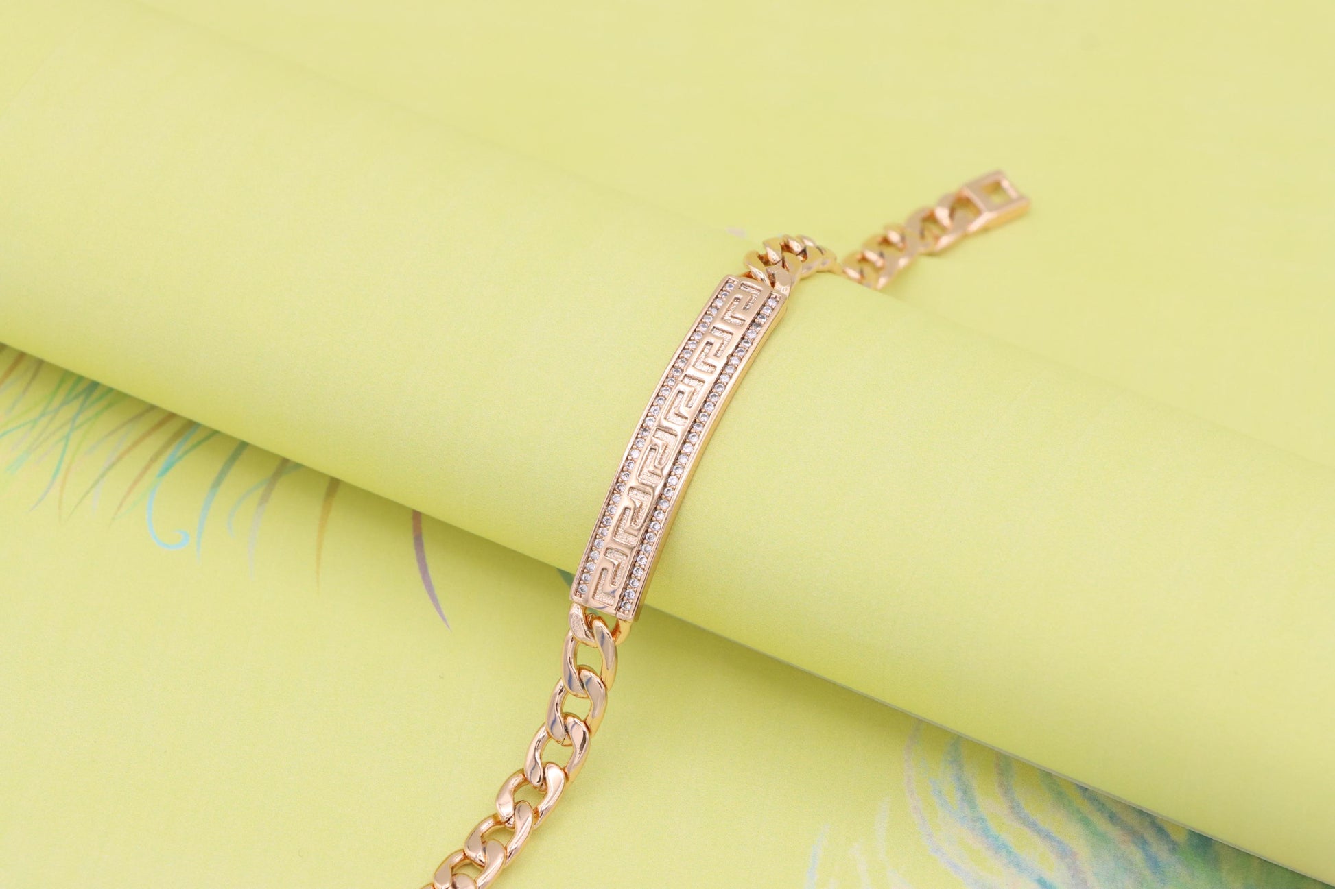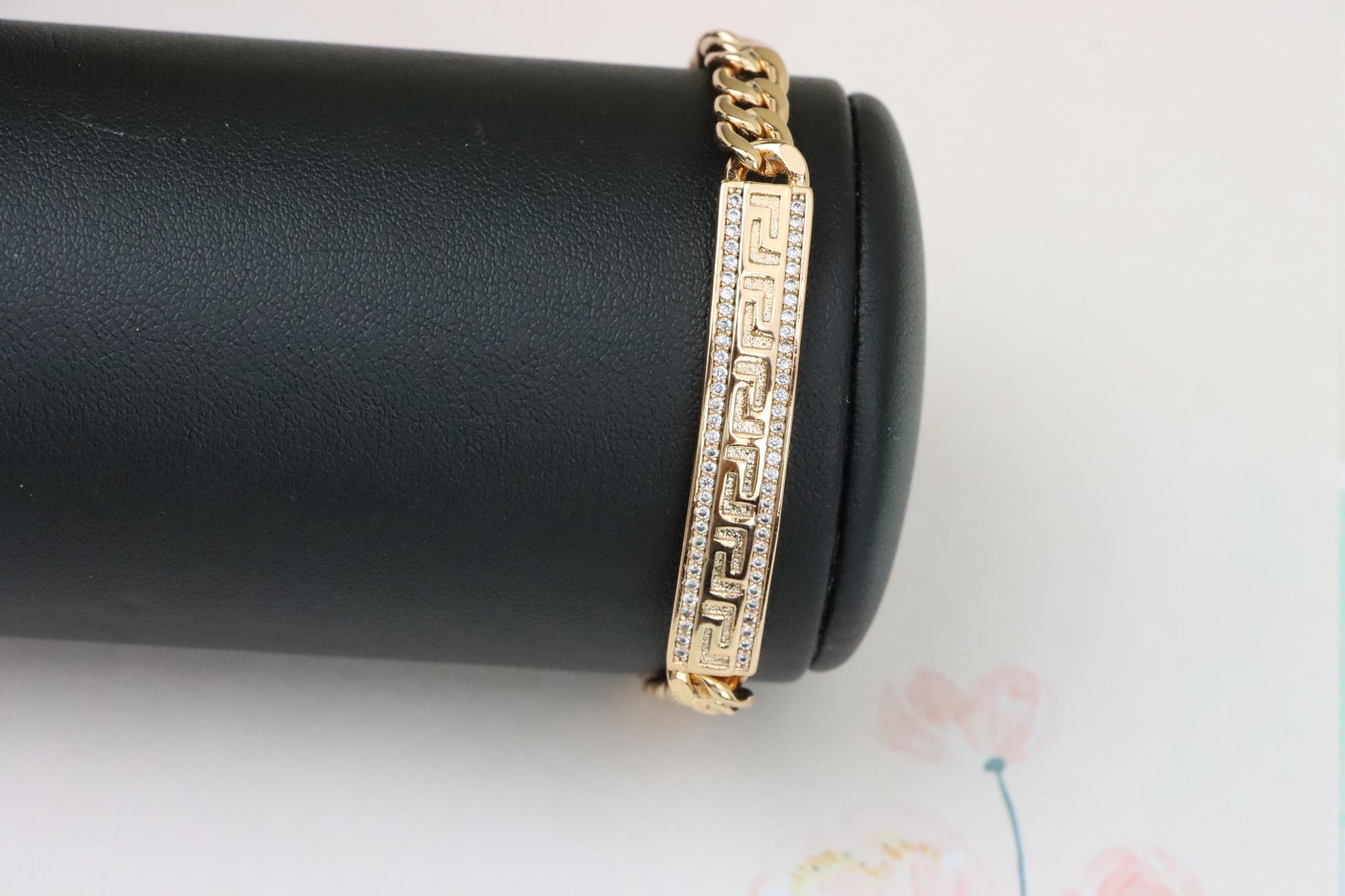 Elegant Greek Key Rose Gold Bracelet with Sparkling CZ Accents, XPBL0964