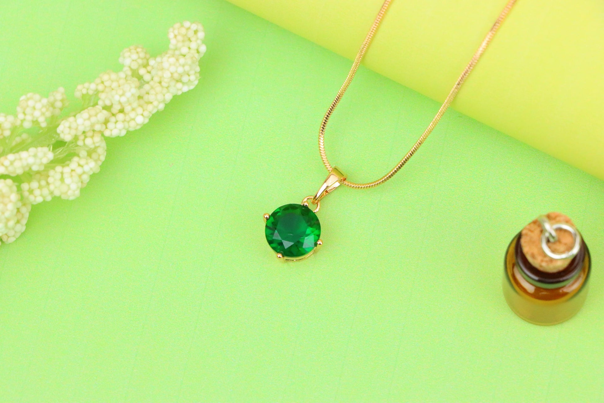 Elegant Green Pendant with Gold Plated Finish for Chic Everyday Style, XPPT1667 (2164-1)