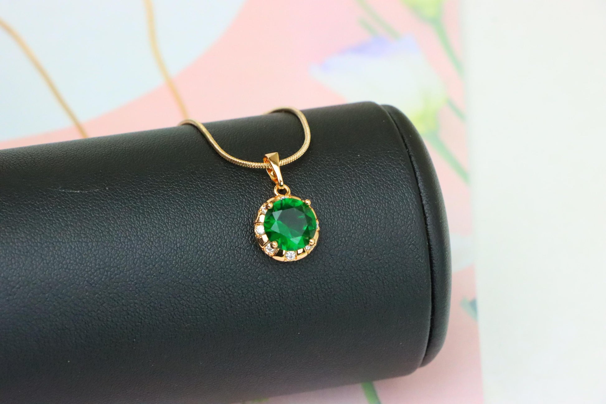Elegant Green Round Pendant with Crystal Border in Gold Finish, XPPT1649 (2163-3)
