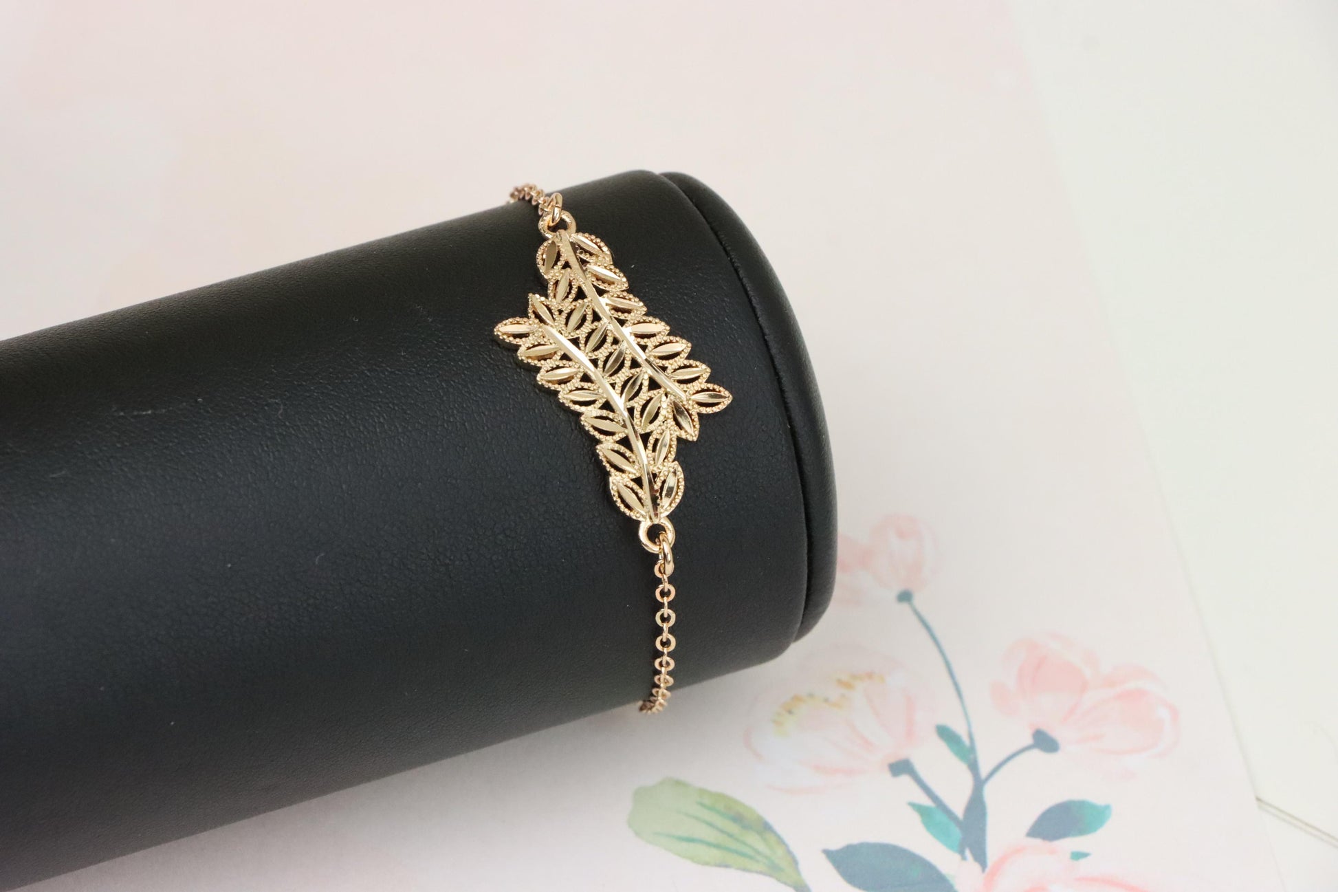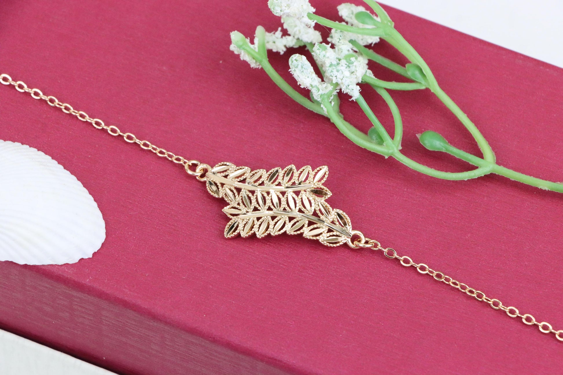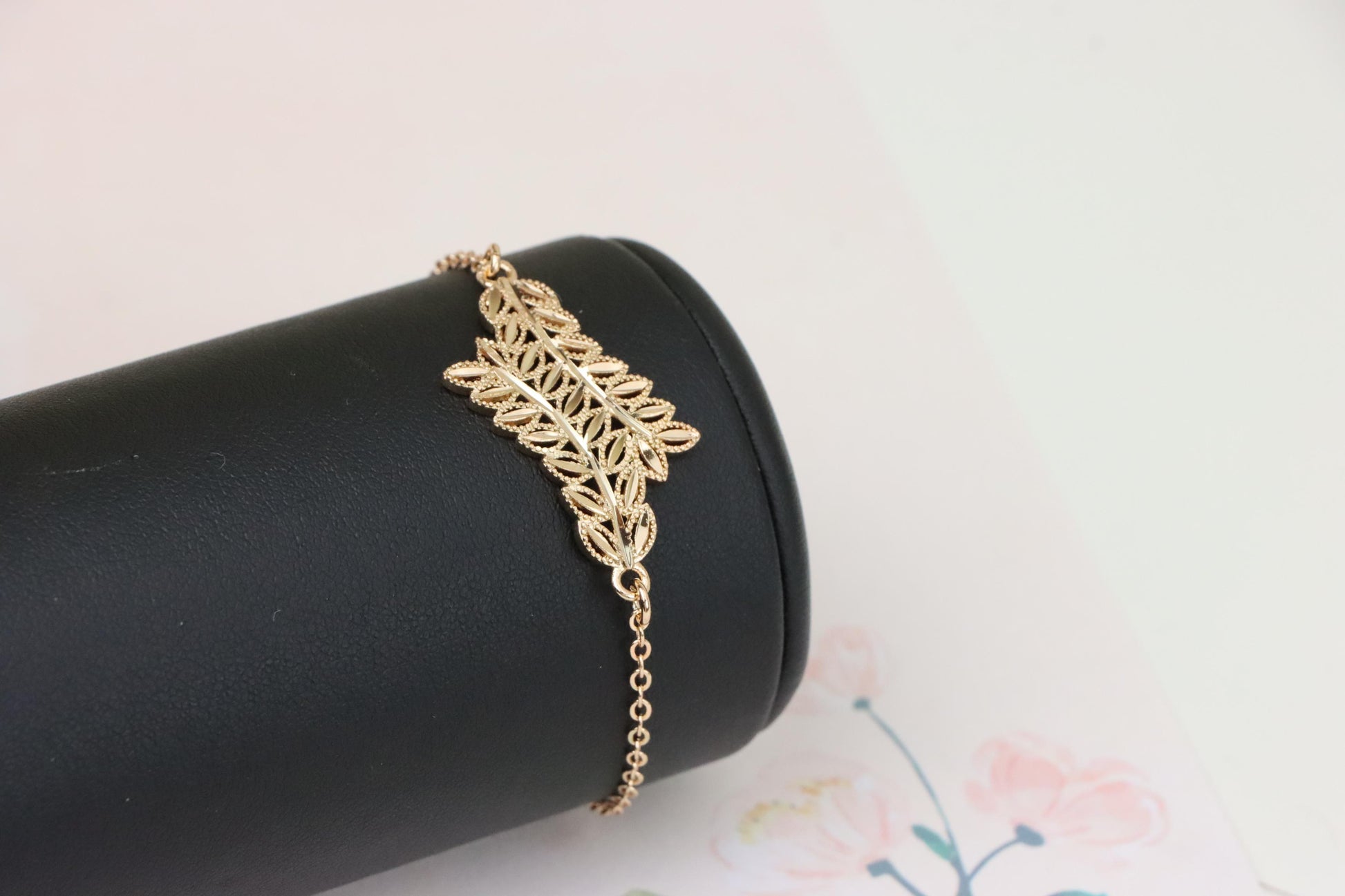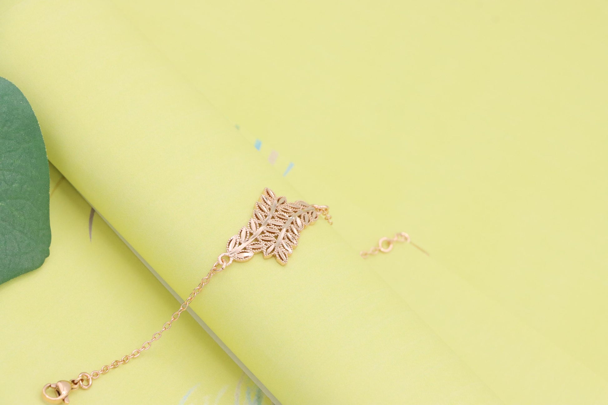 Elegant Leaf Pattern Rose Gold Bracelet for Women, XPBL1082
