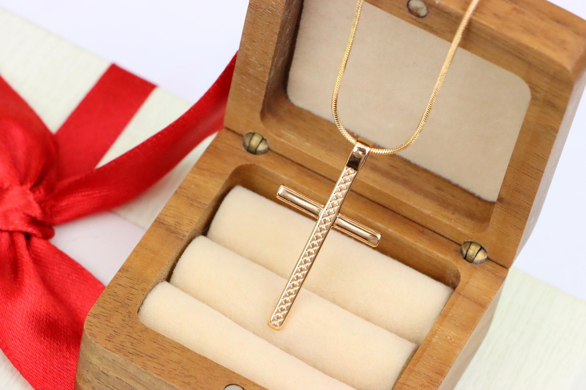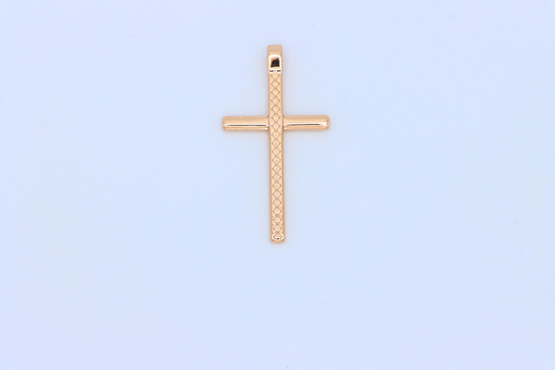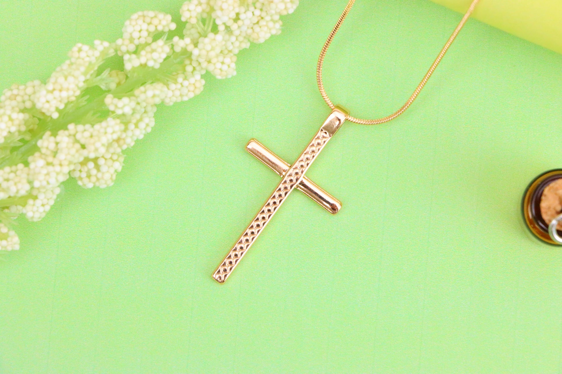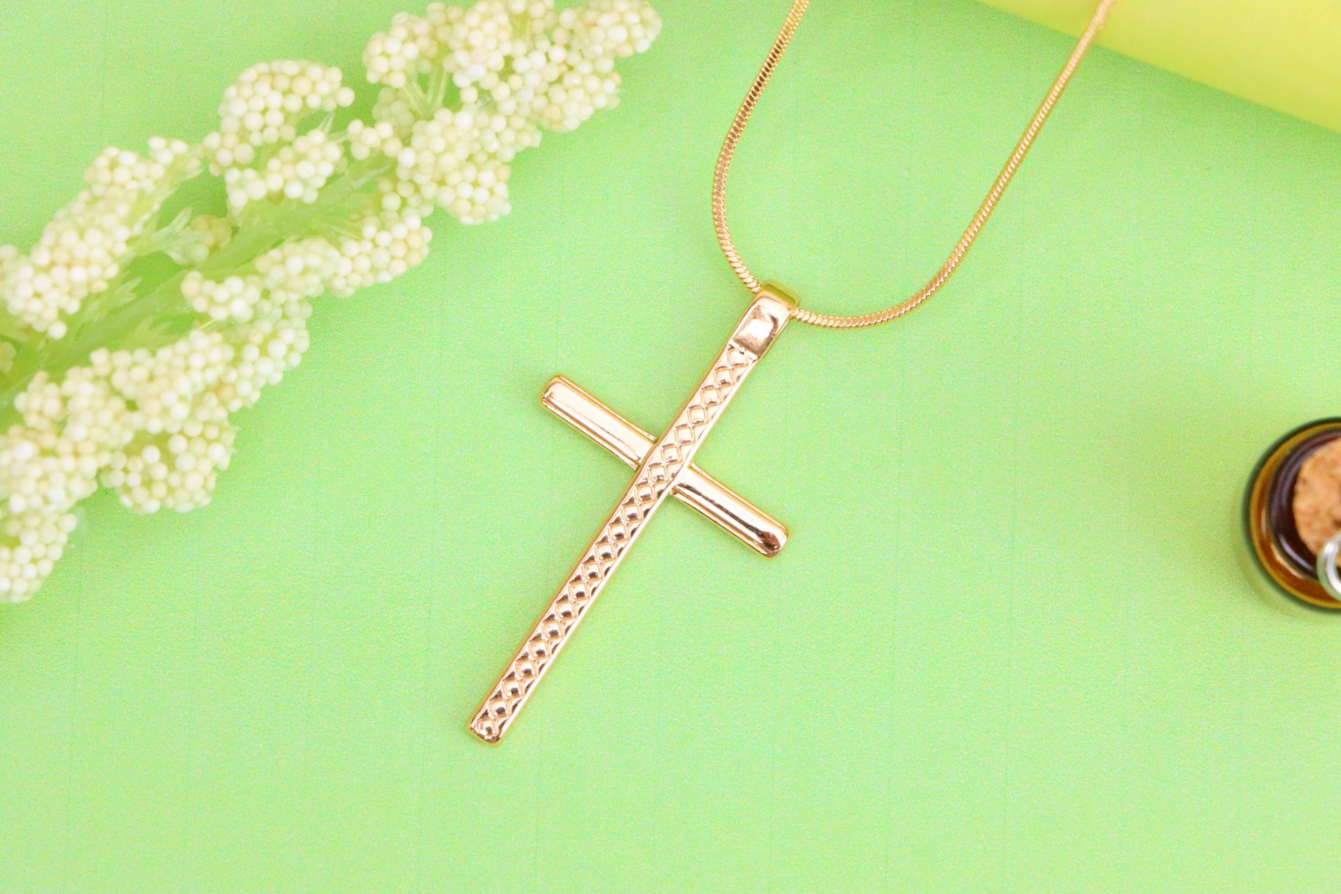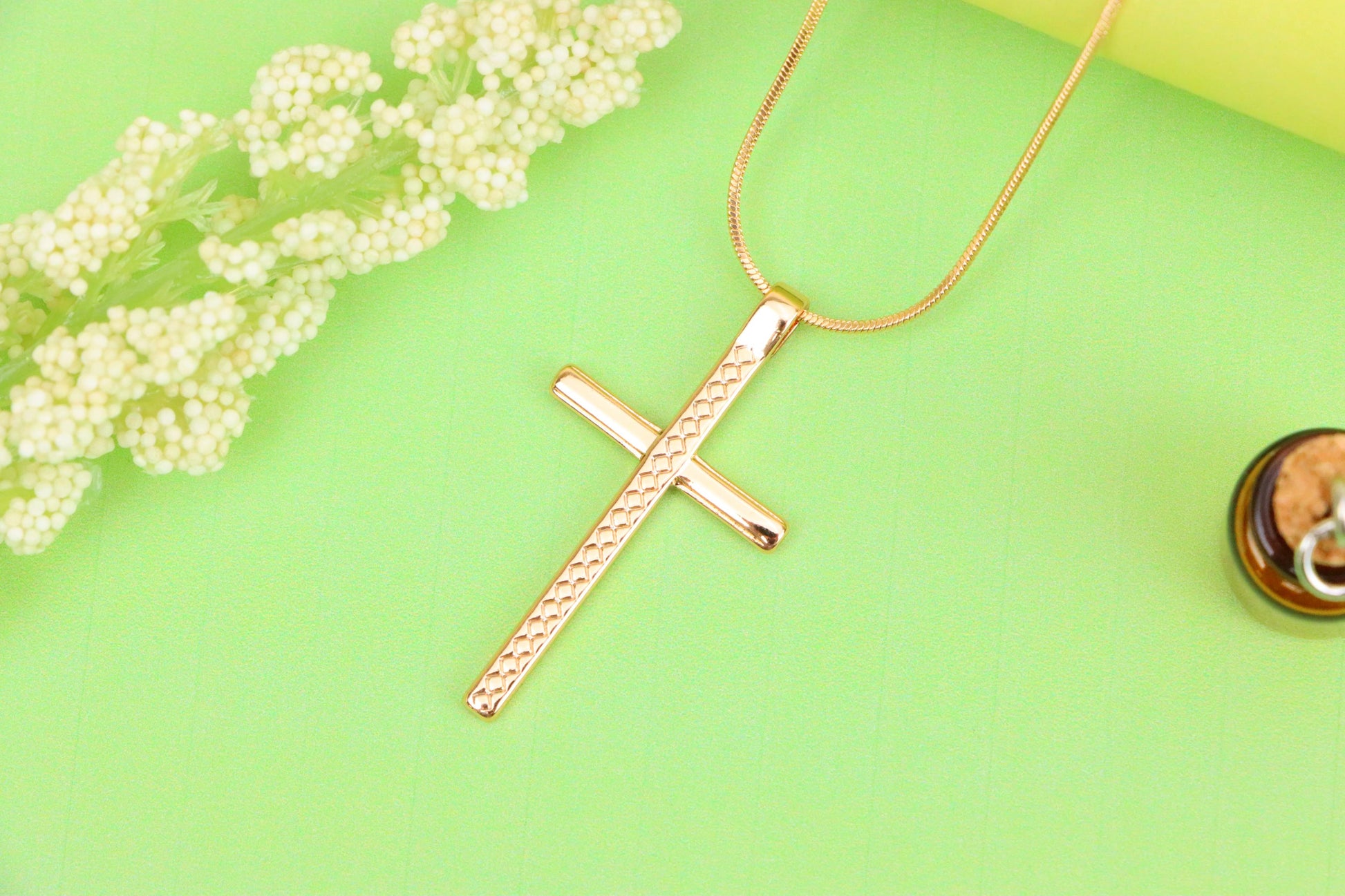 Elegant Long Cross Rose Gold Pendant with Subtle Diamond Pattern Design, XPPT1601