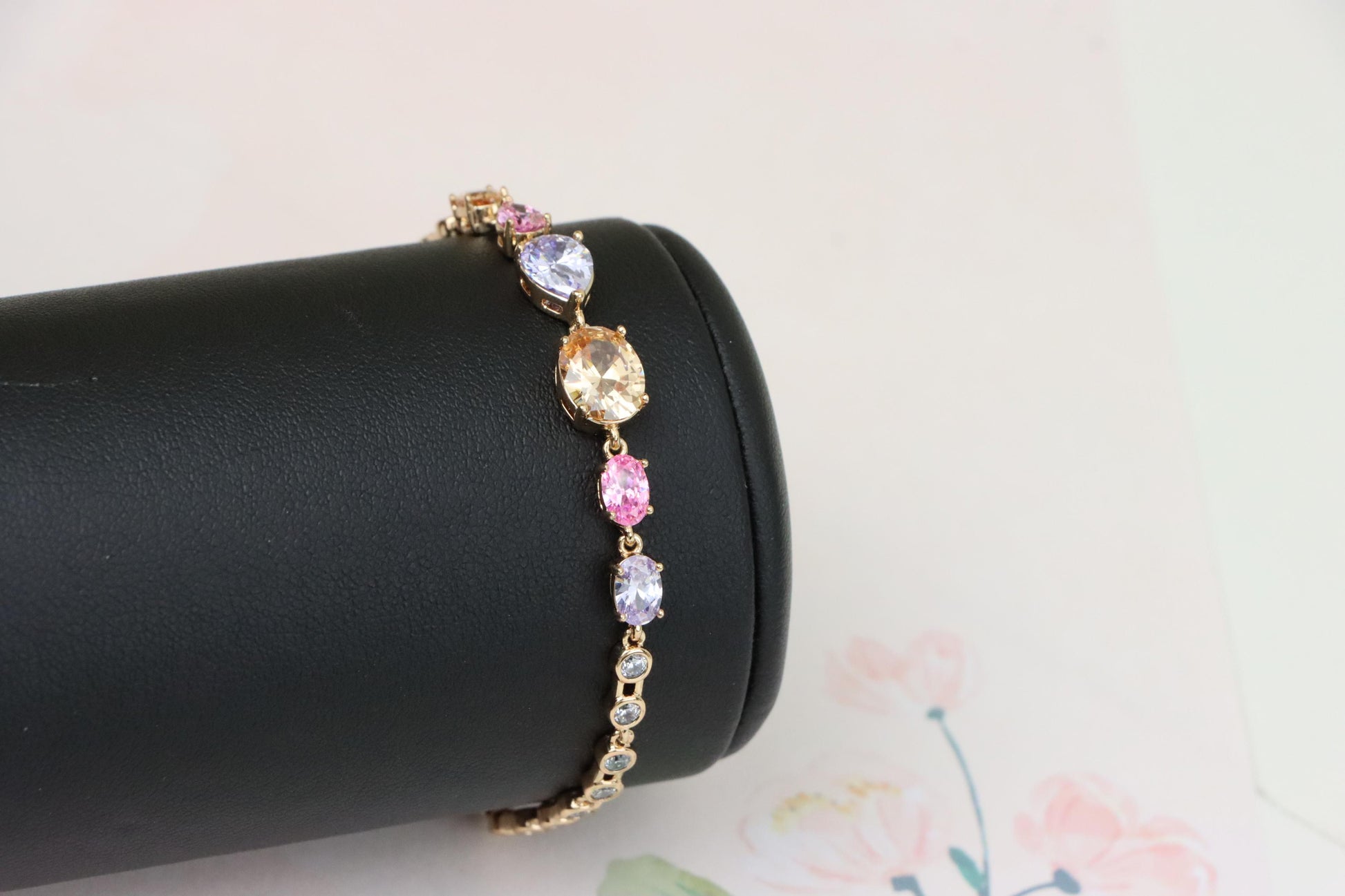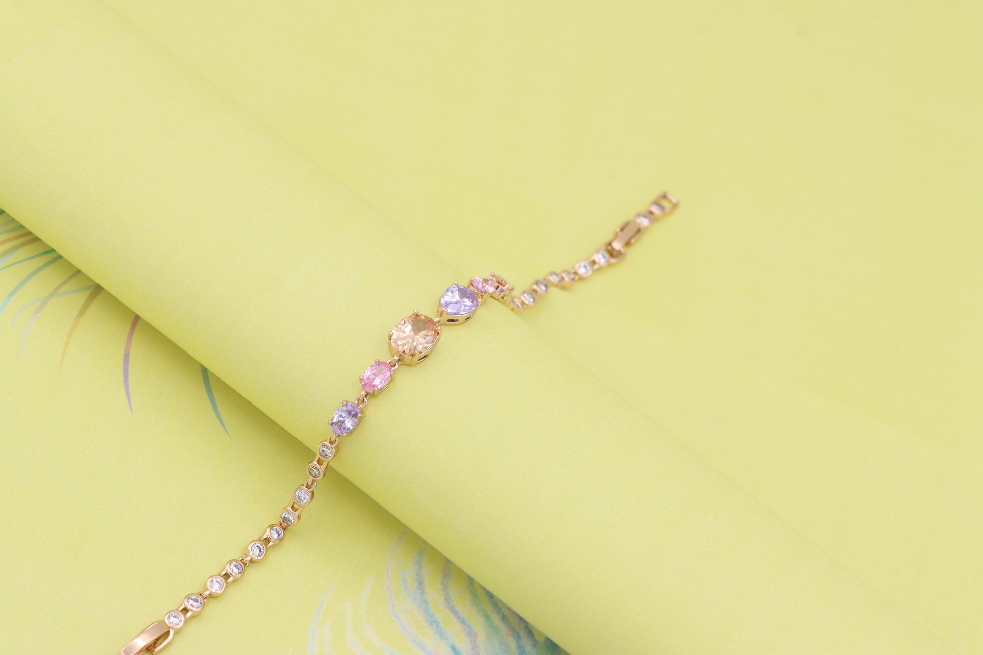 Dazzling rose gold bracelet with colorful crystal stones, ideal for daily wear or special occasions.