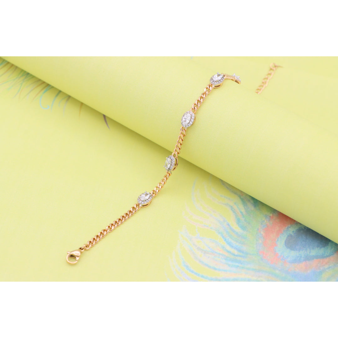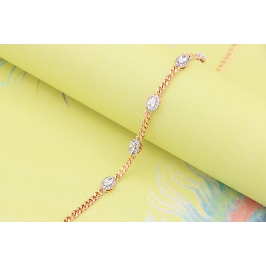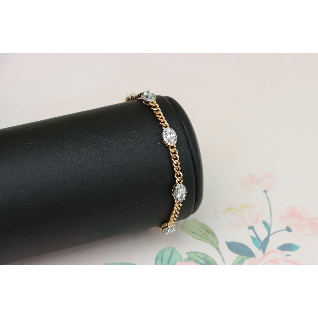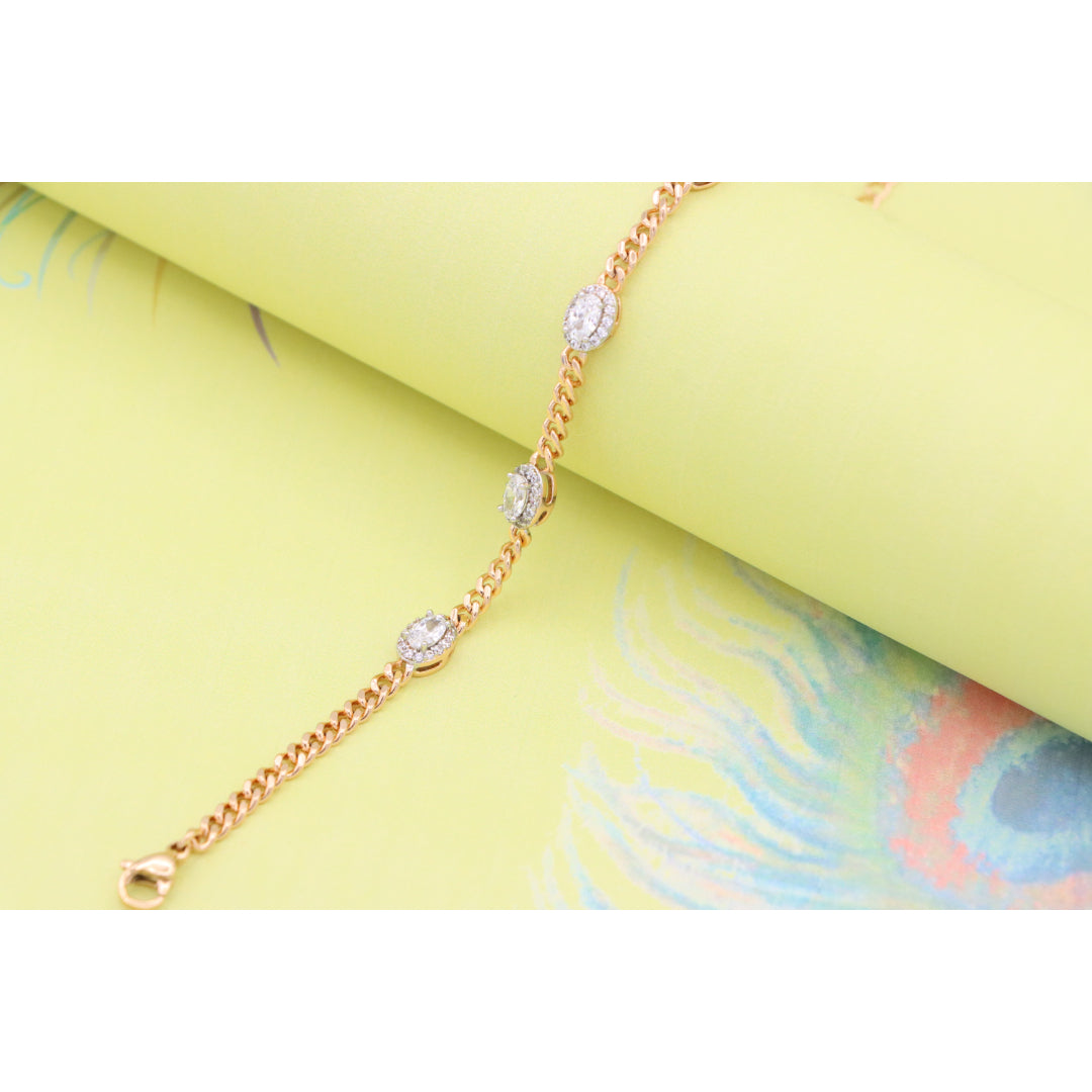 Add timeless elegance to your collection with this stunning rose gold bracelet. Crafted from gold plated high-quality brass, the design features brilliant oval-cut stones set on a sleek chain.