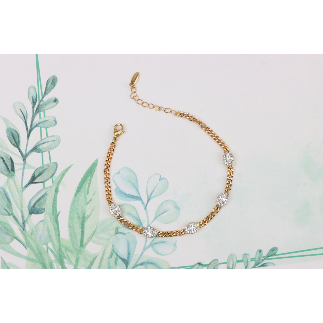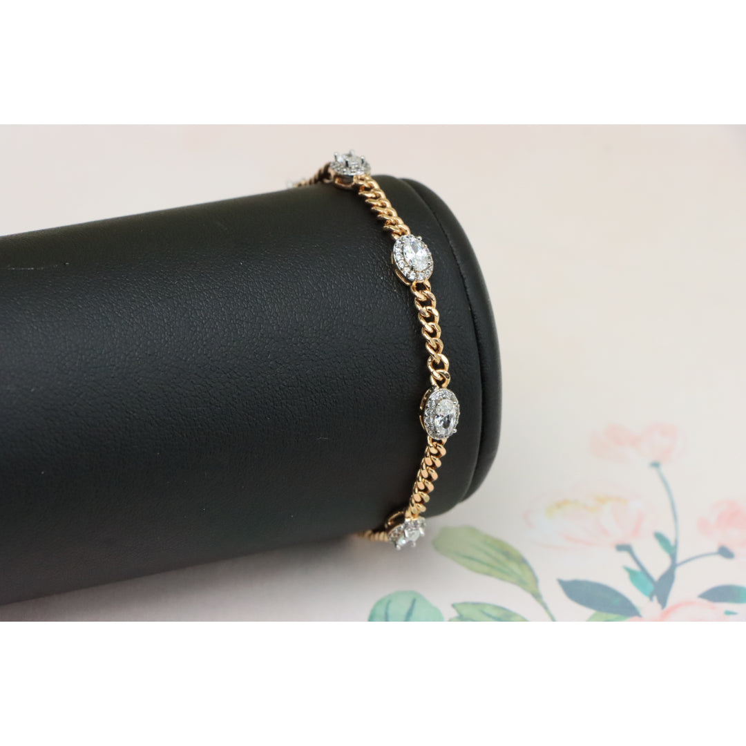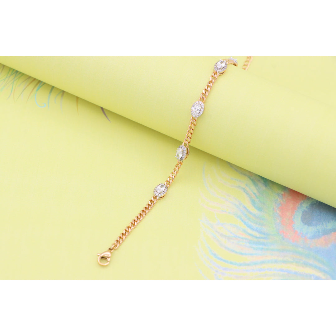 Add timeless elegance to your collection with this stunning rose gold bracelet. Crafted from gold plated high-quality brass, the design features brilliant oval-cut stones set on a sleek chain.