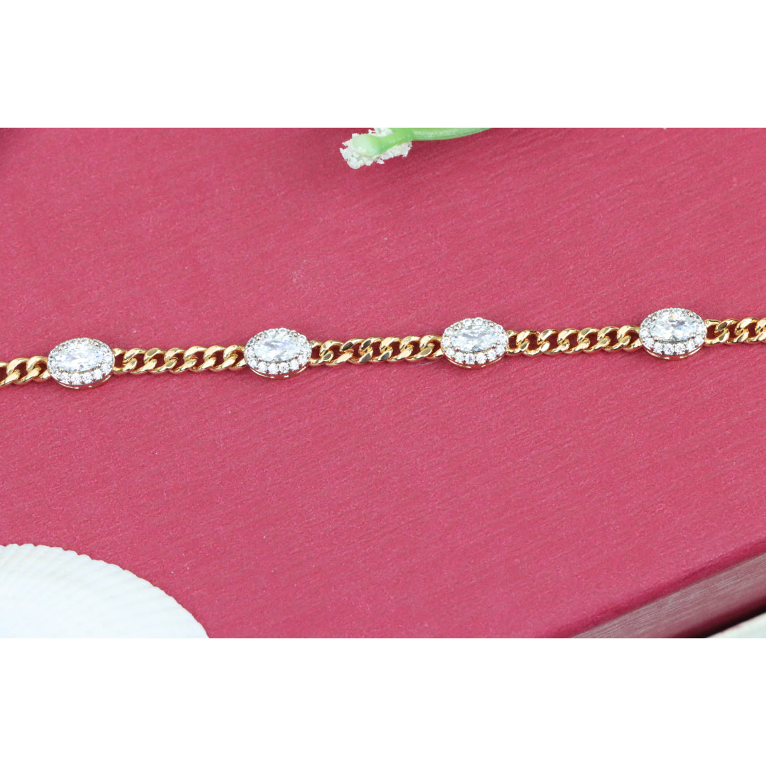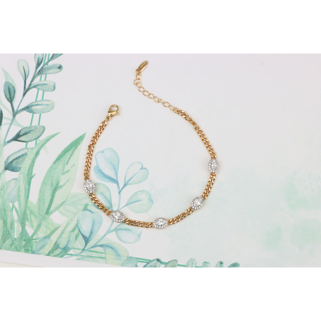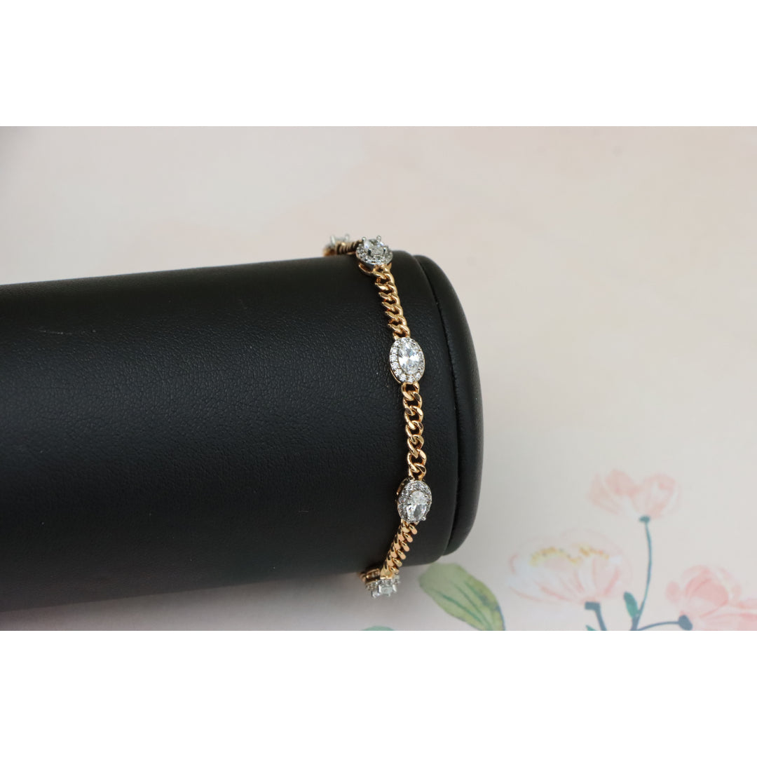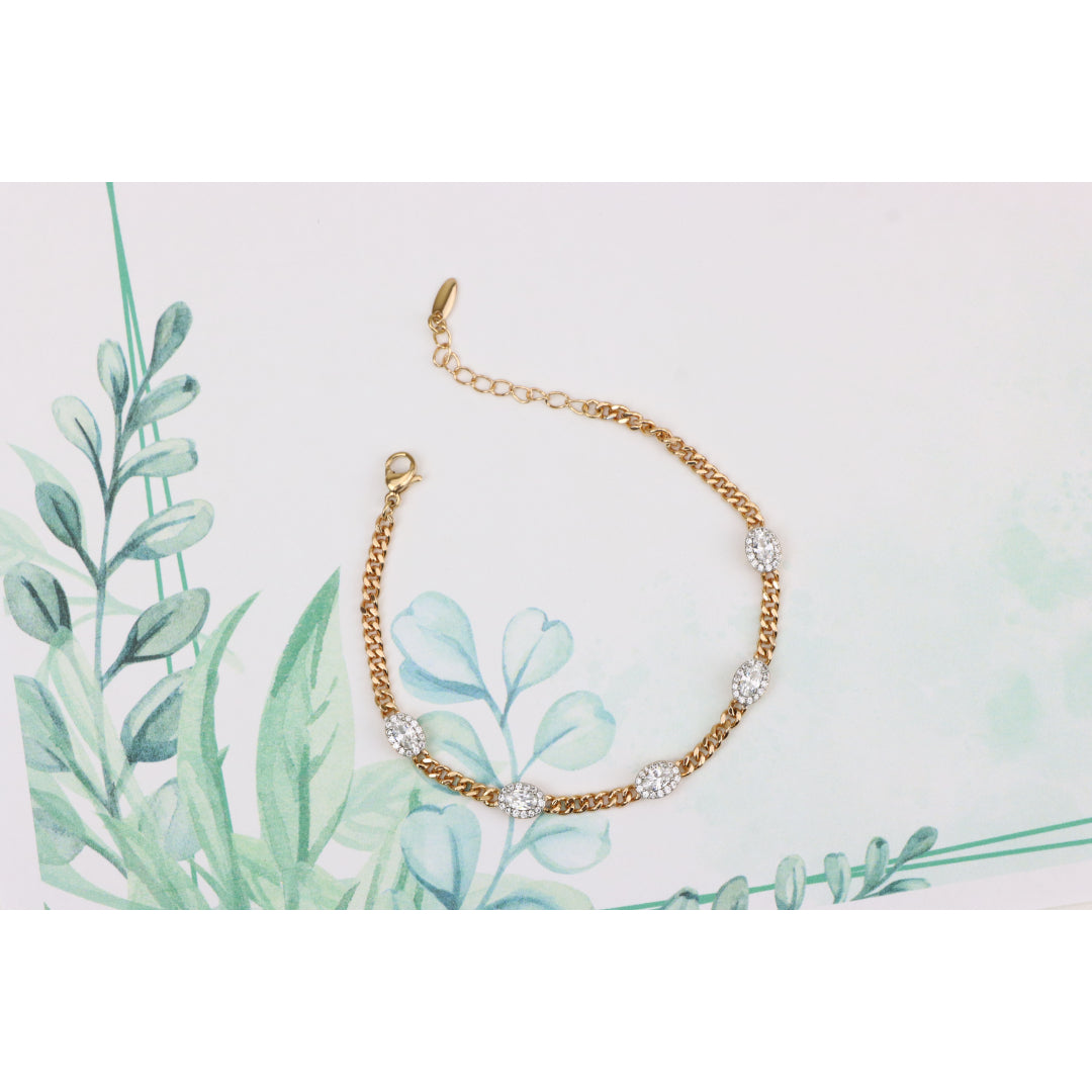 Add timeless elegance to your collection with this stunning rose gold bracelet. Crafted from gold plated high-quality brass, the design features brilliant oval-cut stones set on a sleek chain.