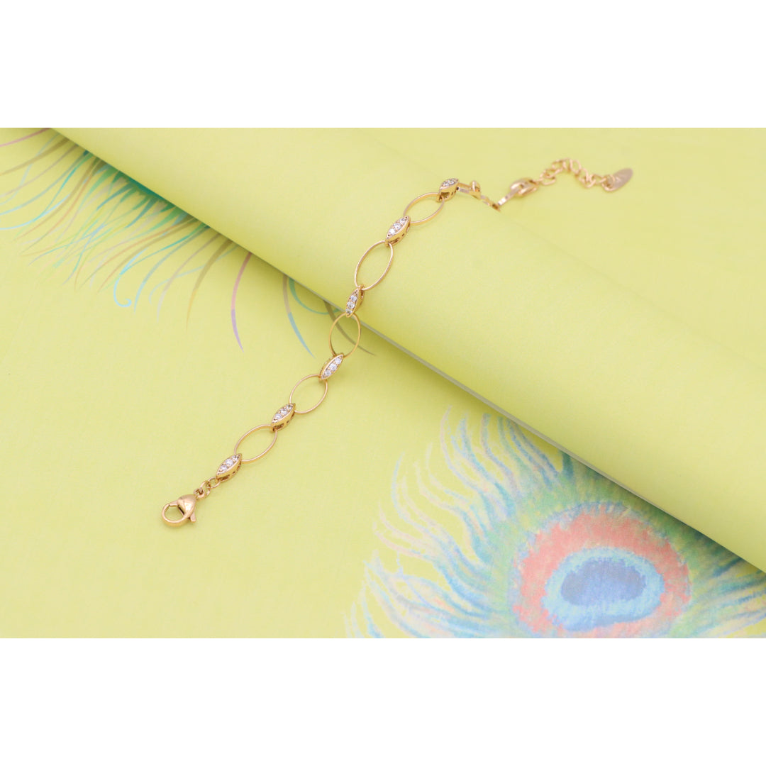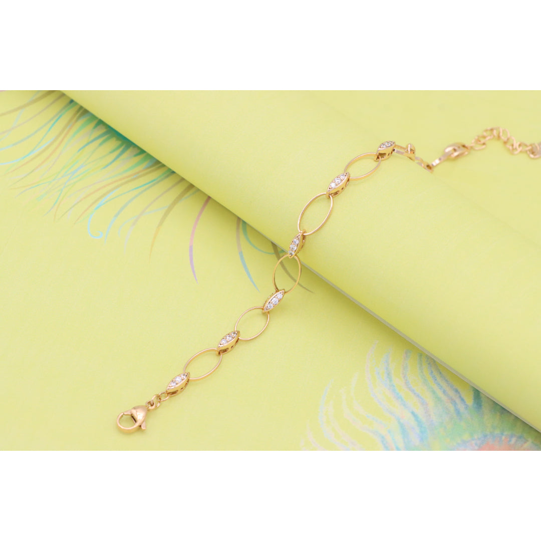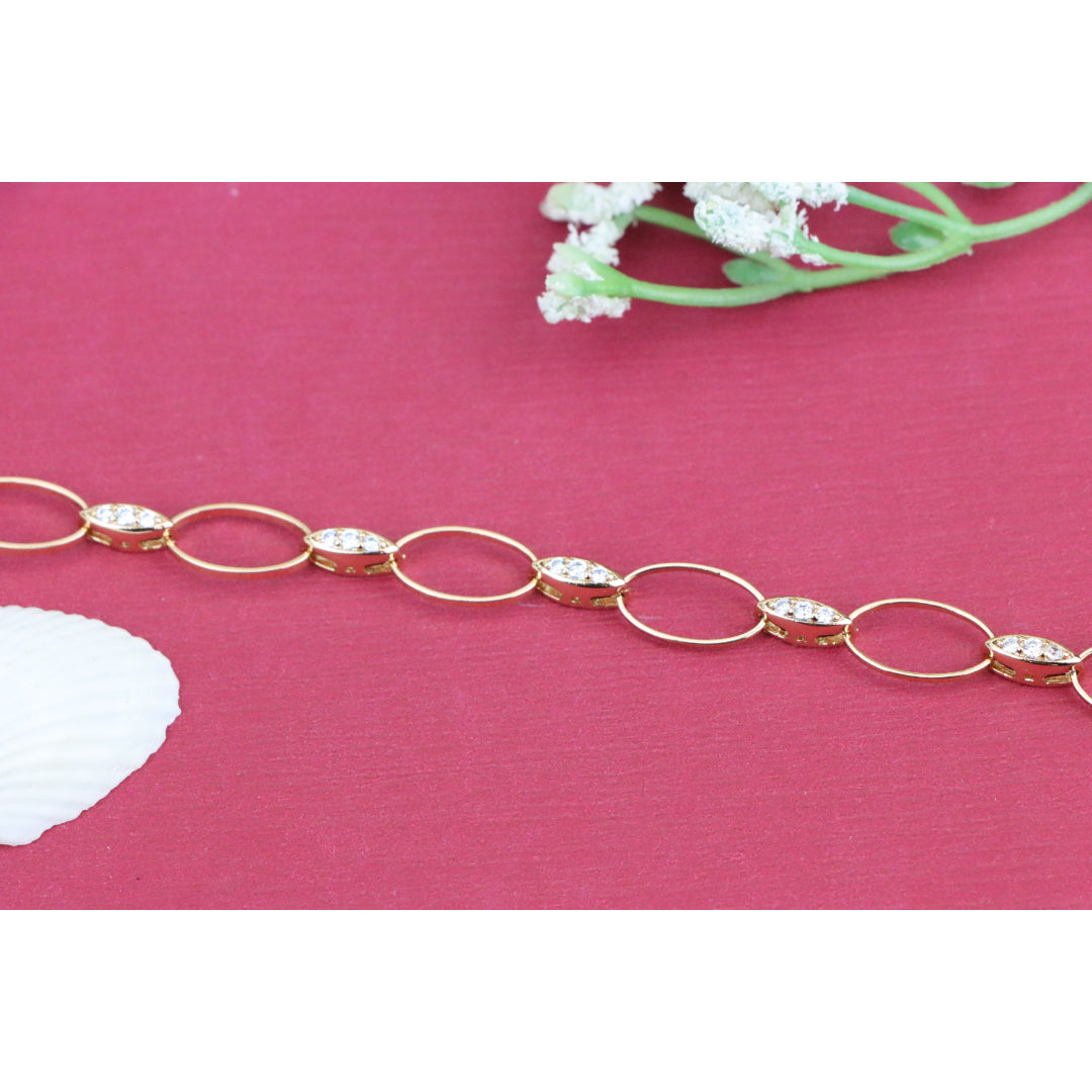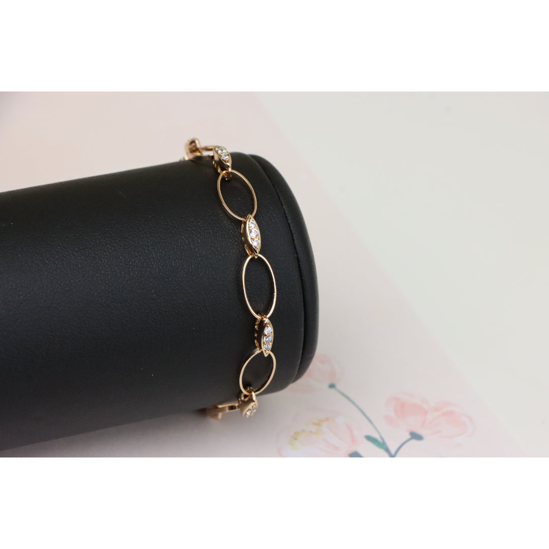 A delicate and stylish bracelet that complements any outfit with its elegant oval links and shimmering stones.