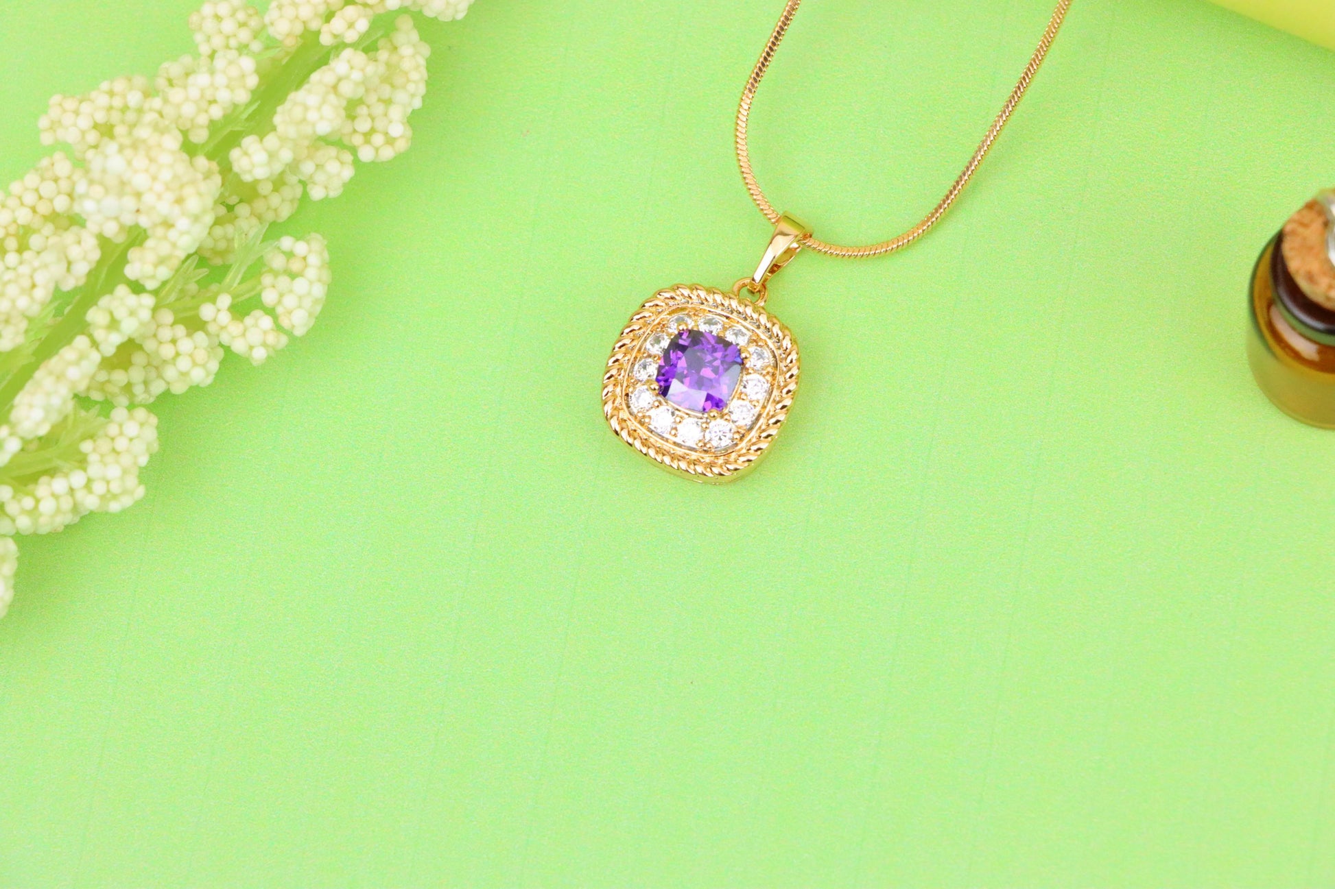 Elegant Purple Square Pendant with Sparkling Border in Gold Finish, XPPT1658