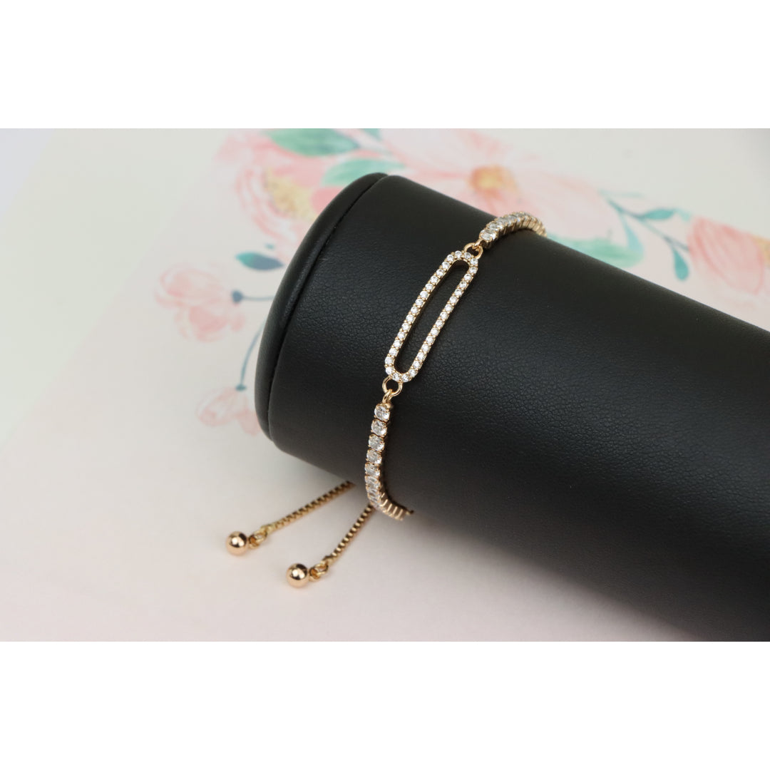 A beautifully crafted adjustable bracelet featuring sparkling stones and a sleek design, perfect for any outfit.
