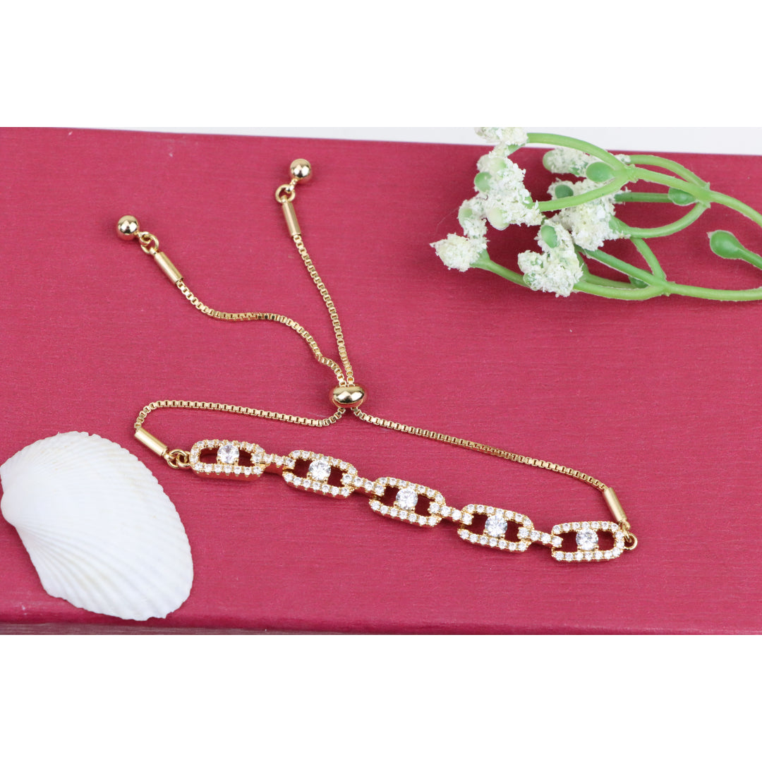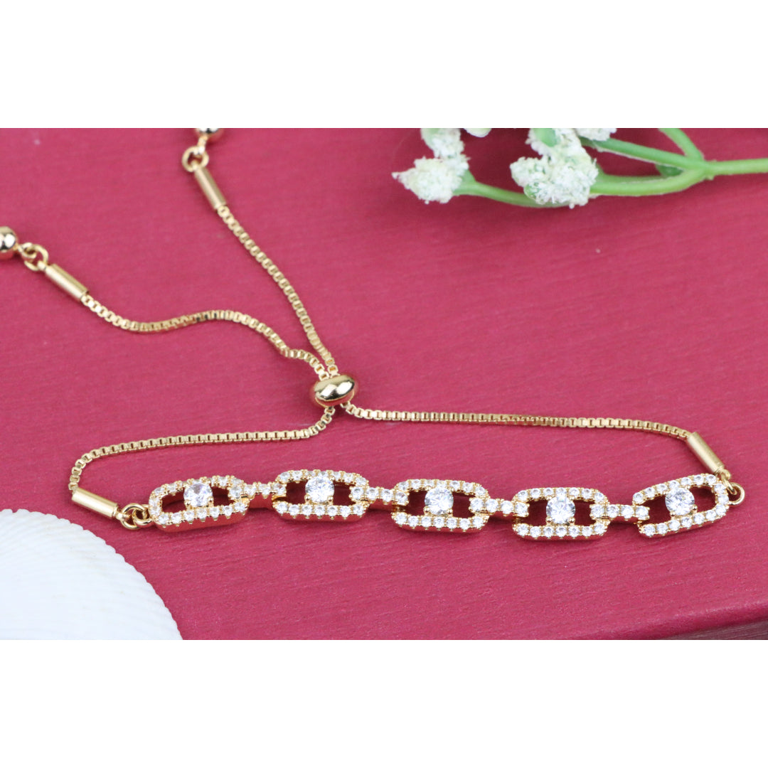Elegant Rose Gold A-Bracelet with Sparkling CZ Stones, XPAB0720