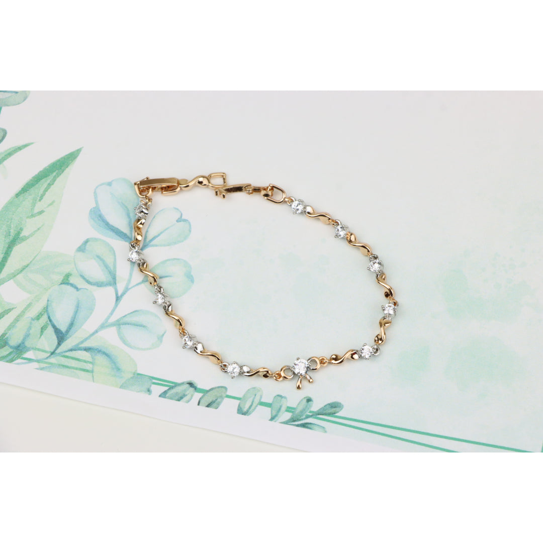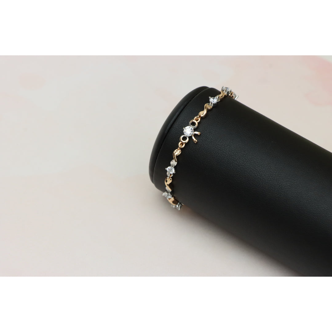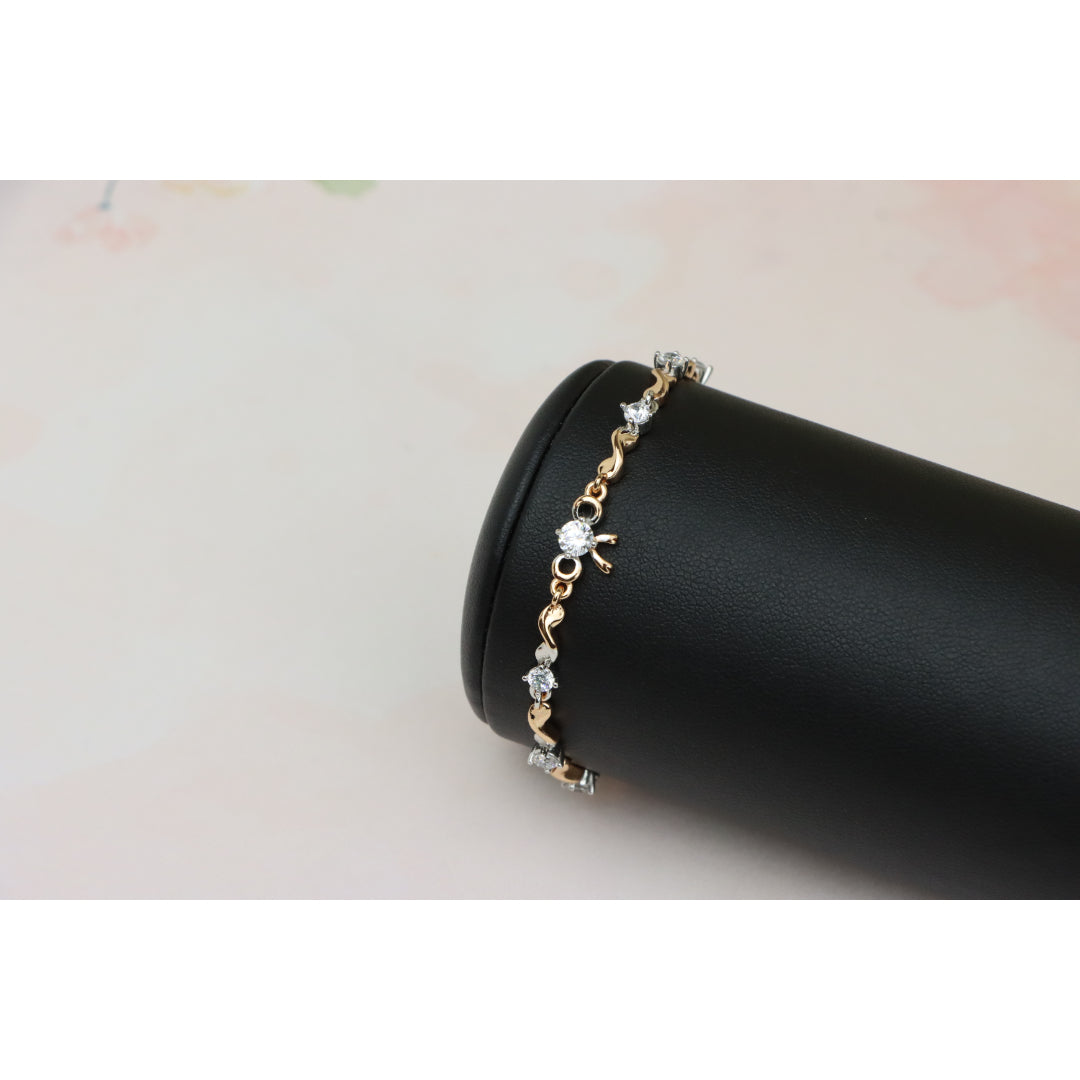 This beautiful bracelet features a delicate blend of rose gold and silver tones, highlighted with sparkling crystal accents in a charming bow and twist design. Perfect for adding a touch of elegance to any outfit.