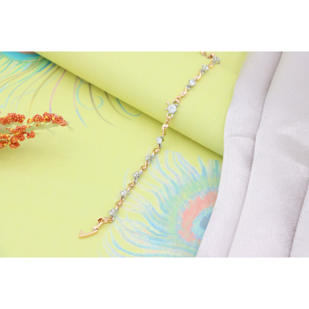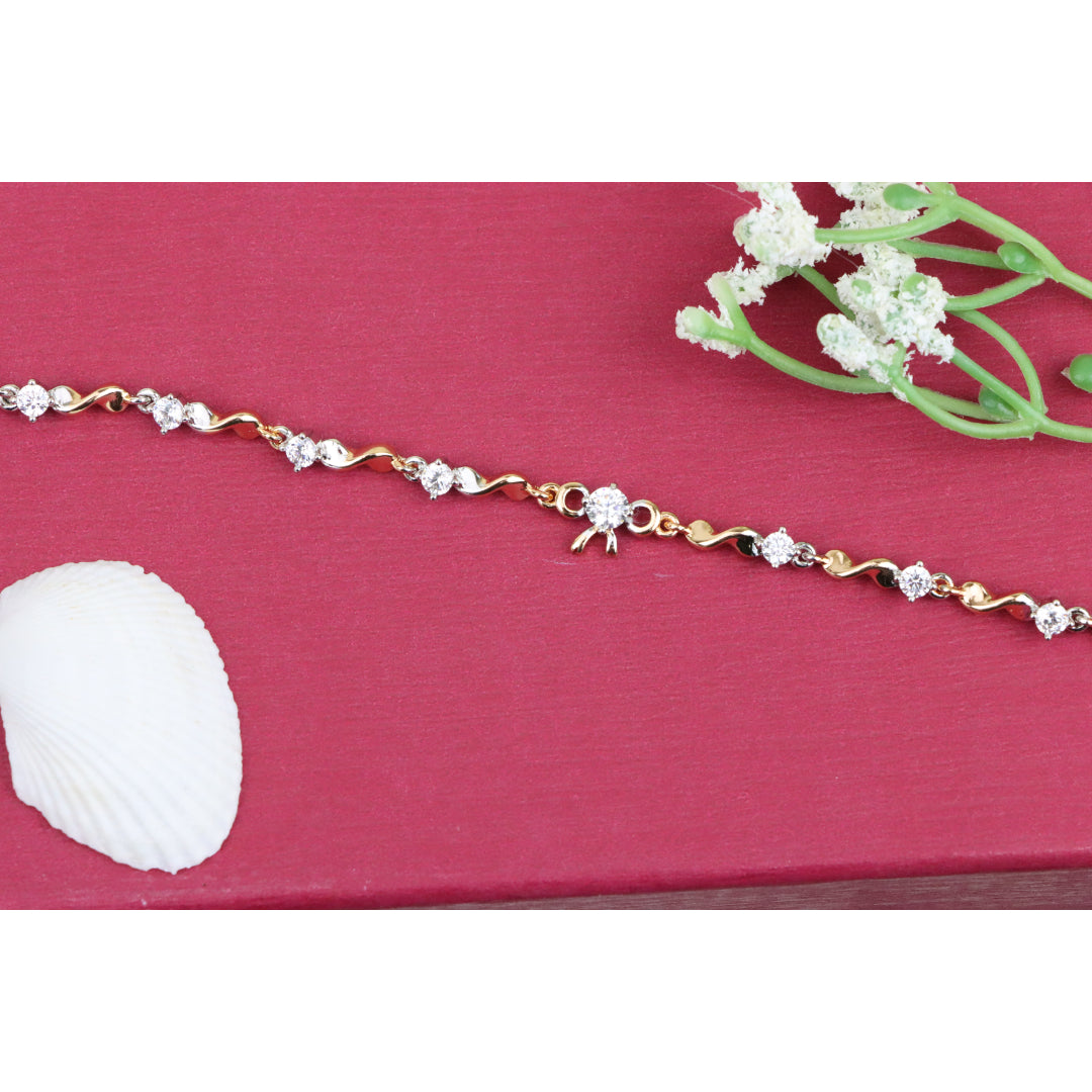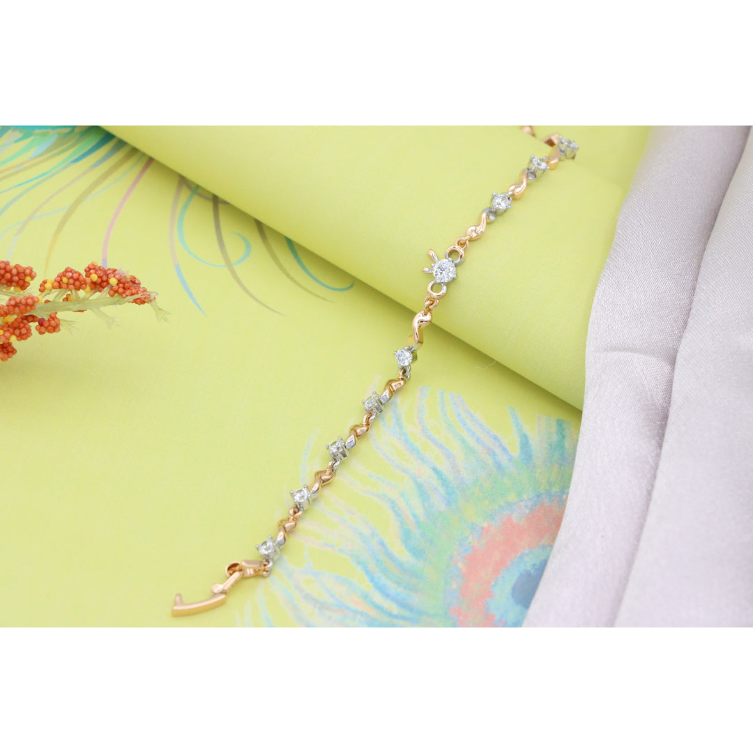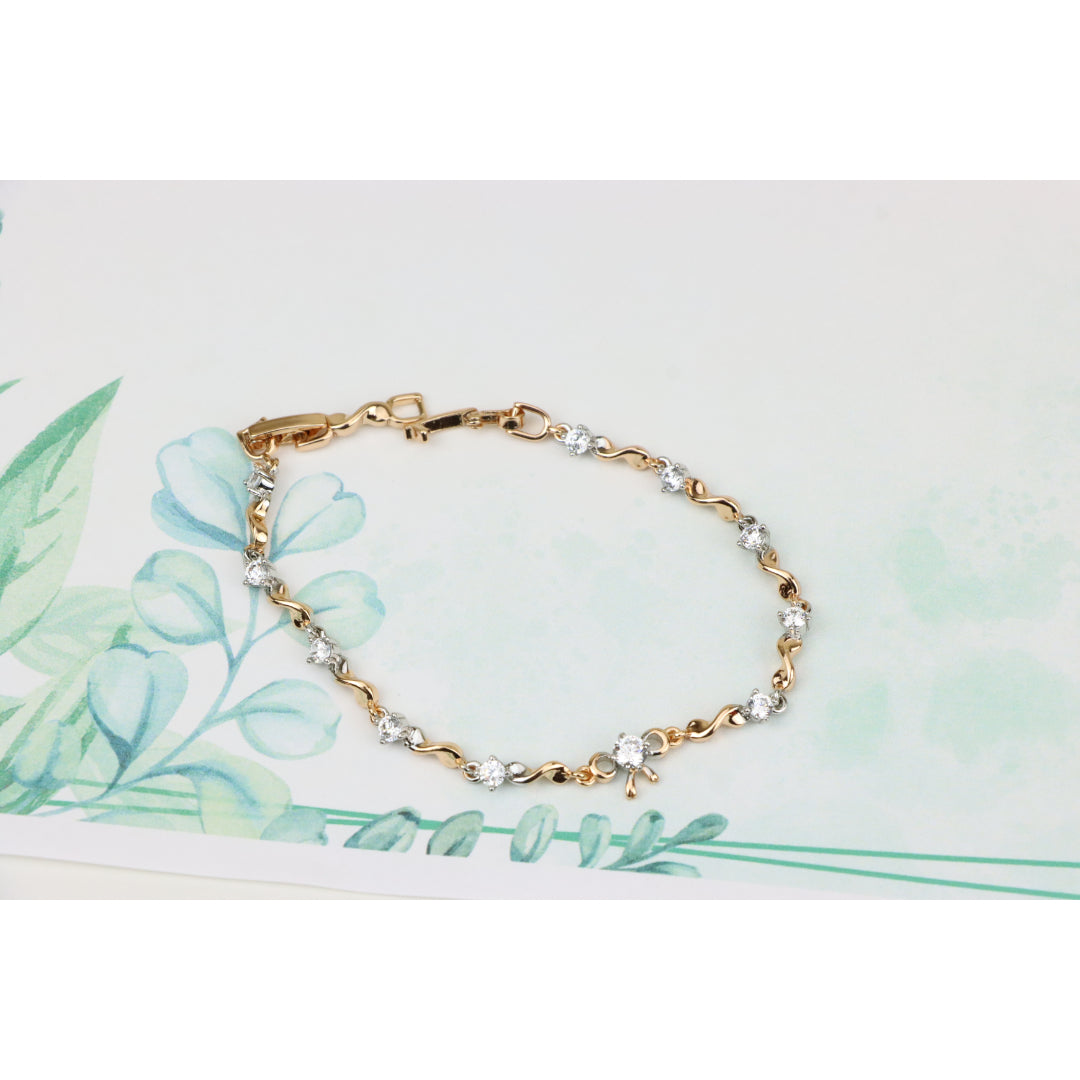 This beautiful bracelet features a delicate blend of rose gold and silver tones, highlighted with sparkling crystal accents in a charming bow and twist design. Perfect for adding a touch of elegance to any outfit.
