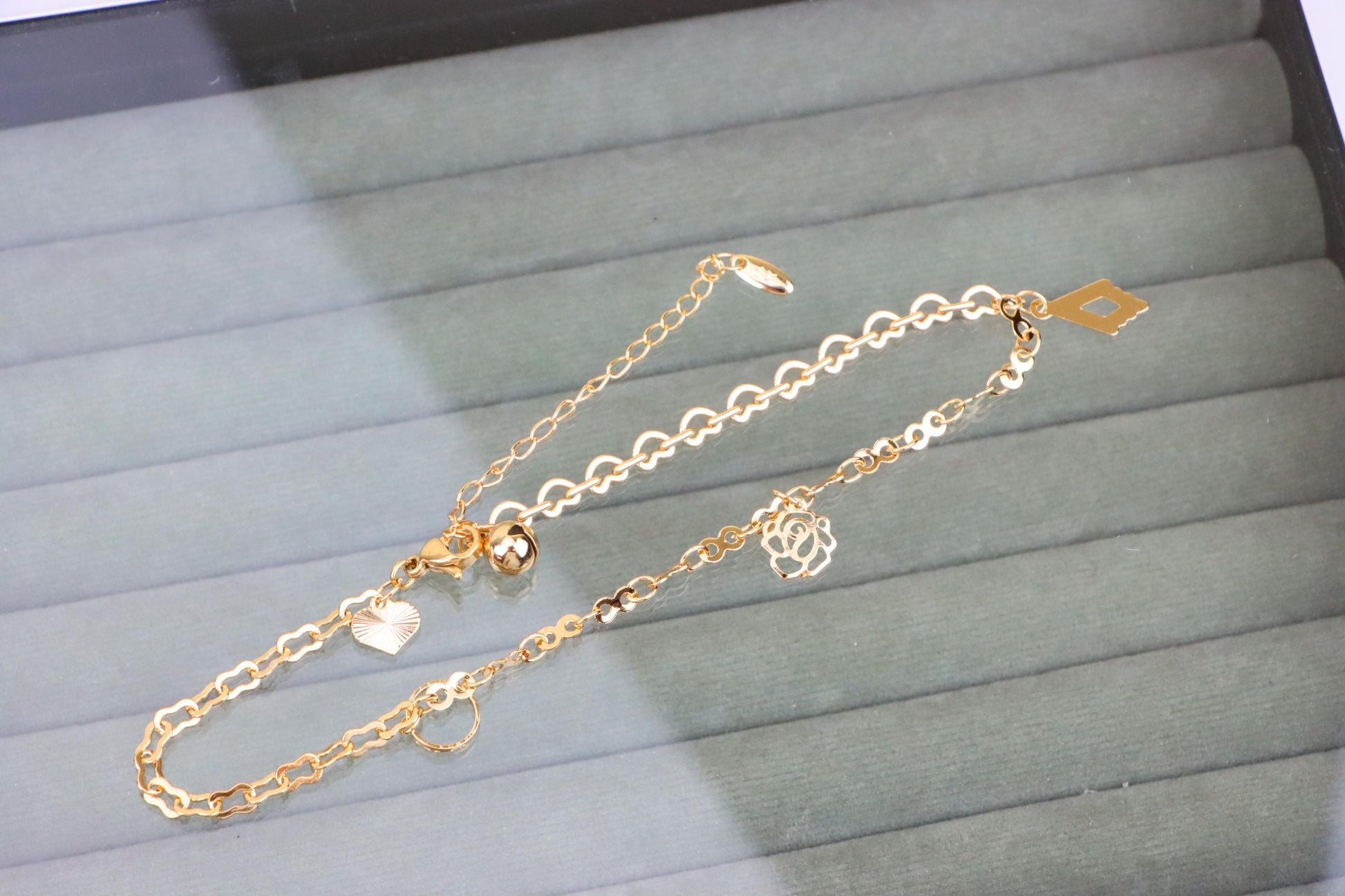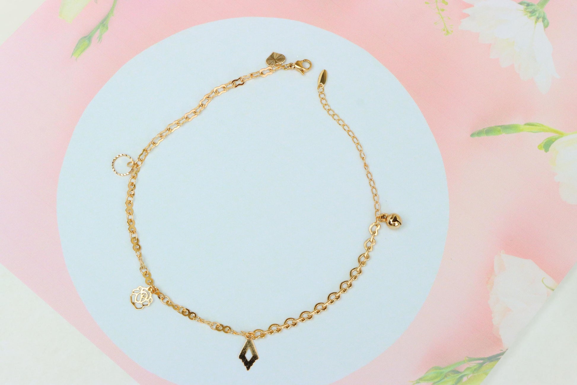 Elegant Rose Gold Anklet with Charms, XPAL1068