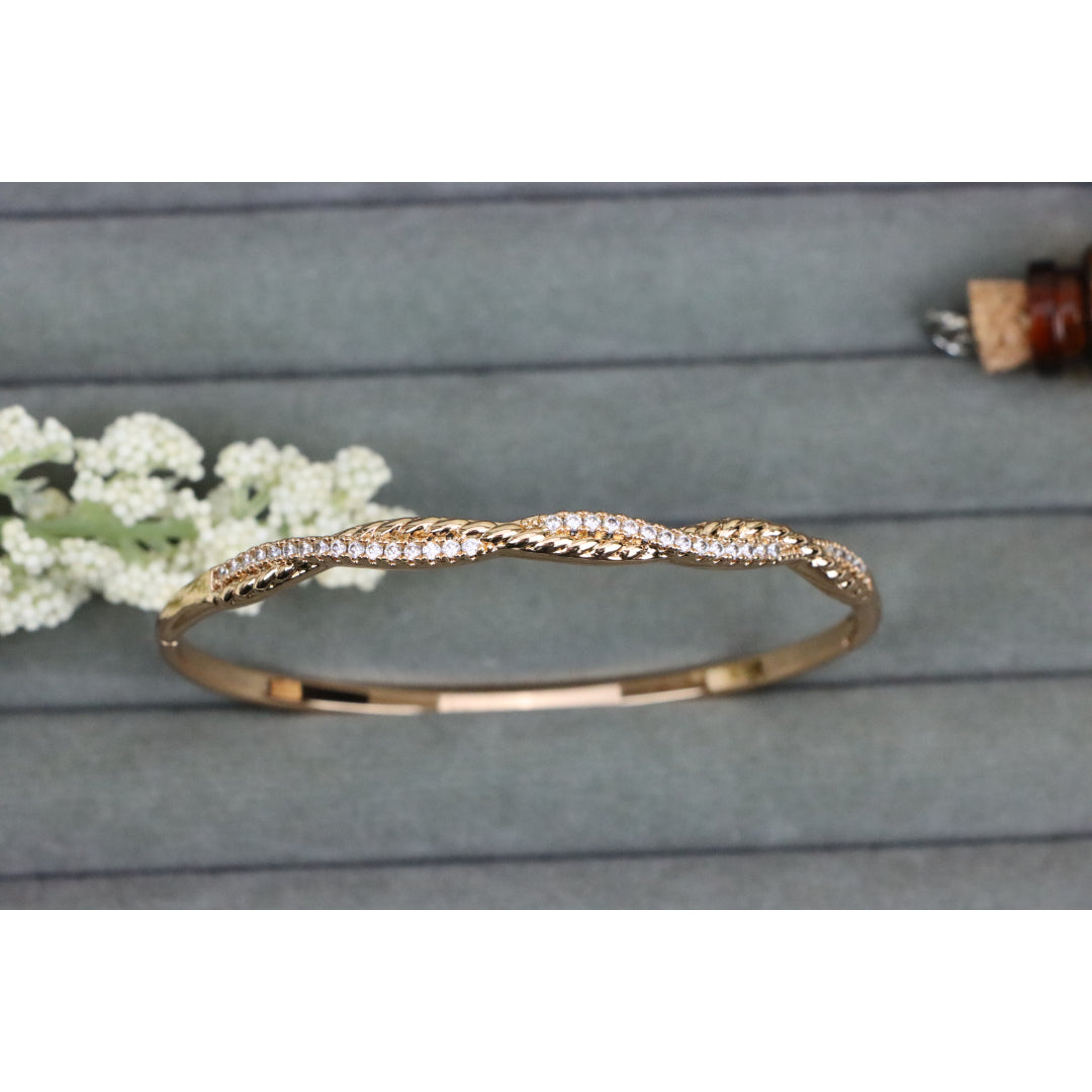 Elegant Rose Gold Bangle with Sparkling Twisted Chain Design, XPBL0509 (2051-9)